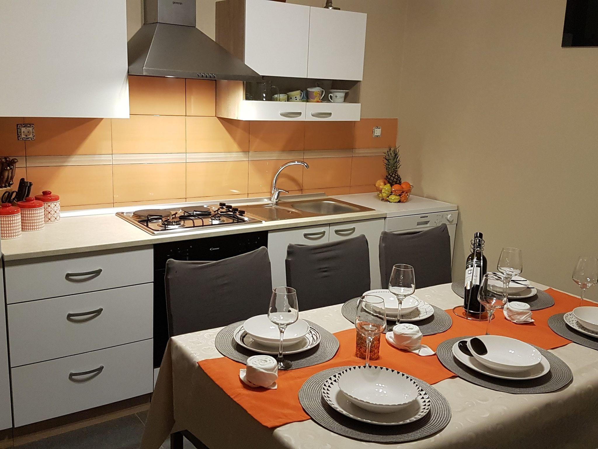 Haus bietet Platz für 6 Gäste. Die Betten sind in Schlafzimmern, die es 3 gibt, innerhalb einer Gesamtfläche von 63m2, angeordnet. Die Gäste haben eine eigene Terrasse zur Verfügung, auf der sie in warmen Sommernächten genießen können. Das Haus bietet Meerblick. Für vollen Genuss und Entspannung gibt es einen privaten Grill für Gäste dieser Unterkunft. In der Unterkunftseinheit besteht die Möglichkeit des Mitbringens von Haustieren, und die Dienstleistung ist im Preis der Unterkunft enthalten. IM PREIS INBEGRIFFEN: Kurtaxe, Endreinigung, Klimatisierung, Parkplatz, Internet, Wäschewaschen, Bootsanlegeplatz, Haustiere, Bügeleisen, Bügelbrett, Föhn, Liegestühle. VERBINDLICHE ZUSÄTZLICHE KOSTEN: Aufzahlung für Kurzaufenthalte (prozentualer Zuschlag pro Nächtigungsanzahl: 30% - 1, 20% - 2, 10% - 3). Die Verfügbarkeit zusätzlicher Dienstleistungen in Ihrem reservierten Termin und die Preise derselben (falls nicht aufgeführt) müssen im Voraus überprüft werden. Zusätzliche Dienstleistungen die in der Zahlungsaufforderung nicht aufgeführt sind werden direkt beim Vermieter bezahlt, angenommen der Gast nutzt auch diese.
