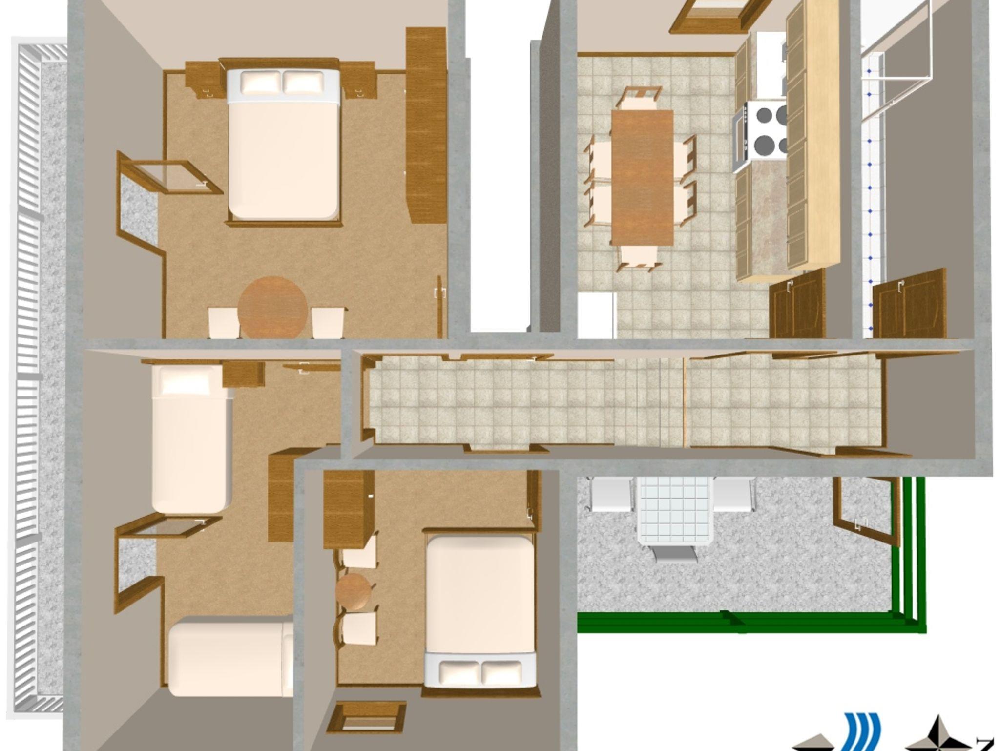 Ferienwohnung bietet Platz für 6 Gäste. Die Betten sind in Schlafzimmern, die es 3 gibt, innerhalb einer Gesamtfläche von 49m2, angeordnet. Die Gäste haben eine eigene Terrasse zur Verfügung, auf der sie in warmen Sommernächten genießen können. IM PREIS INBEGRIFFEN: Kurtaxe, Endreinigung, Internet, Bügeleisen, Bügelbrett, Föhn. VERBINDLICHE ZUSÄTZLICHE KOSTEN: Aufzahlung für Kurzaufenthalte (prozentualer Zuschlag pro Nächtigungsanzahl: 30% - 1, 20% - 2, 10% - 3). Die Verfügbarkeit zusätzlicher Dienstleistungen in Ihrem reservierten Termin und die Preise derselben (falls nicht aufgeführt) müssen im Voraus überprüft werden. Zusätzliche Dienstleistungen die in der Zahlungsaufforderung nicht aufgeführt sind werden direkt beim Vermieter bezahlt, angenommen der Gast nutzt auch diese. Ermäßigung auf den Grundpreis: Gratistag 14=13 (bei einem Aufenthalt von 14 Tagen oder mehr erhalten Sie einen Gratistag für den Aufenthalt bis 31.12.26).