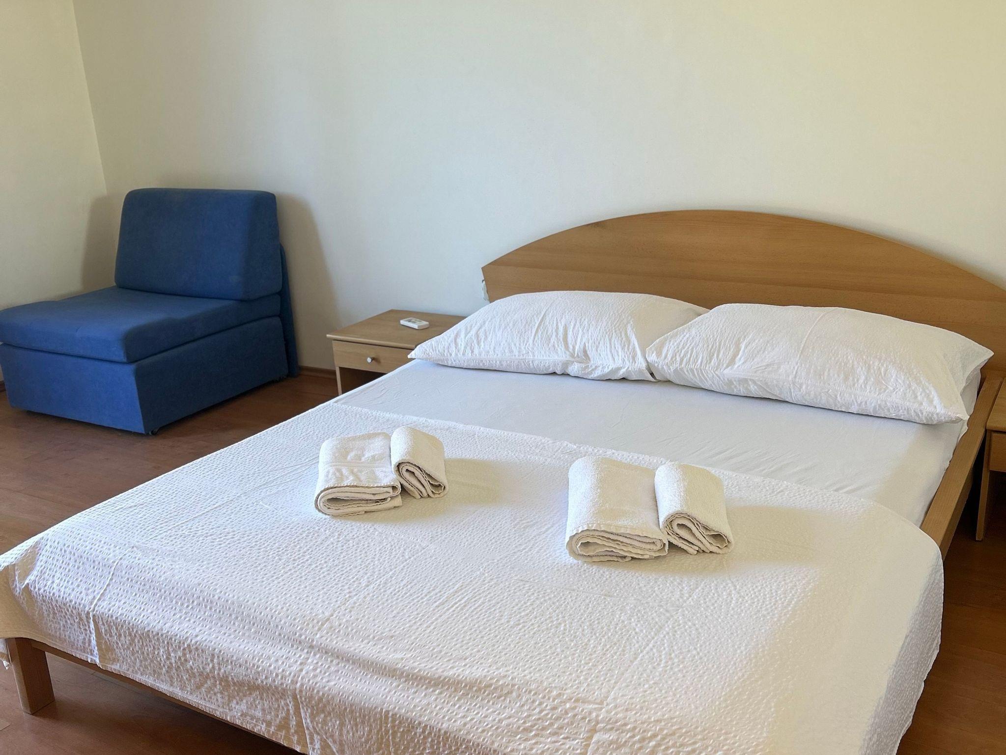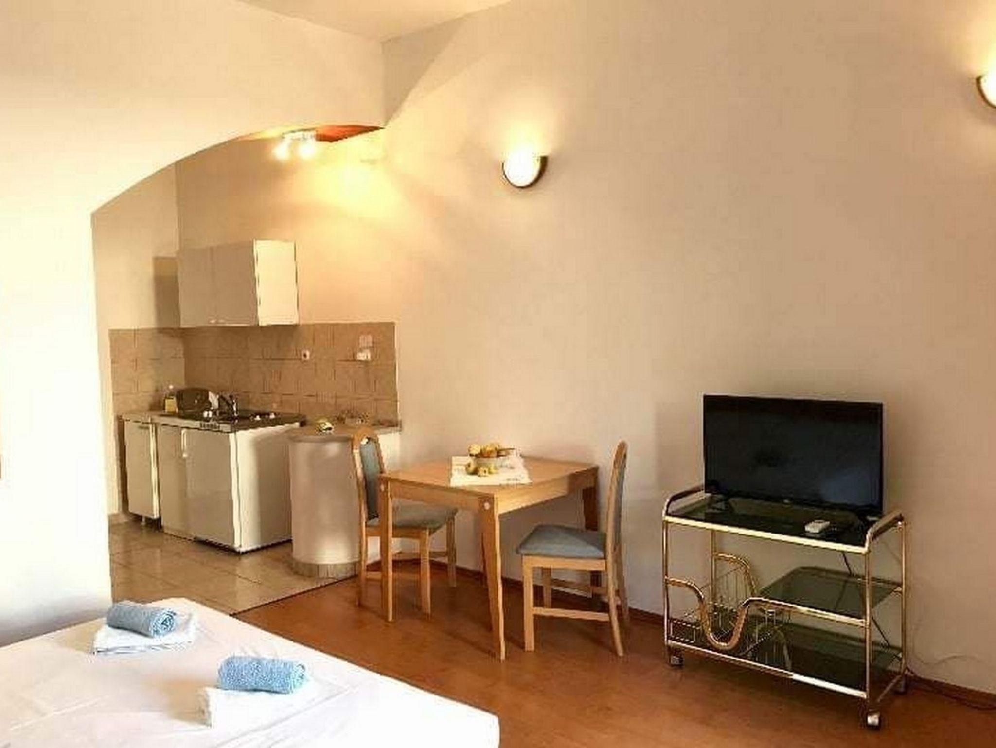 Studio bietet Platz für 3 Gäste. Die Betten sind in Schlafzimmern, die es 1 gibt, innerhalb einer Gesamtfläche von 26m2, angeordnet. Es ist erlaubt, Speisen auf dem Gemeinschafts-Grill vorzubereiten. Die reservierte Unterkunftseinheit verfügt über einen gemeinsame Terrasse. IM PREIS INBEGRIFFEN: Kurtaxe, Endreinigung, Klimatisierung, Parkplatz, Internet, Bügeleisen, Bügelbrett, Föhn, tragbarer Grill. VERBINDLICHE ZUSÄTZLICHE KOSTEN: Aufzahlung für Kurzaufenthalte (prozentualer Zuschlag pro Nächtigungsanzahl: 30% - 1, 20% - 2, 10% - 3). Die Verfügbarkeit zusätzlicher Dienstleistungen in Ihrem reservierten Termin und die Preise derselben (falls nicht aufgeführt) müssen im Voraus überprüft werden. Zusätzliche Dienstleistungen die in der Zahlungsaufforderung nicht aufgeführt sind werden direkt beim Vermieter bezahlt, angenommen der Gast nutzt auch diese.