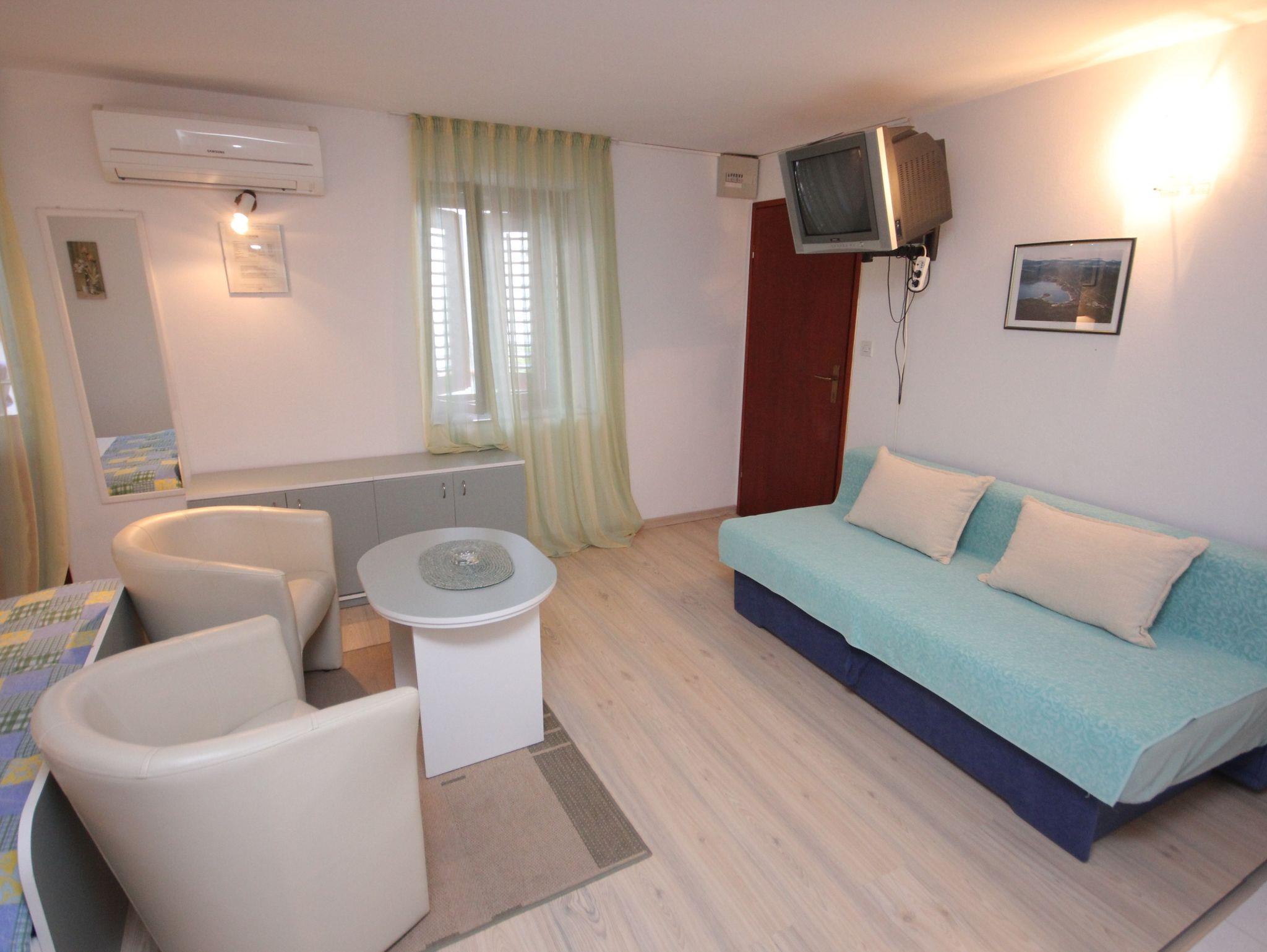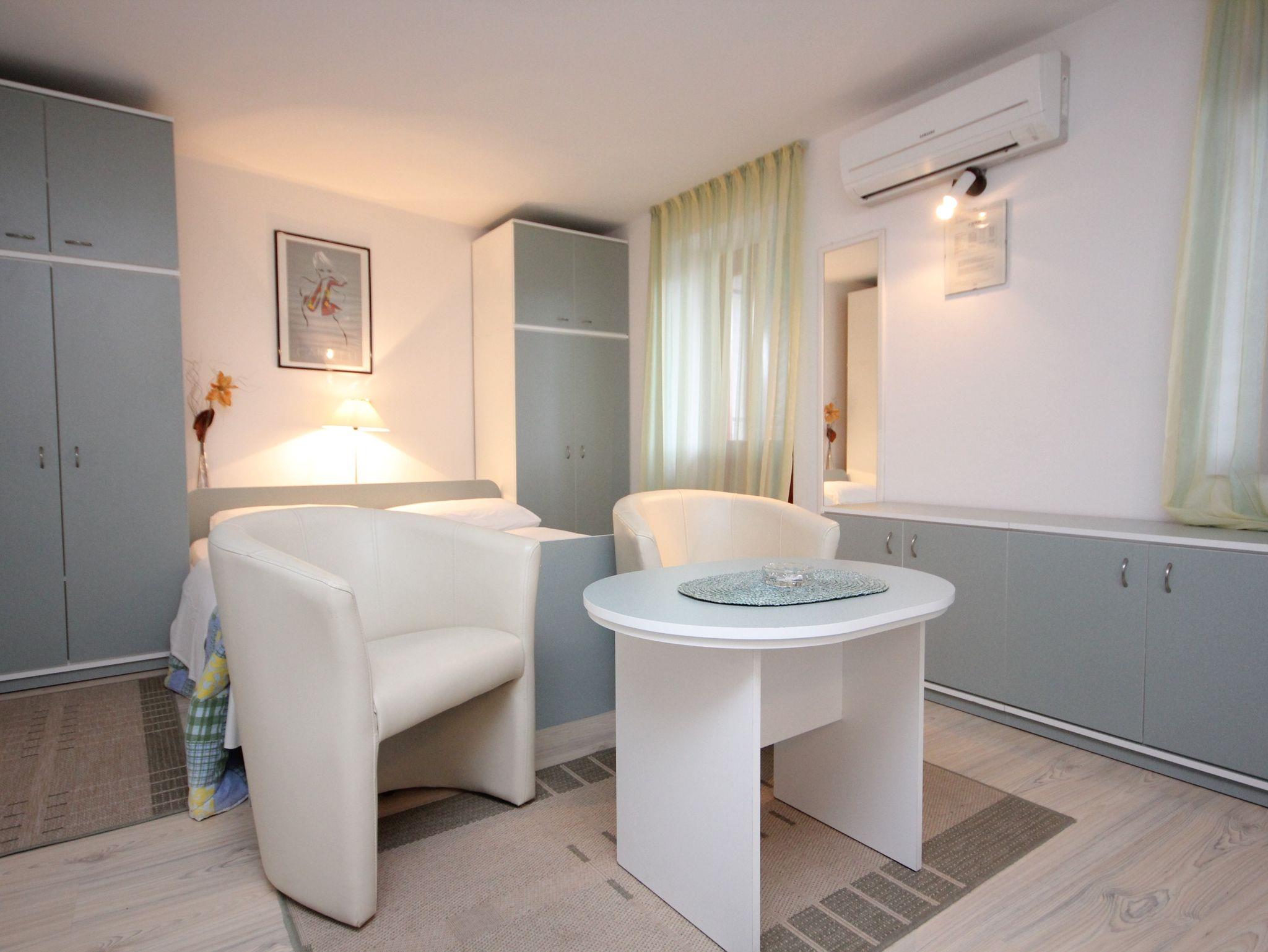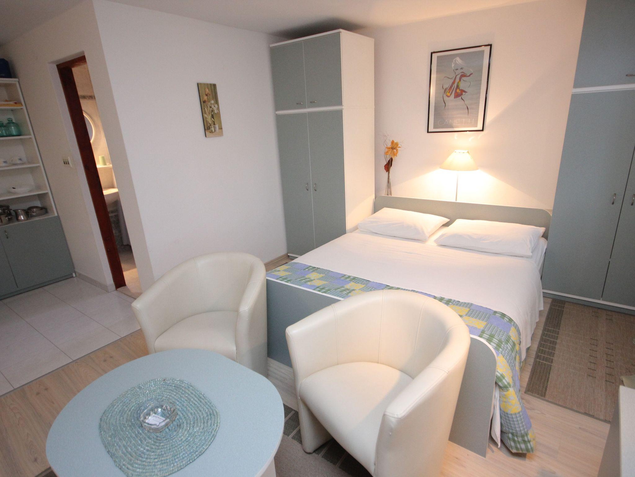 Studio bietet Platz für 2 Gäste. Die Betten sind in Schlafzimmern, die es 1 gibt, innerhalb einer Gesamtfläche von 32m2, angeordnet. Die Gäste haben eine eigene Terrasse zur Verfügung, auf der sie in warmen Sommernächten genießen können. Das Studio-Apartment bietet Meerblick. Es ist erlaubt, Speisen auf dem Gemeinschafts-Grill vorzubereiten. In der Unterkunftseinheit besteht die Möglichkeit des Mitbringens von Haustieren gegen Aufpreis. IM PREIS INBEGRIFFEN: Kurtaxe, Endreinigung, Klimatisierung, Parkplatz, Internet, Kinderbett, Bügeleisen, Bügelbrett, Föhn, 1 Bett für Kinder (im Preis enthalten). VERBINDLICHE ZUSÄTZLICHE KOSTEN: Aufzahlung für Kurzaufenthalte (prozentualer Zuschlag pro Nächtigungsanzahl: 30% - 1, 20% - 2, 10% - 3). UNVERBINDLICHE ZUSÄTZLICHE KOSTEN: Haustiere (5,00 € pro Nacht). Die Verfügbarkeit zusätzlicher Dienstleistungen in Ihrem reservierten Termin und die Preise derselben (falls nicht aufgeführt) müssen im Voraus überprüft werden. Zusätzliche Dienstleistungen die in der Zahlungsaufforderung nicht aufgeführt sind werden direkt beim Vermieter bezahlt, angenommen der Gast nutzt auch diese. Ermäßigung auf den Grundpreis: Gratistag 14=13 (bei einem Aufenthalt von 14 Tagen oder mehr erhalten Sie einen Gratistag für den Aufenthalt bis 31.12.26).