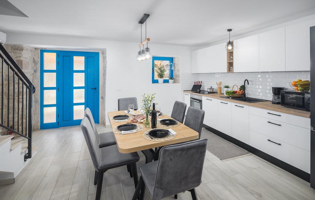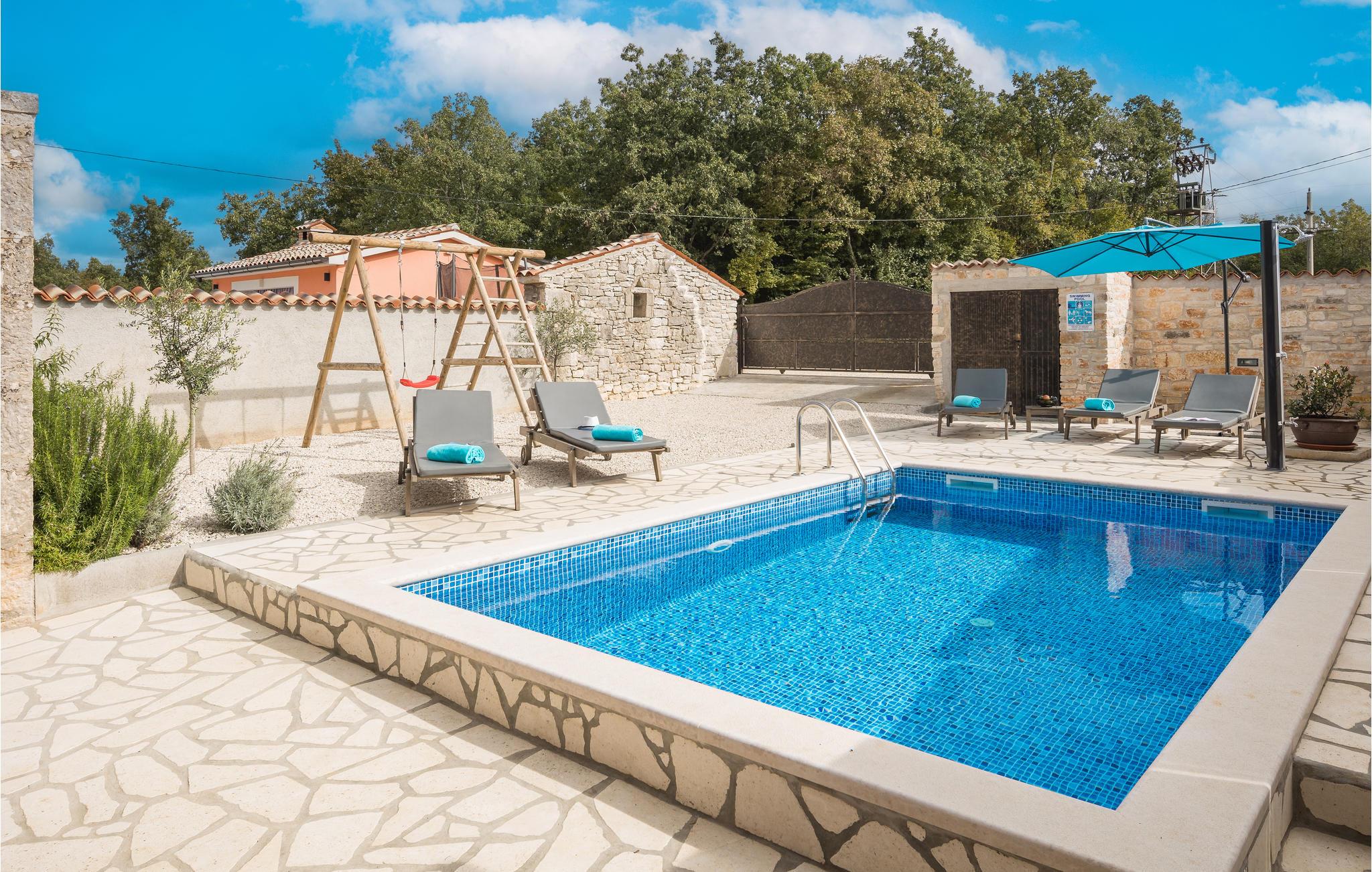 Dette stenhus med egen pool har en moderne indretning og giver jer et ideelt sted til jeres ferie. Læn jer tilbage i de rummelige soveværelser med komfortable senge. Om morgenen kan I nyde kaffen og Kroatiens klare blå himmel på terrassen. Tag en frisk dukkert i poolen ind imellem og sol jer derefter på en af ??de mange liggestole.