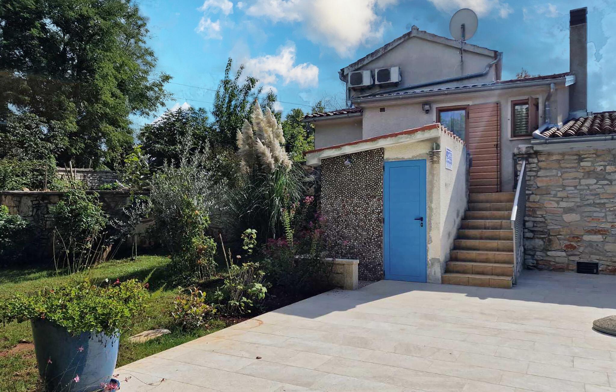 Tilbring jeres næste ferie i dette typisk istriske feriehus, der harmonisk kombinerer tradition og komfort. Omgivet af frodigt grønt, vil I nyde fred og privatliv – ideelt for familier, der søger afslapning og autenticitet. Lad den varme atmosfære i det hyggelige interiør byde jer velkommen. Læn jer tilbage i den lyse stue med komfortable sofaer og naturlige materialer eller tilbered jeres yndlingsmåltider i det rustikke køkken. Kombinationen af ??sten, træ og varme farver skaber en indbydende atmosfære, der minder om det autentiske Istrien.