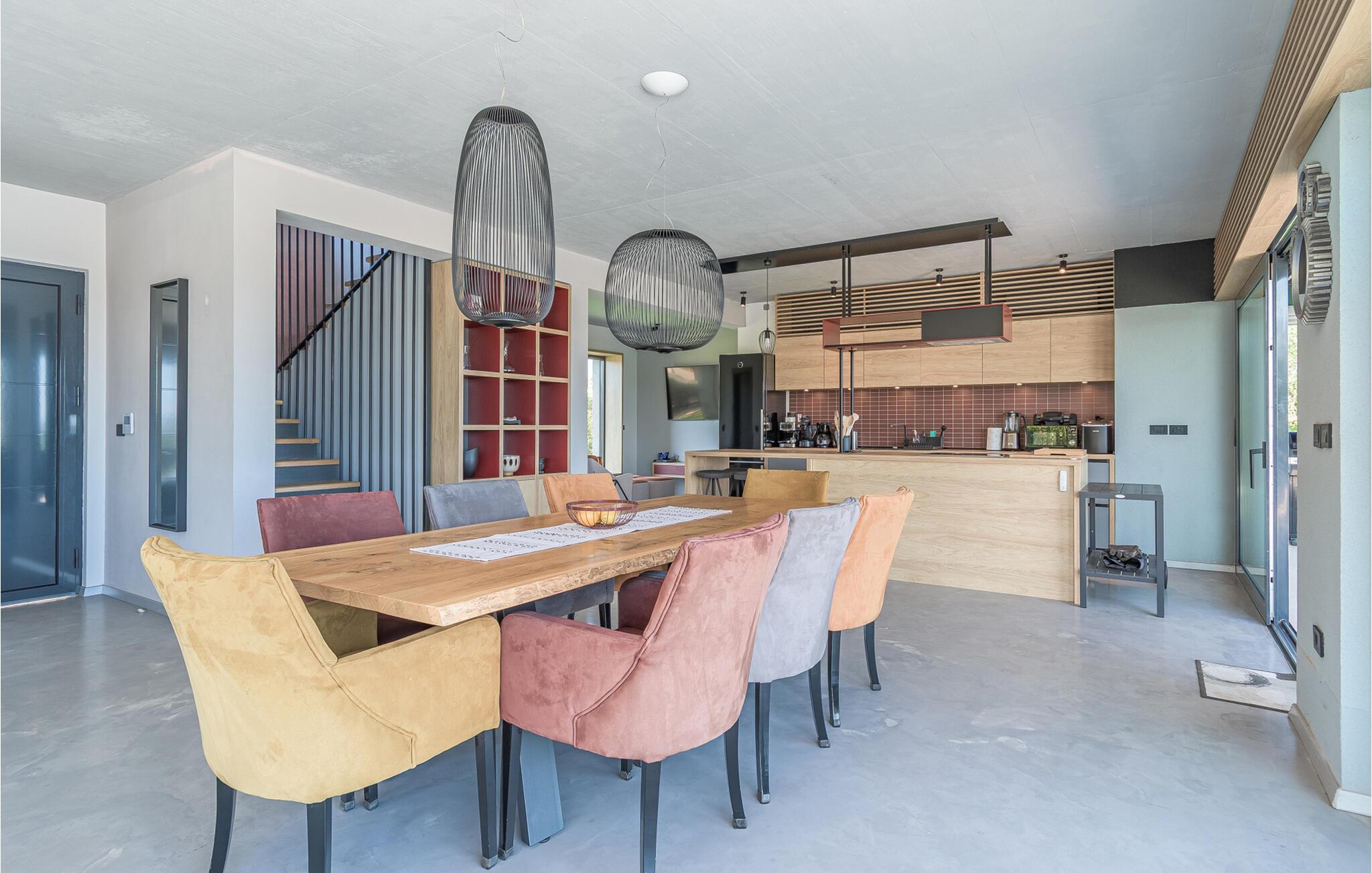 Slap af fra hverdagen og genoplad batterierne i dette komfortabelt og moderne indrettede hus. Masser af træ, mættede farver og små lyskilder skaber en rolig atmosfære. Tilbered jeres måltider, og nyd dem ved det store spisebord med en god flaske vin. Slap af med en bog eller tilbring hyggelige aftener med at spille spil.