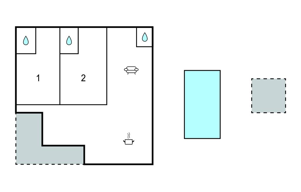 Opholdsstue 15m2 - 2 Sovepladser. (Dobbeltseng(e)).