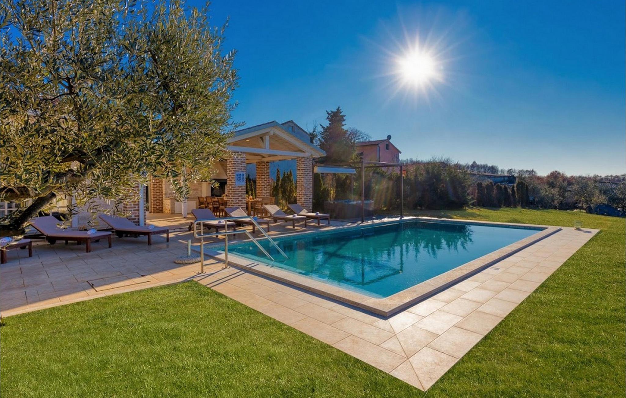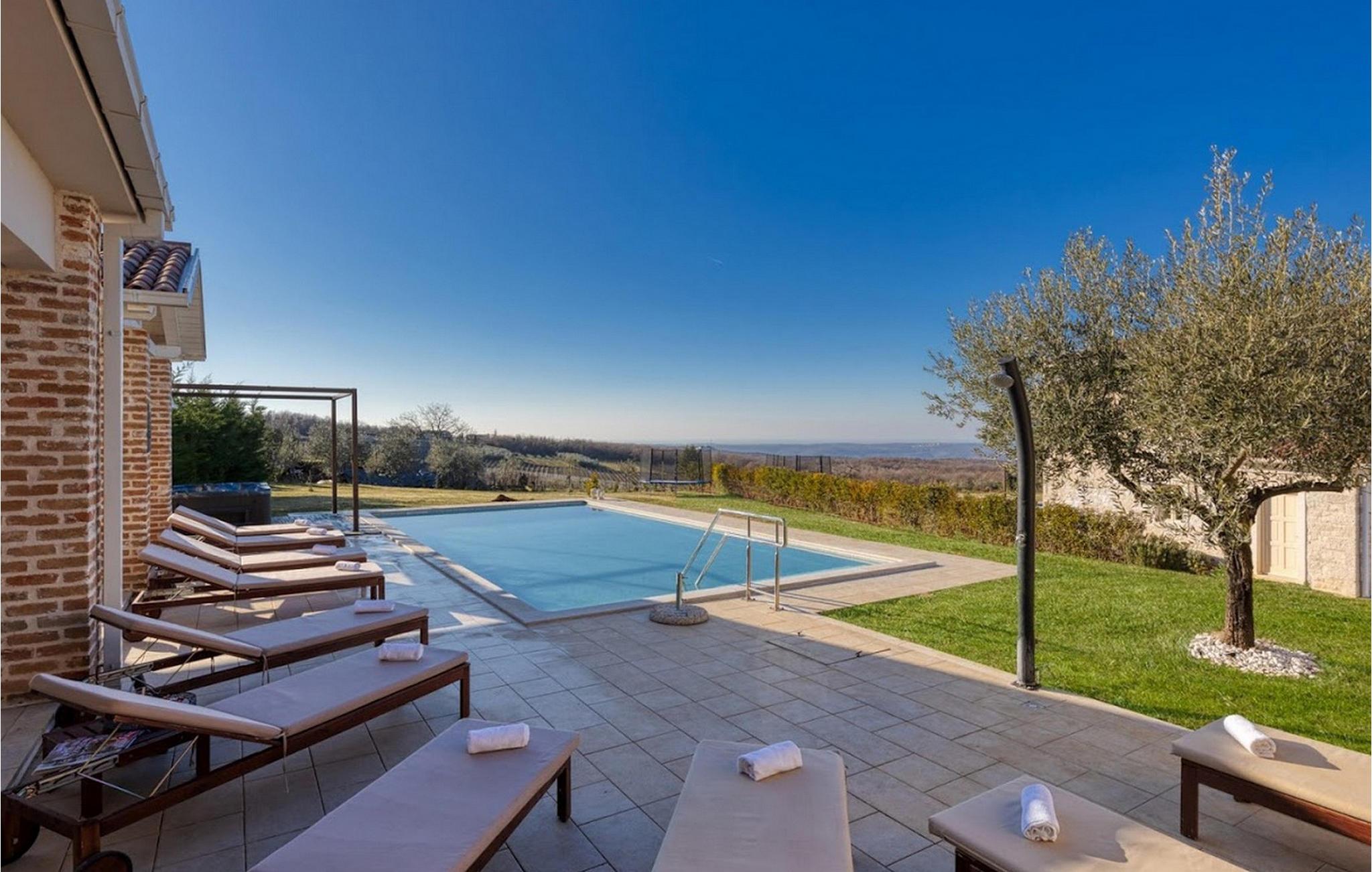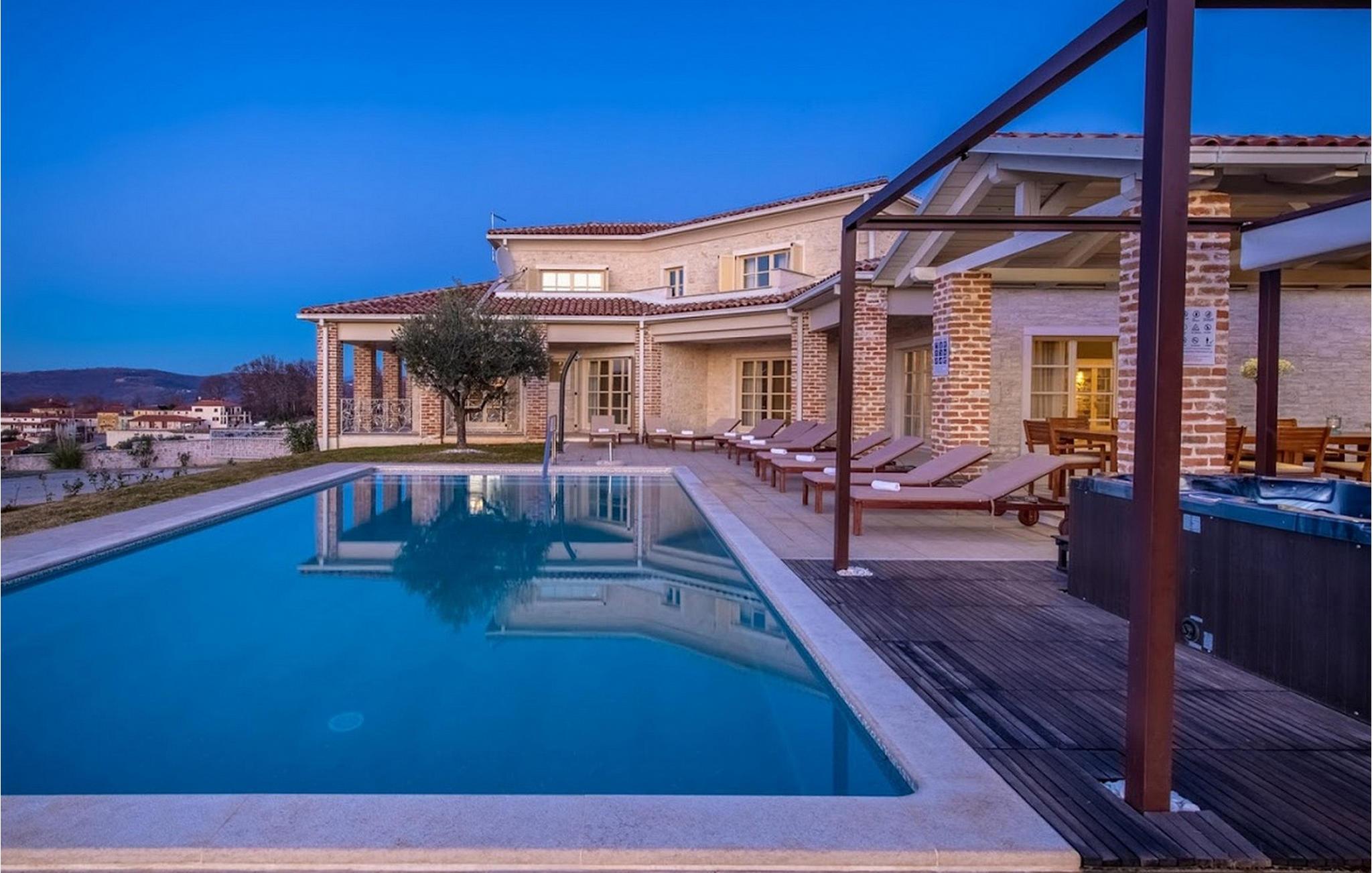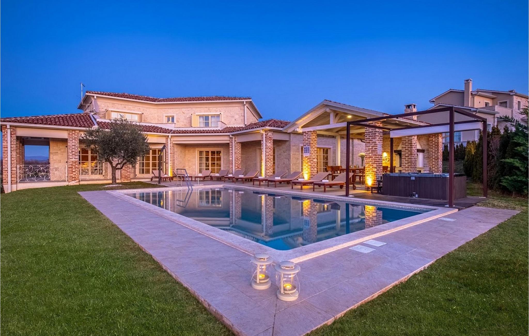 Smukke Villa Star ligger i en lille, malerisk landsby Bajkini i Istrien, som på grund af sin geografiske beliggenhed tiltrækker både naturelskere og dem, der sætter pris på kvalitetsvin og lækker mad. Med sit elegante ydre og indre er Villa Star et ideelt valg for dig, der ønsker at nyde en ferie i fuldstændig privatliv og omgivet af smuk natur. Villa Star har 4 rummelige soveværelser med dobbeltsenge, 4 smukt indrettede badeværelser og separat toilet. Et charmerende fuldt udstyret køkken er forbundet med en smuk spisestue, hvor alle gæster kan samles. Den rummelige stue åbner ud til den smukke stenterrasse, som byder på en fantastisk udsigt over de nærliggende vinmarker. I Villa Stars smukt anlagte have er der en stor swimmingpool (66 m²), hvor du kan tage en forfriskende dukkert hver dag, mens en vidunderlig udendørs jacuzzi er tilgængelig for din afslapning. Gratis WiFi-signal er tilgængeligt i hvert hjørne af det indendørs og udendørs område af denne fuldt airconditionerede villa. Med et boligareal på 480 m² ligger Villa Star på en 1400 m² stor grund og tilbyder sine gæster absolut alt: luksus, smuk natur, sjov og i sidste ende - en velfortjent ferie. Inden for gåafstand fra villaen ligger den berømte Arman Winery og i umiddelbar nærhed er nogle af de bedste vingårde, som enhver ægte vinelsker bør besøge. Der findes kvalitetsrestauranter, markeder og barer i Vižinada, kun 3 km fra villaen. De større byer Porec og Novigrad er 10 minutters kørsel væk, mens kun 5 minutters kørsel fra villaen ligger en smuk middelalderby kaldet Motovun, kendt for filmfestivalen, der afholdes hver juli. Tilbring din ferie i Villa Star, lad dig blive forkælet og oplev det rige gastronomiske og turistmæssige tilbud i denne smukke region Istrien. Bemærk venligst, at denne ejendom kun accepterer ungdomsgrupper eller polterabender mod betaling af et refunderbart depositum. En ungdomsgruppe i denne ejendom består af personer under 30 år. Er I en ungdomsgruppe eller polterabend, vil I blive bedt om at betale depositum ved ankomst. Ethvert beløb, der kræves for at reparere eventuelle skader på boligen forårsaget af dig under dit ophold, vil blive trukket fra depositumet og derefter returneret til dig.