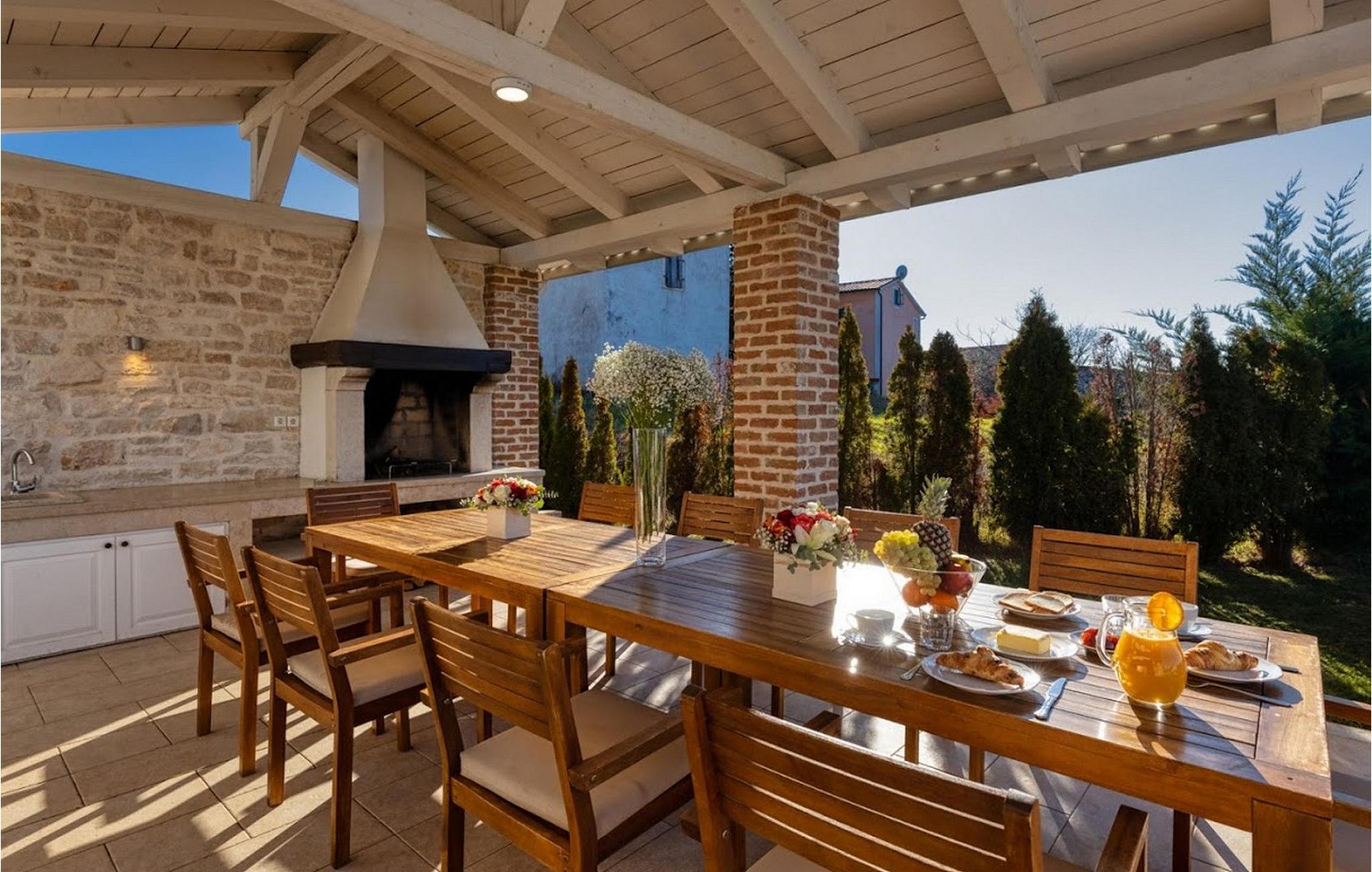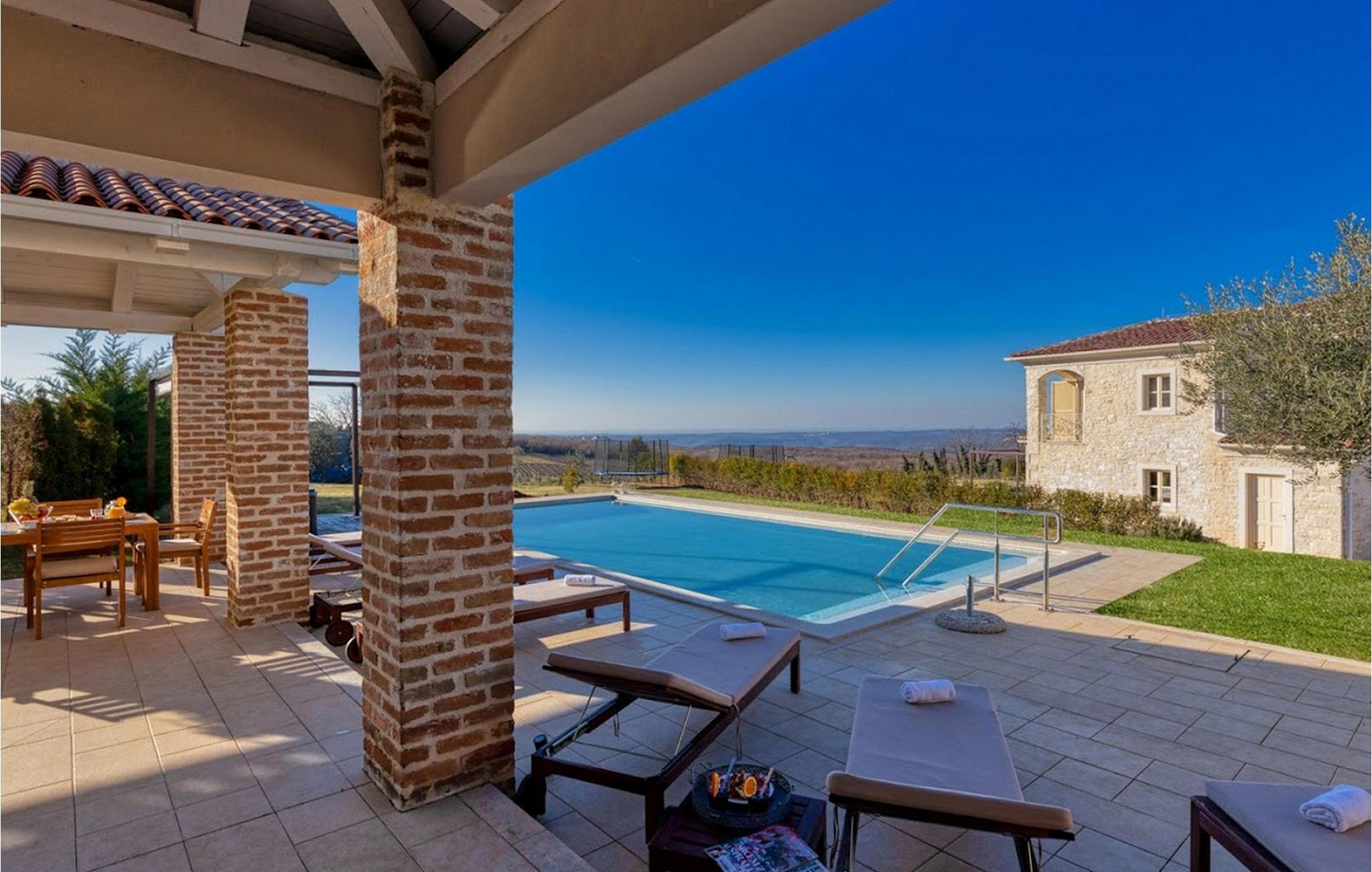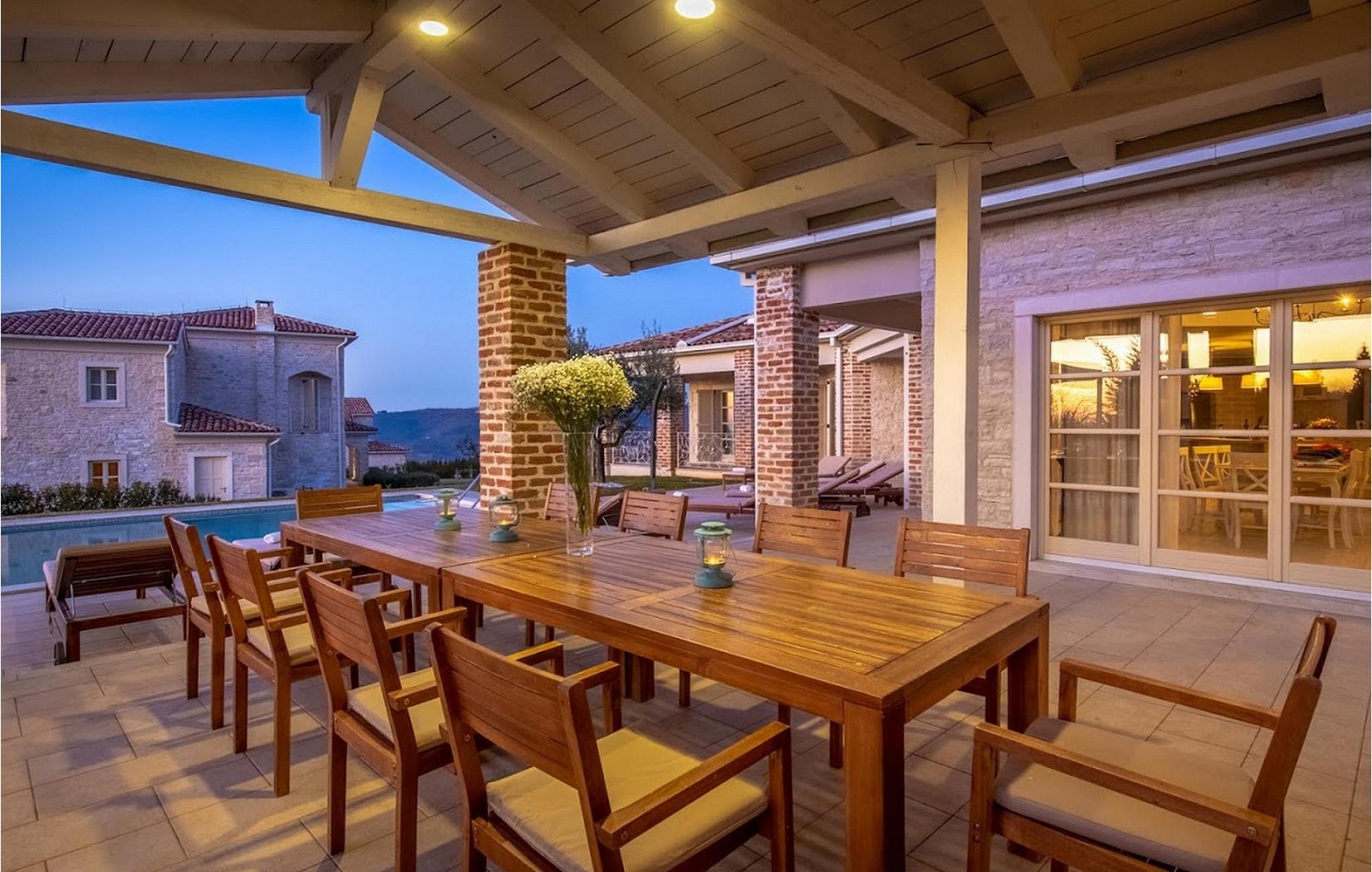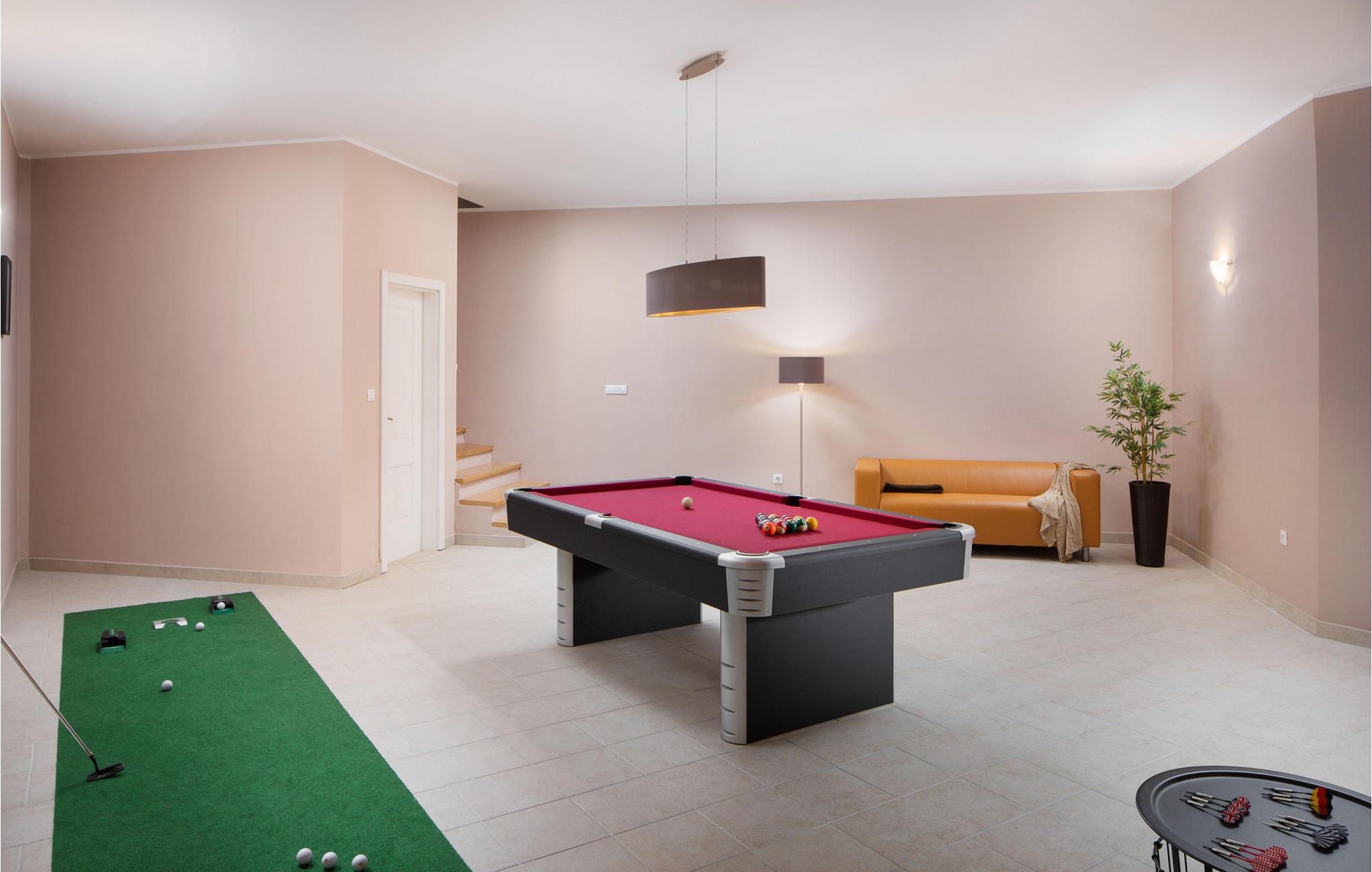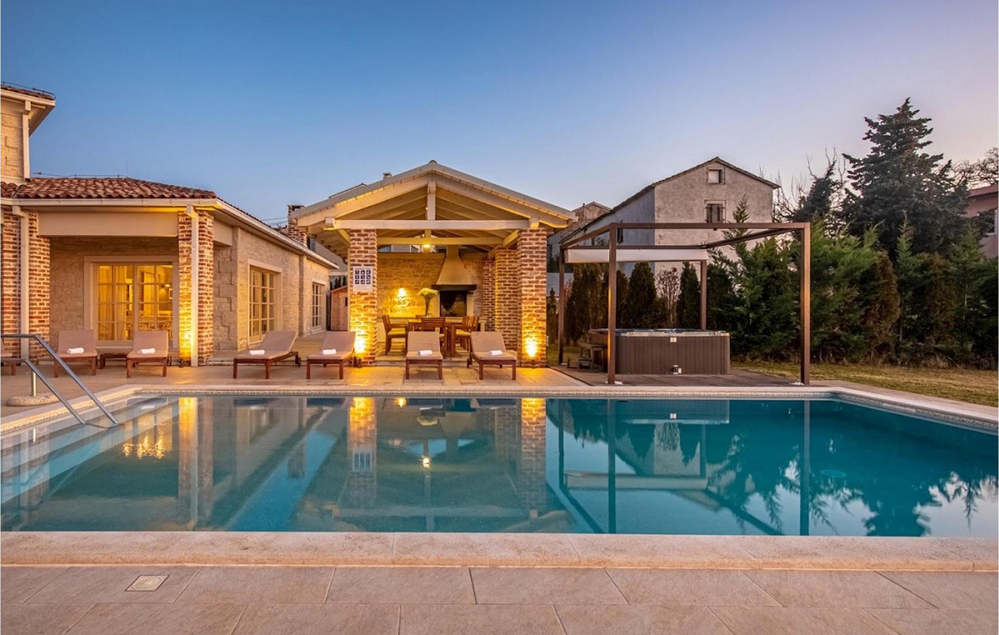Smukke Villa Star ligger i en lille, malerisk landsby Bajkini i Istrien, som på grund af sin geografiske beliggenhed tiltrækker både naturelskere og dem, der sætter pris på kvalitetsvin og lækker mad. Med sit elegante ydre og indre er Villa Star et ideelt valg for dig, der ønsker at nyde en ferie i fuldstændig privatliv og omgivet af smuk natur. Villa Star har 4 rummelige soveværelser med dobbeltsenge, 4 smukt indrettede badeværelser og separat toilet. Et charmerende fuldt udstyret køkken er forbundet med en smuk spisestue, hvor alle gæster kan samles. Den rummelige stue åbner ud til den smukke stenterrasse, som byder på en fantastisk udsigt over de nærliggende vinmarker. I Villa Stars smukt anlagte have er der en stor swimmingpool (66 m²), hvor du kan tage en forfriskende dukkert hver dag, mens en vidunderlig udendørs jacuzzi er tilgængelig for din afslapning. Gratis WiFi-signal er tilgængeligt i hvert hjørne af det indendørs og udendørs område af denne fuldt airconditionerede villa. Med et boligareal på 480 m² ligger Villa Star på en 1400 m² stor grund og tilbyder sine gæster absolut alt: luksus, smuk natur, sjov og i sidste ende - en velfortjent ferie. Inden for gåafstand fra villaen ligger den berømte Arman Winery og i umiddelbar nærhed er nogle af de bedste vingårde, som enhver ægte vinelsker bør besøge. Der findes kvalitetsrestauranter, markeder og barer i Vižinada, kun 3 km fra villaen. De større byer Porec og Novigrad er 10 minutters kørsel væk, mens kun 5 minutters kørsel fra villaen ligger en smuk middelalderby kaldet Motovun, kendt for filmfestivalen, der afholdes hver juli. Tilbring din ferie i Villa Star, lad dig blive forkælet og oplev det rige gastronomiske og turistmæssige tilbud i denne smukke region Istrien. Bemærk venligst, at denne ejendom kun accepterer ungdomsgrupper eller polterabender mod betaling af et refunderbart depositum. En ungdomsgruppe i denne ejendom består af personer under 30 år. Er I en ungdomsgruppe eller polterabend, vil I blive bedt om at betale depositum ved ankomst. Ethvert beløb, der kræves for at reparere eventuelle skader på boligen forårsaget af dig under dit ophold, vil blive trukket fra depositumet og derefter returneret til dig.