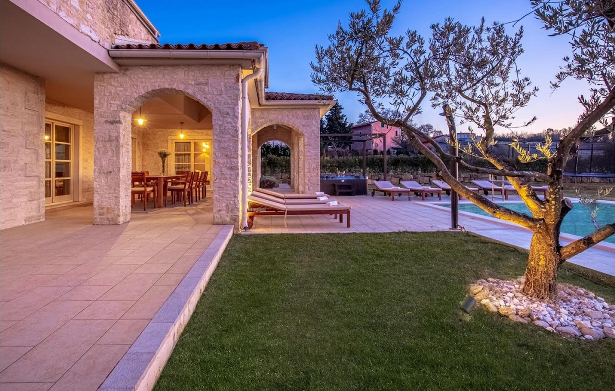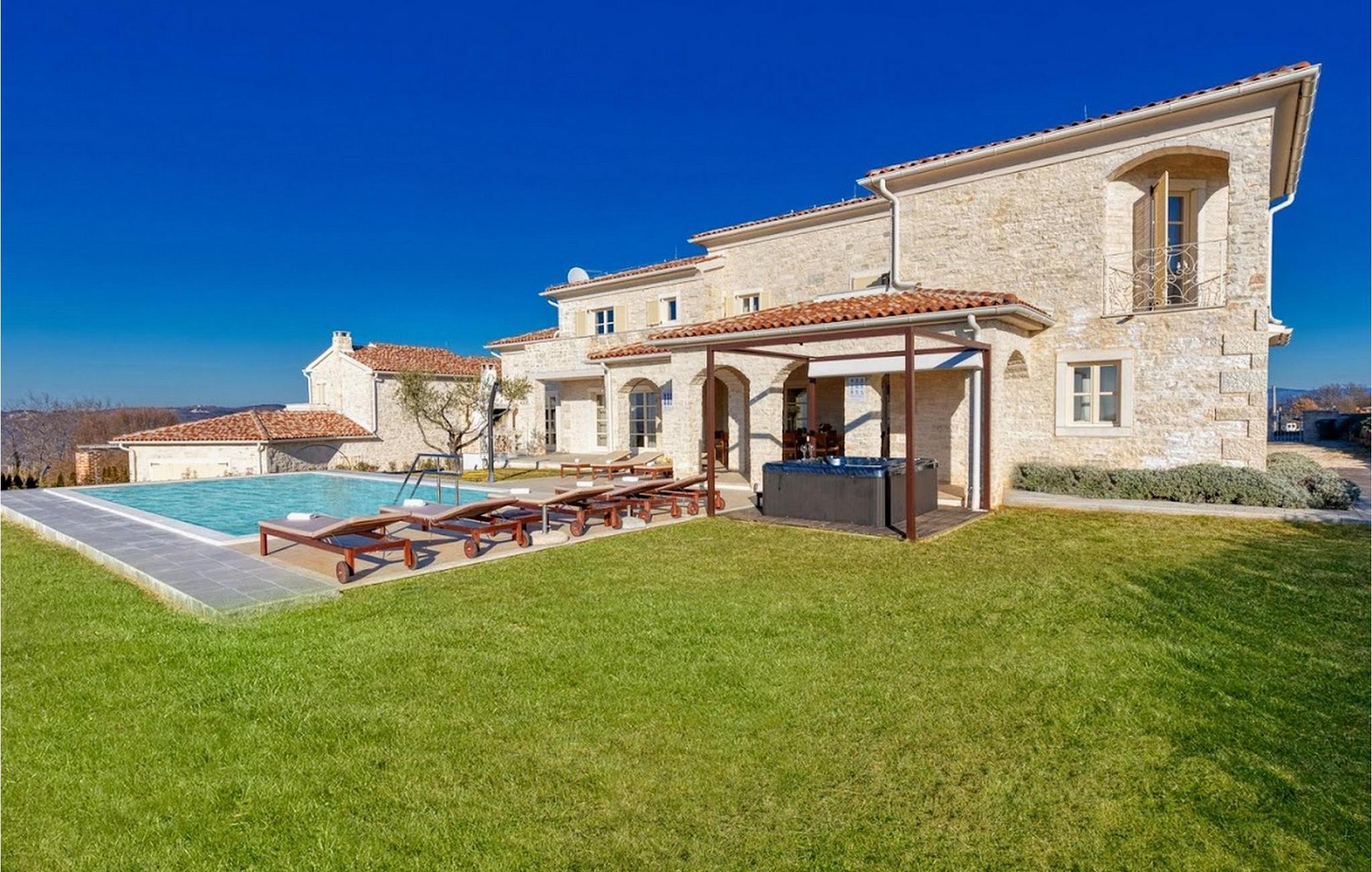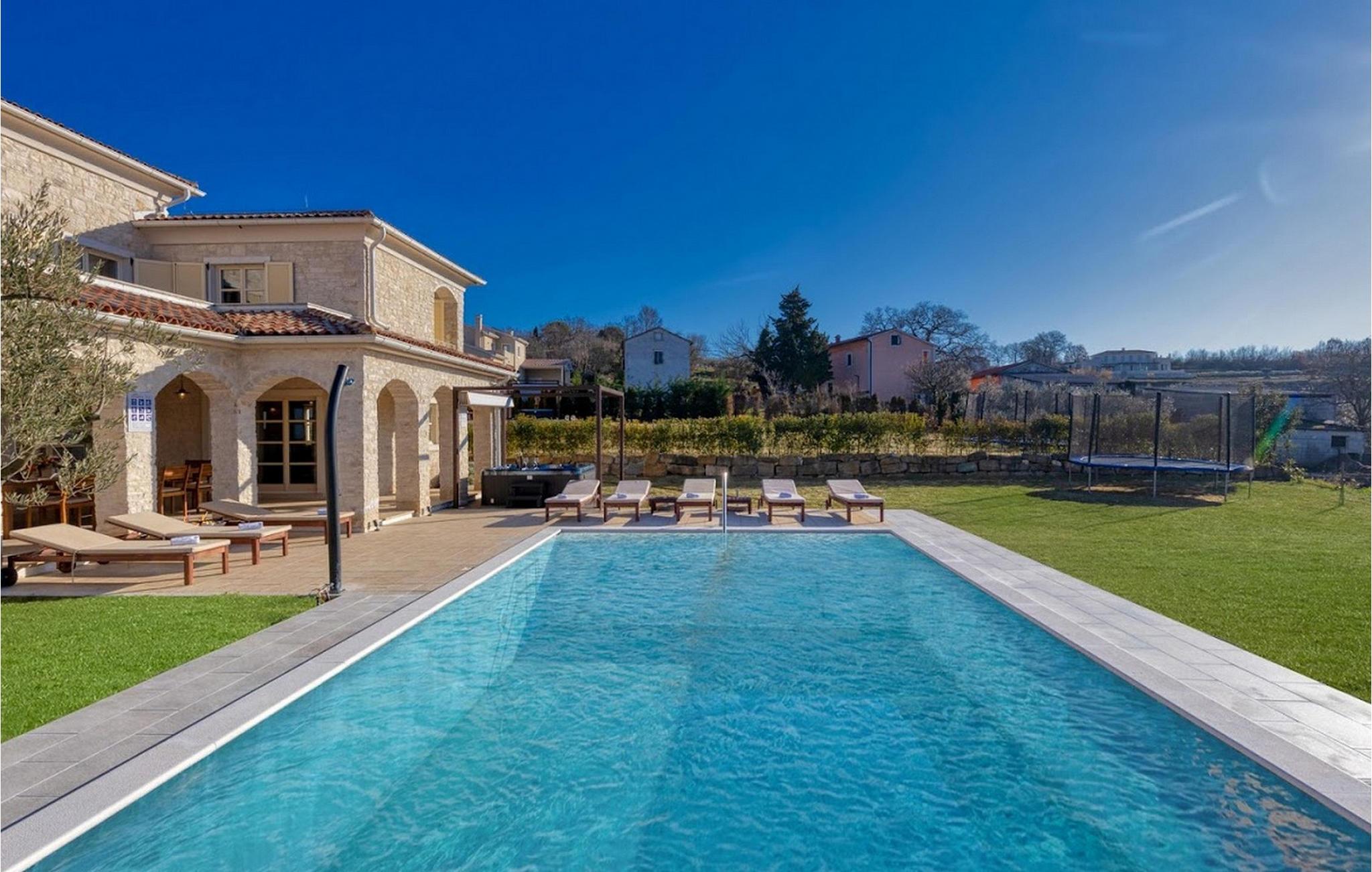 Den smukke Villa Sara ligger i den lille istriske by Bajkini, som byder på et rigt udbud af istrisk vin, intakt natur og en gæstfri befolkning. I det nærliggende Vižinada, 3 km væk, finder du et udvalg af kvalitetsrestauranter, markeder og barer. Den fuldt klimatiserede Villa Sara med centralvarme og et boligareal på 400 m² har 4 luftige og komfortable soveværelser med dobbeltsenge, 4 smukke badeværelser og et separat toilet. Den rummelige stue er direkte forbundet med stenterrassen med udsigt over de nærliggende vinmarker og det krystalklare hav. Køkkenet er moderne og fuldt udstyret med en komfortabel spiseplads til alle gæster. Den smukke 1200m2 have har en udsøgt stor pool (66m2), hvilket gør villaen velegnet til både tidlig og sen sæson ferie. For at tilføje stedets luksuriøse stemning er der et udendørs spabad, hvor gæsterne kan slappe af i fuldstændig fred. Både indendørs og udendørs arealer er udstyret med gratis WiFi, så du kan surfe på internettet uhindret. Villa Sara tilbyder hele den luksuspakke, som enhver gæst helt sikkert vil nyde: smukt hav, fantastiske vinmarker, masser af sjov og en velfortjent ferie i fuldstændig privatliv. Større byer, Porec og Novigrad, ligger kun 10 minutter fra villaen. Denne særlige region er kendt for sine uberørte vinmarker og produktionen af vine i verdensklasse. Kun en kort gåtur fra villaen finder du den berømte Arman Winery, et besøg værd, samt flere topvingårde i umiddelbar nærhed. Kun 5 minutters kørsel væk ligger den smukke middelalderby Motovun, kendt for sin skønhed, rige gastronomiske og turistmæssige tilbud, samt filmfestivalen, der afholdes hver juli. Bemærk venligst, at denne ejendom kun accepterer ungdomsgrupper eller polterabender mod betaling af et refunderbart depositum. En ungdomsgruppe i denne ejendom består af personer under 30 år. Er I en ungdomsgruppe eller polterabend, vil I blive bedt om at betale depositum ved ankomst. Ethvert beløb, der kræves for at reparere eventuelle skader på boligen forårsaget af dig under dit ophold, vil blive trukket fra depositumet og derefter returneret til dig.
