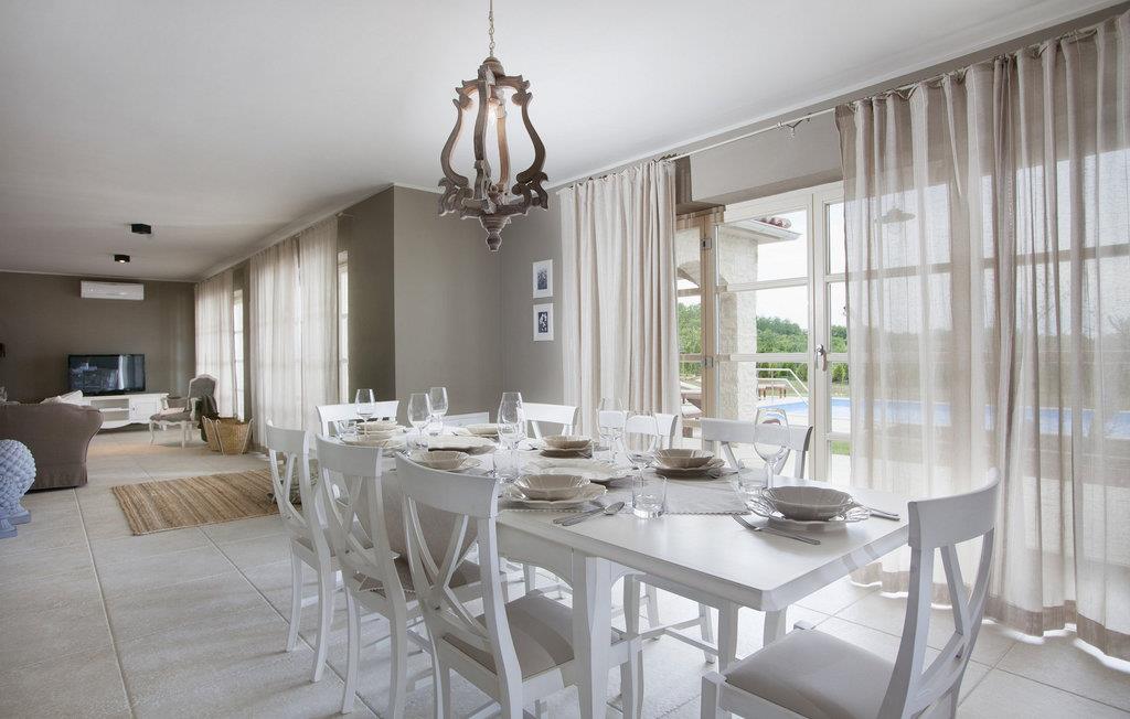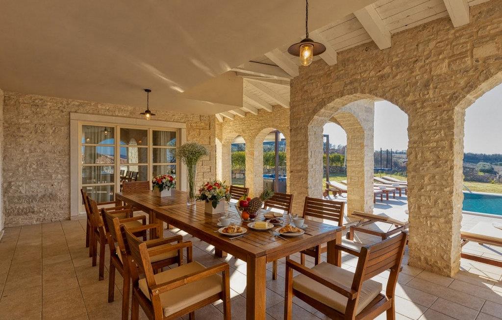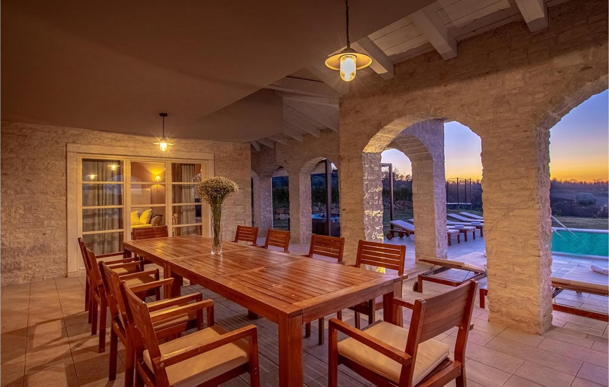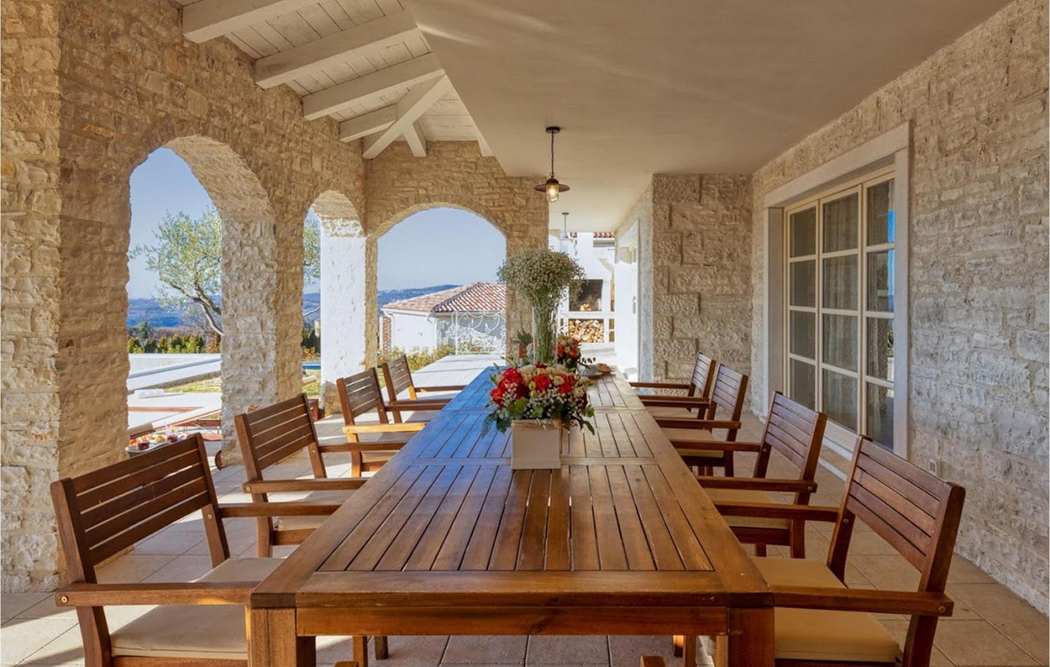 Den smukke Villa Sara ligger i den lille istriske by Bajkini, som byder på et rigt udbud af istrisk vin, intakt natur og en gæstfri befolkning. I det nærliggende Vižinada, 3 km væk, finder du et udvalg af kvalitetsrestauranter, markeder og barer. Den fuldt klimatiserede Villa Sara med centralvarme og et boligareal på 400 m² har 4 luftige og komfortable soveværelser med dobbeltsenge, 4 smukke badeværelser og et separat toilet. Den rummelige stue er direkte forbundet med stenterrassen med udsigt over de nærliggende vinmarker og det krystalklare hav. Køkkenet er moderne og fuldt udstyret med en komfortabel spiseplads til alle gæster. Den smukke 1200m2 have har en udsøgt stor pool (66m2), hvilket gør villaen velegnet til både tidlig og sen sæson ferie. For at tilføje stedets luksuriøse stemning er der et udendørs spabad, hvor gæsterne kan slappe af i fuldstændig fred. Både indendørs og udendørs arealer er udstyret med gratis WiFi, så du kan surfe på internettet uhindret. Villa Sara tilbyder hele den luksuspakke, som enhver gæst helt sikkert vil nyde: smukt hav, fantastiske vinmarker, masser af sjov og en velfortjent ferie i fuldstændig privatliv. Større byer, Porec og Novigrad, ligger kun 10 minutter fra villaen. Denne særlige region er kendt for sine uberørte vinmarker og produktionen af vine i verdensklasse. Kun en kort gåtur fra villaen finder du den berømte Arman Winery, et besøg værd, samt flere topvingårde i umiddelbar nærhed. Kun 5 minutters kørsel væk ligger den smukke middelalderby Motovun, kendt for sin skønhed, rige gastronomiske og turistmæssige tilbud, samt filmfestivalen, der afholdes hver juli. Bemærk venligst, at denne ejendom kun accepterer ungdomsgrupper eller polterabender mod betaling af et refunderbart depositum. En ungdomsgruppe i denne ejendom består af personer under 30 år. Er I en ungdomsgruppe eller polterabend, vil I blive bedt om at betale depositum ved ankomst. Ethvert beløb, der kræves for at reparere eventuelle skader på boligen forårsaget af dig under dit ophold, vil blive trukket fra depositumet og derefter returneret til dig.