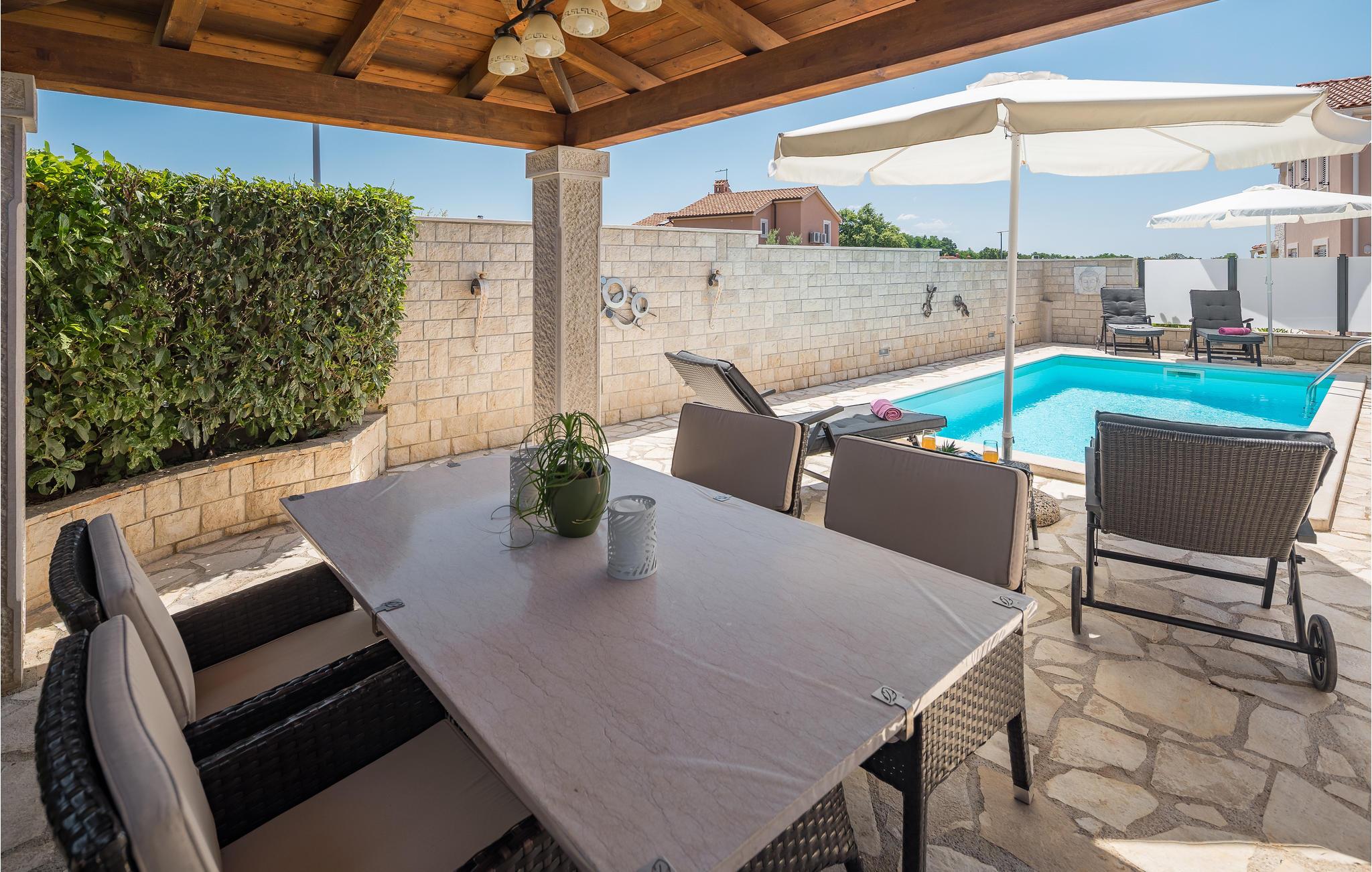 Dette venlige feriehus med swimmingpool vil helt sikkert ikke skuffe jer. Det ligger i en del af byen Kastelir og er smagfuldt indrettet. Det består af to soveværelser, en dagligstue, køkken og et badeværelse. Foruden en pool, hvor I kan køle jer af på varme sommerdage, finder I også en pavillon med liggestole, grill og havemøbler hvor I kan nyde jeres ferie i fulde drag. I bor på en lukket naturgrund og har delvis havudsigt. Til restauranten eller supermarkedet kan I gå på ca. 5 minutter, og badestranden ligger ca. 10 minutters kørsel væk. Her er alle de helt rigtige betingelser til en ferie fuld af oplevelser og hvor I kan slappe af, lige som I har lyst.