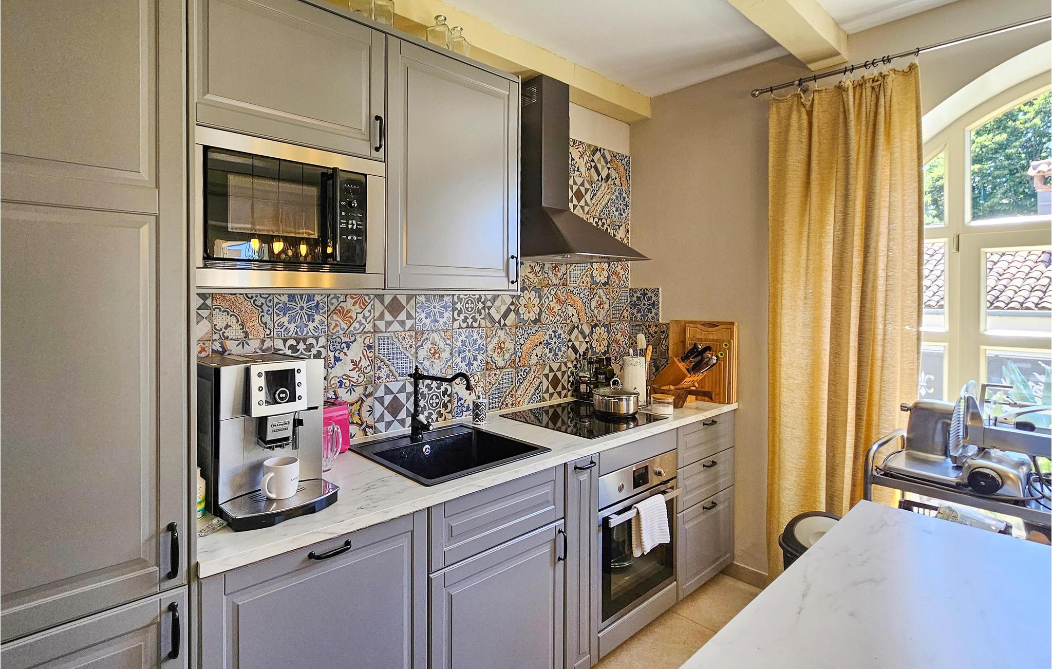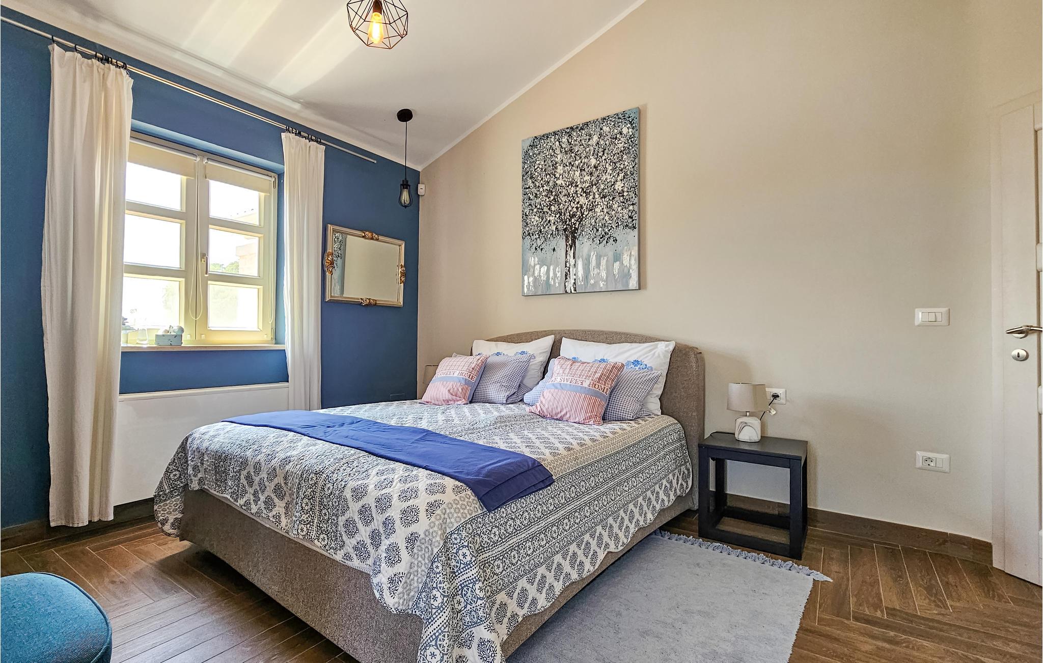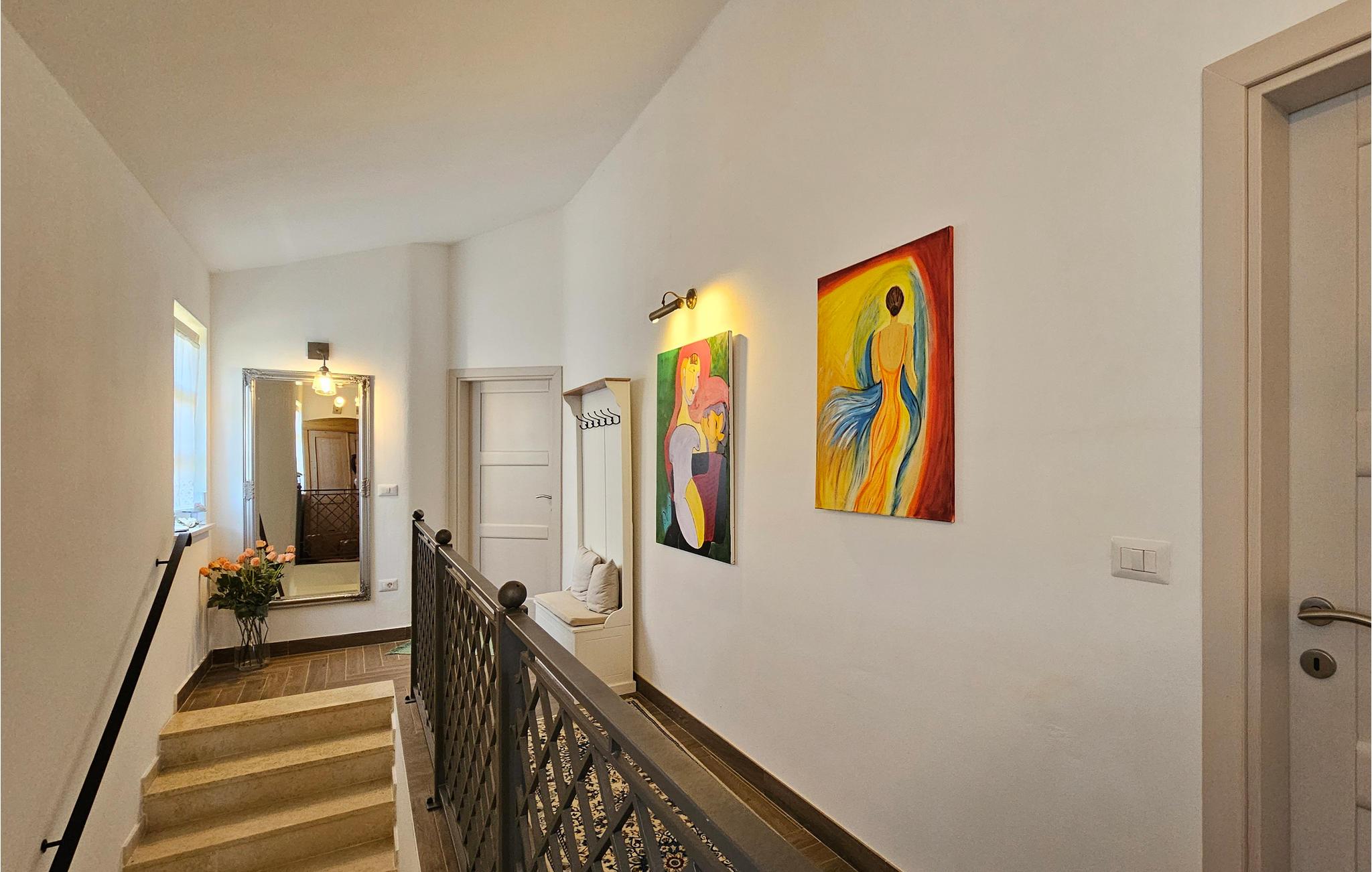 Den imponerende Villa Ginocchetti, bygget i 2018, ligger gemt væk i den istriske by Valentici, en del af Kaštelir kommune. Villaen er omgivet af smuk olivengrønt, hvilket gør din ferie ekstra afslappende. Du kan også slappe af på den stenede strand, som ligger kun 7 kilometer fra villaen. Inde i villaen er der et soveværelse i stueetagen og tre soveværelser på øverste etage, hvoraf det ene har udsigt over rækkerne af oliventræer og de to andre har udsigt til morgensolen og det krystalklare hav. De klimatiserede soveværelser har en dobbeltseng (180 x 200 cm). Hvis du tager dine små med til villaen, er en barneseng (60 x 120 cm) tilgængelig på anmodning. I stueplan er der opholdsstue med TV og køkken, som kan rumme 8 personer i spisestuen. Villaen har fire en-suite badeværelser med bruser. Villaen har også et separat toilet. Kombinationen af moderne indretning og rustik udvendig stil tilbyder dig komfort og luksus under dit ophold. I villaens gårdhave er der en swimmingpool (50 m2), hvor I kan slappe af og nyde udsigten til de smukke oliventræer, der skaber en rigtig rustik atmosfære. Også omkring poolen er der 6 liggestole og et opholdsområde, hvor du kan nyde naturen med dine kære. Der er to parkeringspladser på ejendommen ved siden af villaen og mere end tre uden for ejendommen. Villaen er fuldt indhegnet, så du kan nyde privatlivets fred i det istriske paradis. Valentici ligger nær byen Porec, som har historiske monumenter, der vil transportere dig til den kroatiske kulturarvs fortid. Også i Porec er der smukke strande med krystalklart hav, hvor du kan nyde udsigten over det mediterende åbne hav. Der er tre golfbaner inden for en radius af 20 km. Den nærmeste tennisbane ligger 8 km væk, og der er restauranter og pubber 500 m. Fra næste sæson 2023 vil villaen have en ladestation (vægboks) til elbiler (inkluderet i lejeprisen). Besøg den smukke Villa Ginocchetti med dine kære, som vil give dig hvile og afslapning i smukke Istrien! Kæledyr er tilladt på denne ejendom efter ejerens skøn eller mod et gebyr.