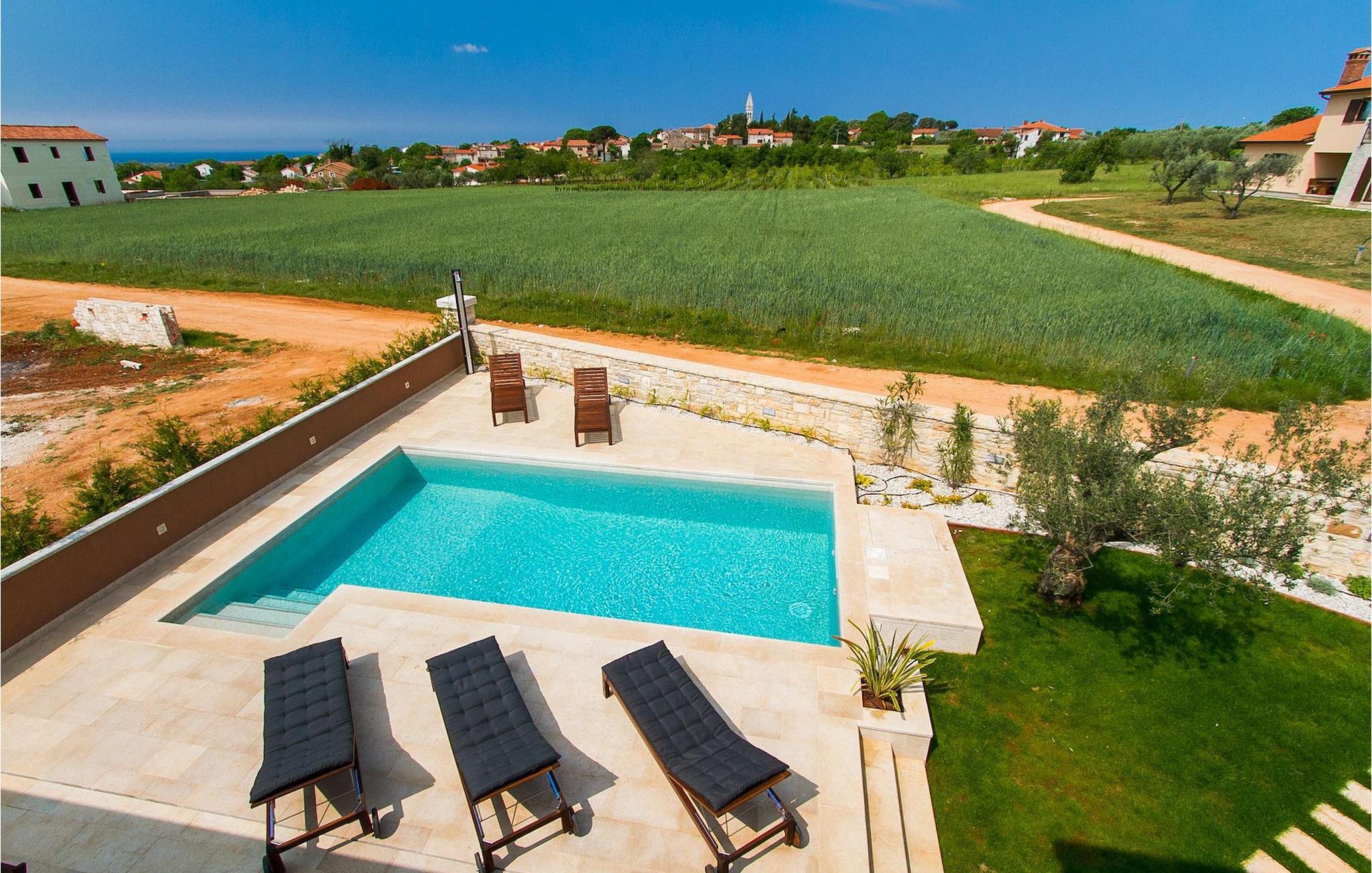 Villaen er beliggende i en idyllisk landsby kaldet Kastelir. Butikker og restauranter ligger inden for gåafstand. Det er tæt på turisthotspottet, byen Porec, hvor alle former for aktiviteter kan findes. Oplev Euphrasius-basilikaen (Unescos verdenskulturarv), mens du går gennem de maleriske gyder i den gamle bydel i Porec. Mange forskellige sportsgrene er til din rådighed, såsom tennis, beachvolley, fodbold, ridning, cykling, vandreture, vandsport. Oplev smukke strande med krystalklart vand. Der vil du finde mange caféer, barer og restauranter, hvor du kan smage lokale specialiteter. De middelalderlige bakketopbyer Motovun og Groznjan er inden for rækkevidde og et besøg værd. Lidt længere henne ligger Brijuni National Park og det romerske amfiteater i Pula. Vi anbefaler en dagstur til Venedig.