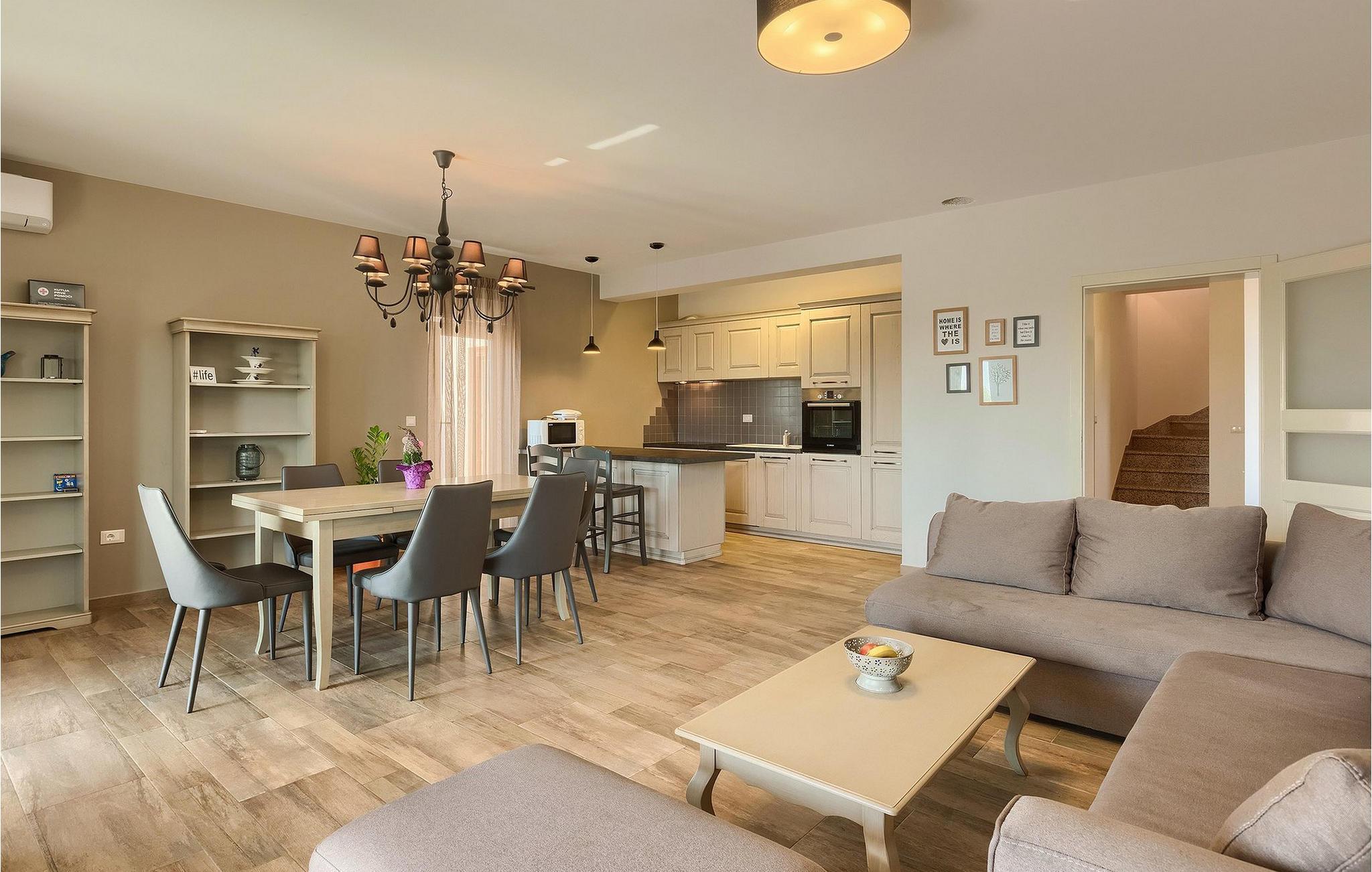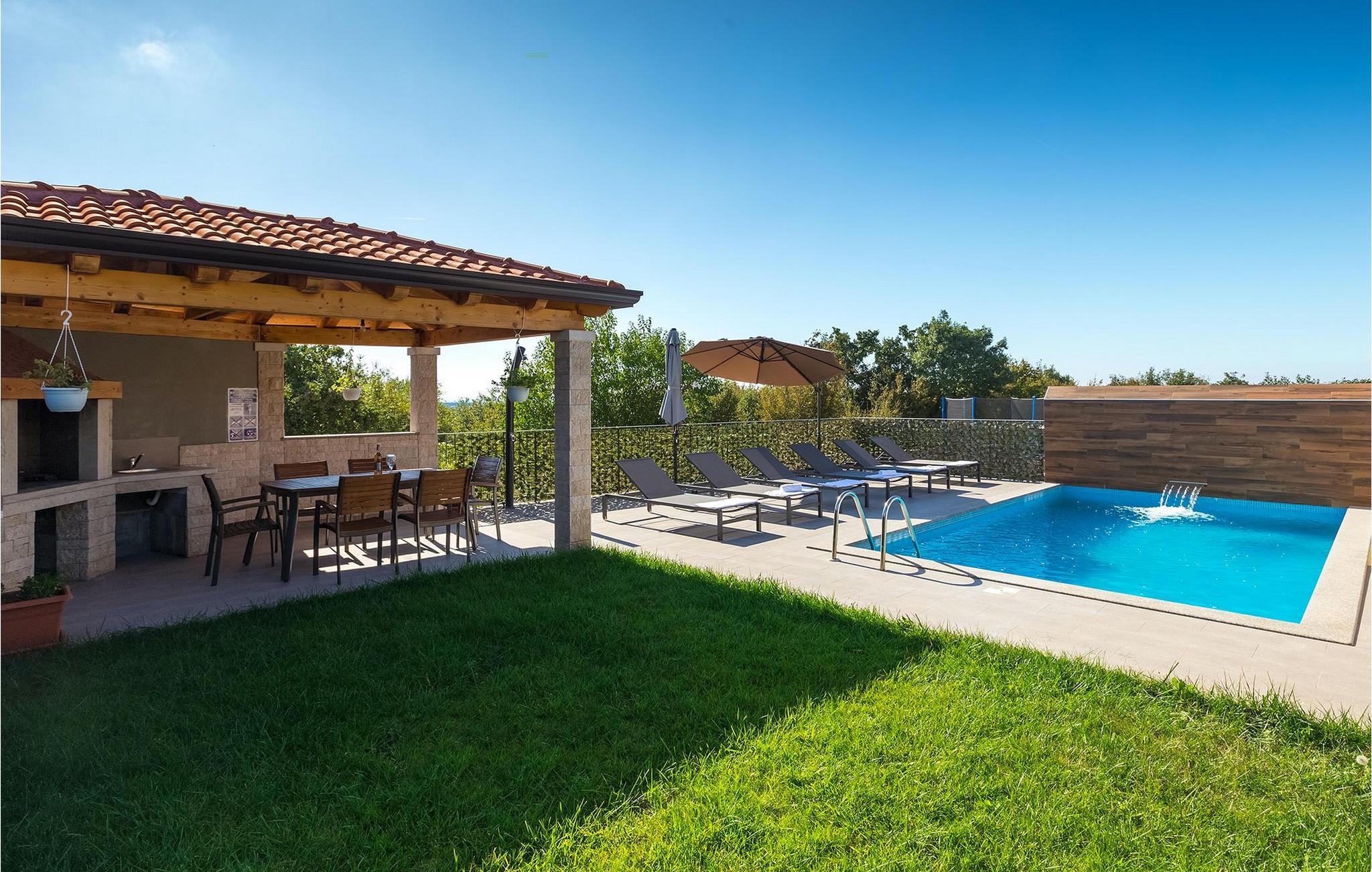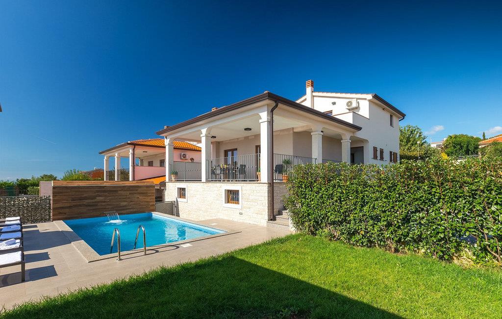 Vil du slappe af i en villa med pool ikke langt fra havet, anbefaler vi Villa Sime. Denne charmerende villa tilbyder fire soveværelser, der kan rumme op til otte gæster. To lyse soveværelser og et badeværelse er placeret på første sal. Det ene soveværelse har en dobbeltseng, det andet har to enkeltsenge. Begge soveværelser har aircondition og har adgang til en fælles terrasse med en smuk udsigt over omgivelserne og havet. I stueetagen af villaen er der to soveværelser med aircondition, en dobbeltseng og to badeværelser. En hyggelig og lunt indrettet opholdsstue med TV, som er forbundet med spisepladsen og et fuldt udstyret køkken, er ligeledes placeret på samme niveau. Fra stuen er der udgang til en overdækket terrasse med spisebord, med udsigt over poolen. I villaens have finder du en indbydende pool med liggestole til at nyde solen. Vi er sikre på, at du vil blive henrykt over massagegardinvandfaldet, som ikke kun ser fantastisk ud, men også er fantastisk til en nakke- og skuldermassage. I haven er der også en overdækket spiseplads med grill, hvor du kan prøve dine kulinariske færdigheder. Villaen er fuldt indhegnet og har privat parkering til to biler. Book Villa Sime og nyd din ferie med familie og venner. Villa Sime ligger i den lille landsby kaldet Rojci nær byen Porec. Villaen ligger kun en kort gåtur fra den nærmeste restaurant og butik. Vi anbefaler dig at besøge en af de traditionelle restauranter og smage lokale specialiteter. Ikke langt fra villaen finder du den gamle by Porec - en af regionens turist-hot-spots med alle dens sportslige, gastronomiske og sjove faciliteter. Den betagende Eufrasiusbasilika fra Unescos verdensarvsliste er symbolet på denne by. Den nærmeste strand er ca. 6 km væk fra villaen. Da kysten er let tilgængelig med bil, har du masser af forskellige strande at opdage på Istriens vestkyst. Indlandet i denne del af Istrien byder på mange vandre- og cykelstier, samt mulighed for at opdage små byer og deres kulturelle og gastronomiske særpræg. Naturelskere kan besøge Baredine-grotten nær Porec og udforske den underjordiske verden. For dem, der leder efter en aktiv ferie, anbefaler vi et besøg i Istralandia Aqua Park, en af de mest populære vandlande ikke kun i Kroatien, men også i Europa.