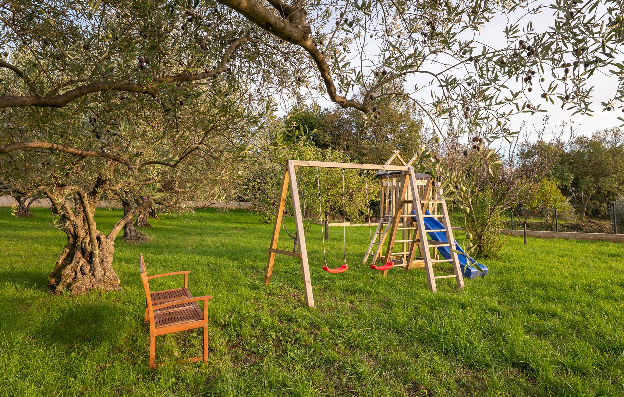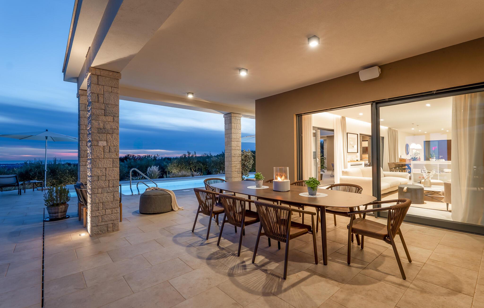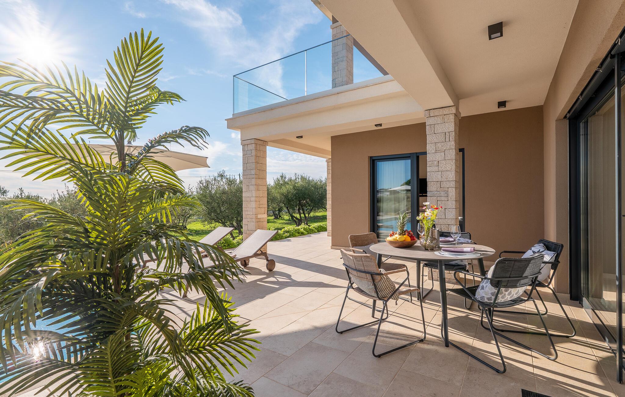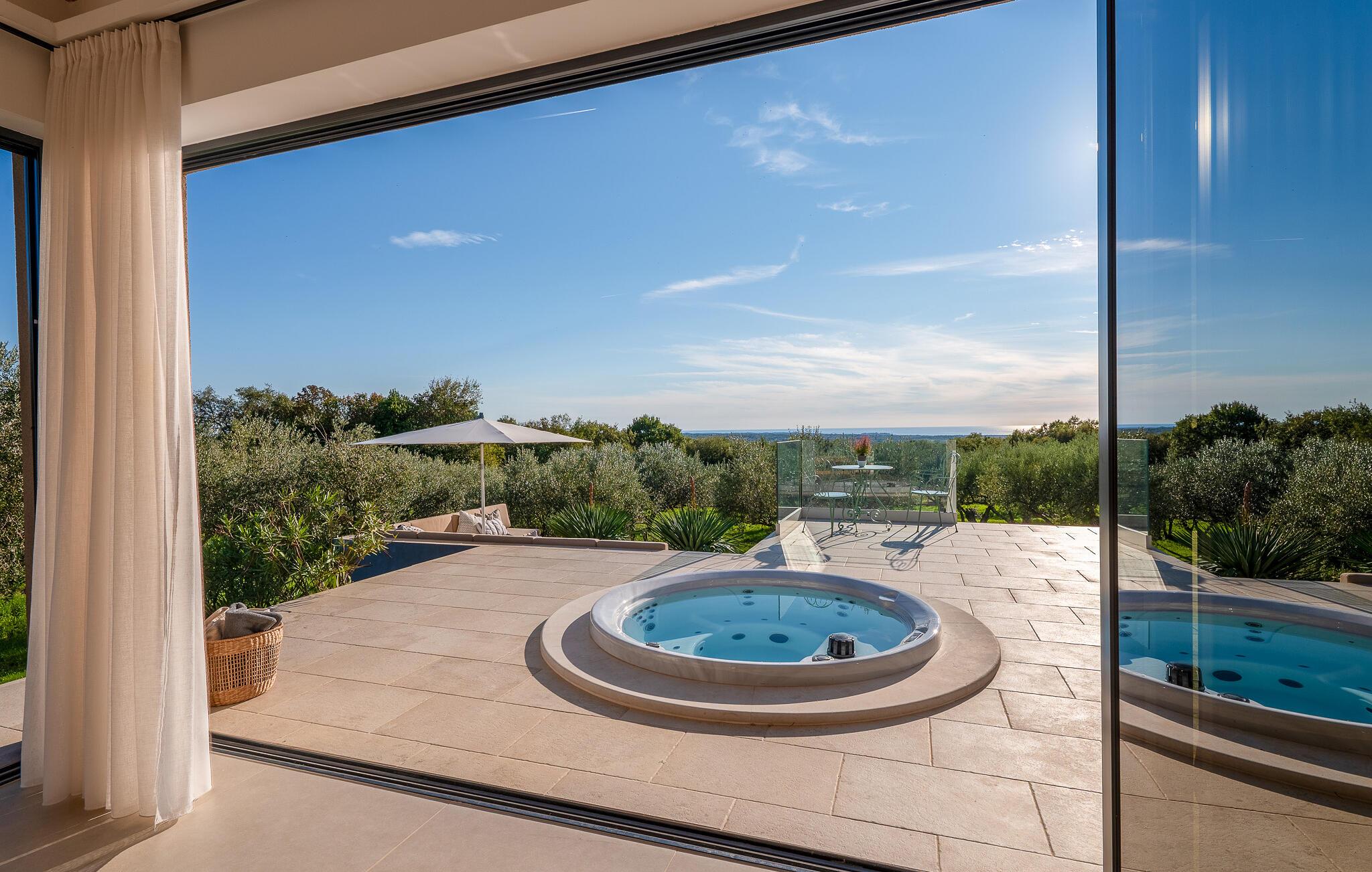 Højdepunkterne, såsom den private pool og det udendørs spabad, toppes kun af en fantastisk panoramaudsigt over den private olivenlund. Den nærmeste strand ligger kun en kort køretur fra villaen.