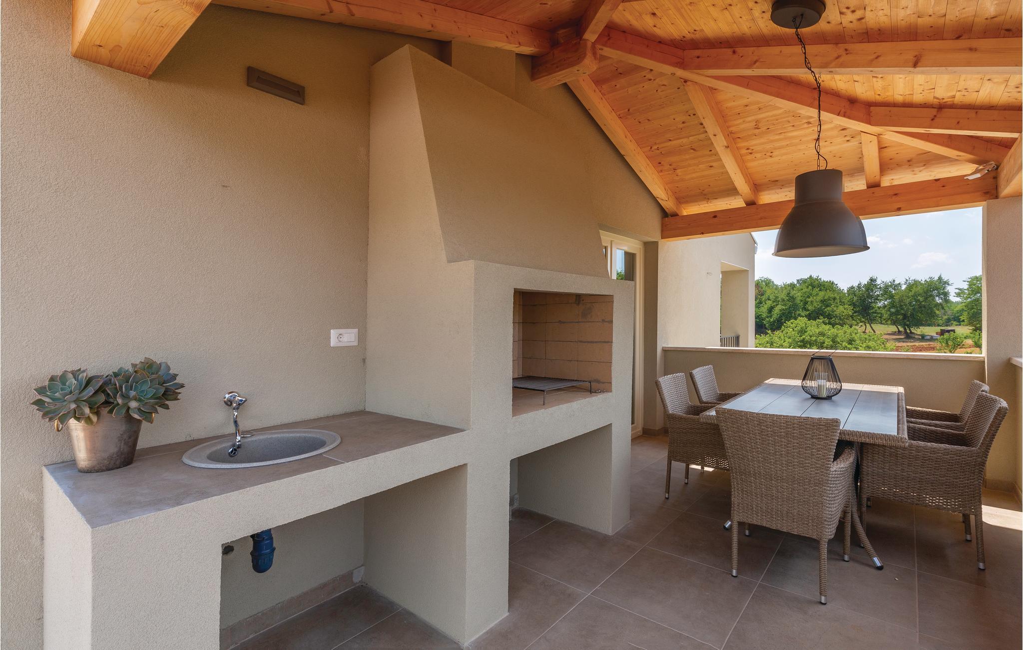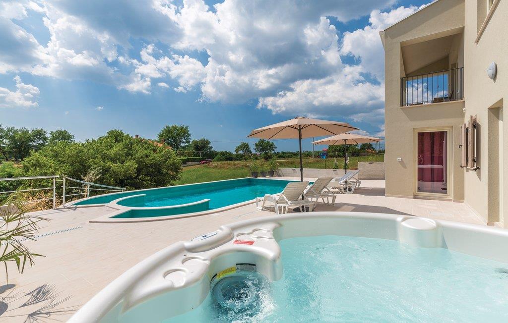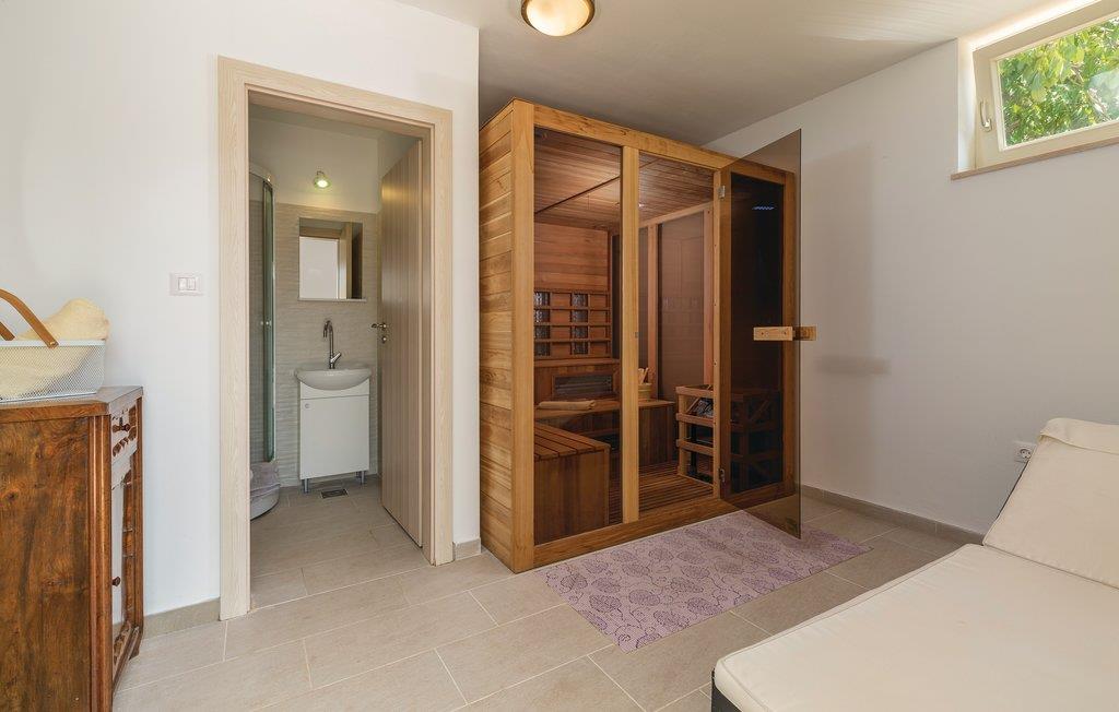 Dette attraktive feriehus med pool ligger i en lille by, i nærheden af det skønne Porec. Det rummelige domicil strækker sig over to etager og er charmerende og stilfuldt indrettet. I kan også glæde jer til sauna, fitnessrum og til whirlpoolen til fire personer der står på terrassen. Hop en tur i poolen lige når I har lyst og lav lækker mad på husets grill. Der er god plads til leg og boldspil i husets indhegnede have. Vi kan anbefale besøg i den lille by Višnjan, med sit udsigtstårn af sten, samt i byen Porec, hvor der afholdes mange interessante former for underholdning.