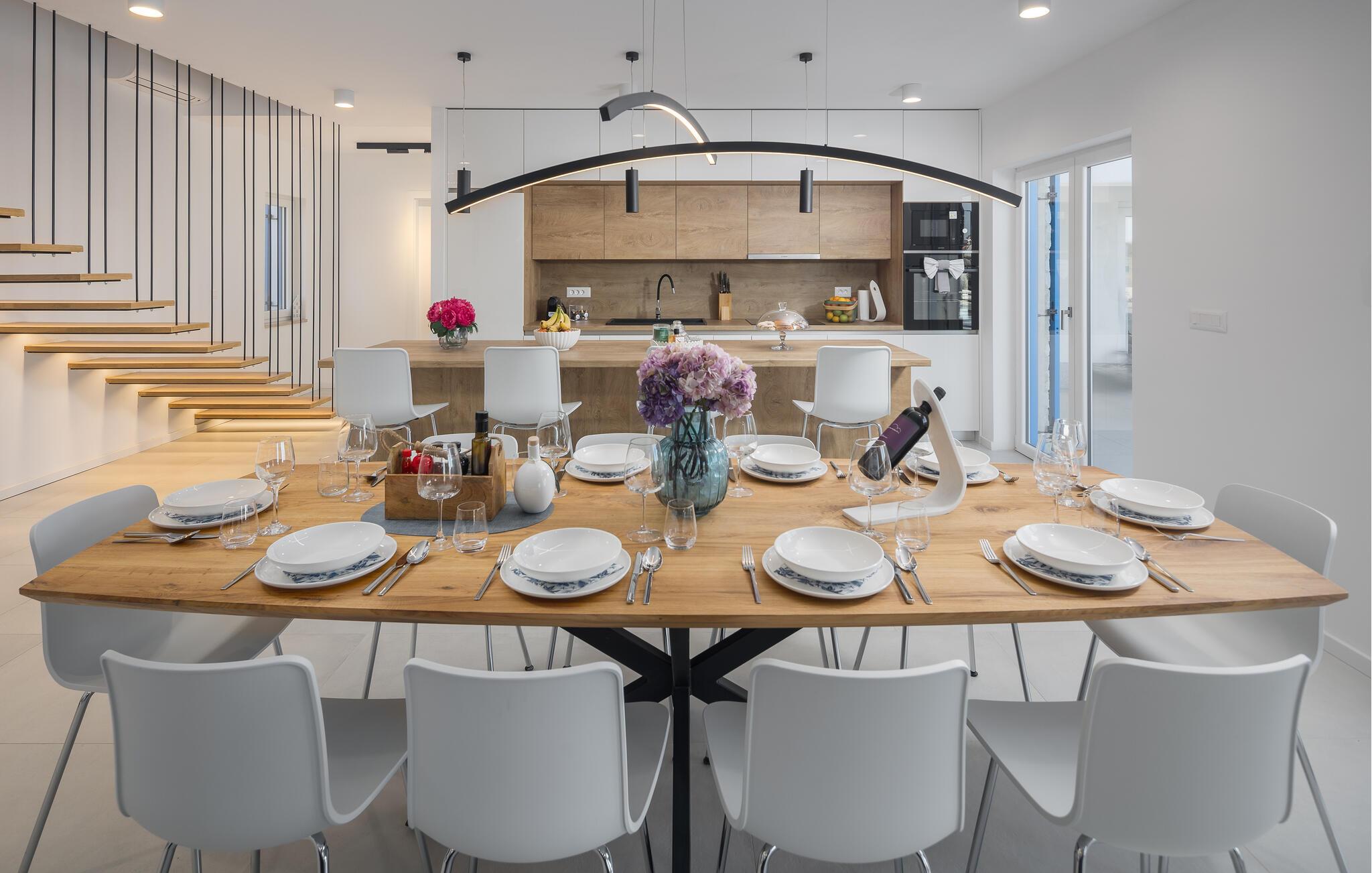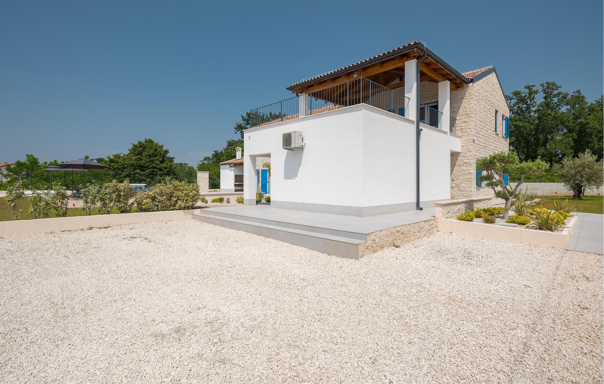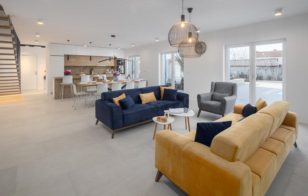 Den moderne indretning i jeres rummelige feriehus i den maleriske by Rapavel gør det til det ideelle tilflugtssted for familier og grupper. Stilfuld indretning med lyse, rummelige værelser venter på jer i huset. I stuen inviterer komfortable sofaer og en pejs jer til at tilbringe hyggelige aftener. Det åbne spise- og køkkenområde er fuldt udstyret. Fra en moderne køkkenø til et stort spisebord, hvor I kan spise med familien, alt er tilgængeligt her. Til jeres afslapning er der en privat sauna og et spabad til rådighed, som afrunder oplevelsen i huset.