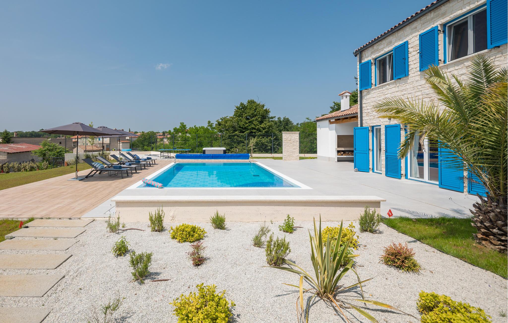 Tilbring jeres drømmeferie i dette luksusferiehus med pool og unikke faciliteter.