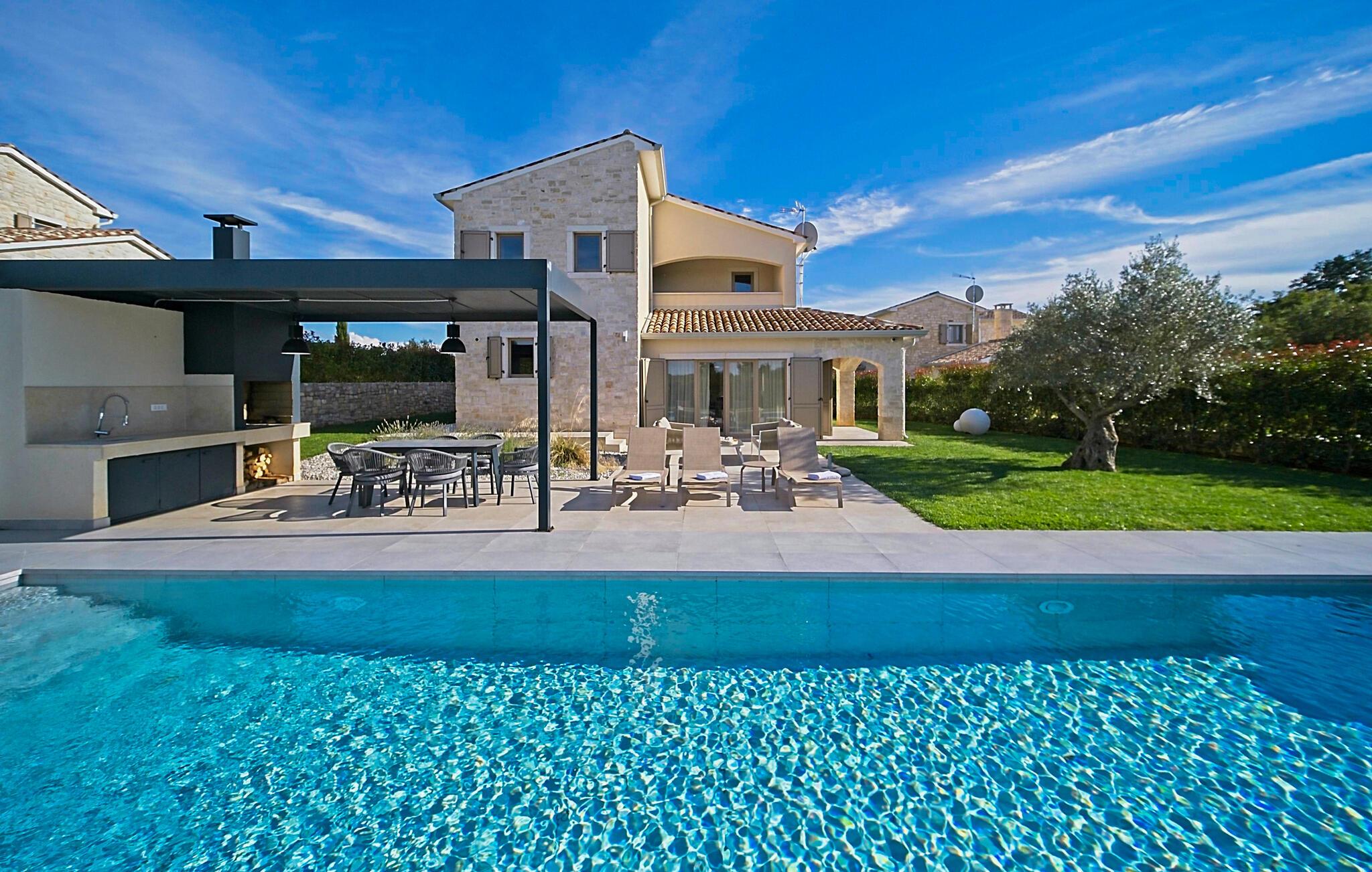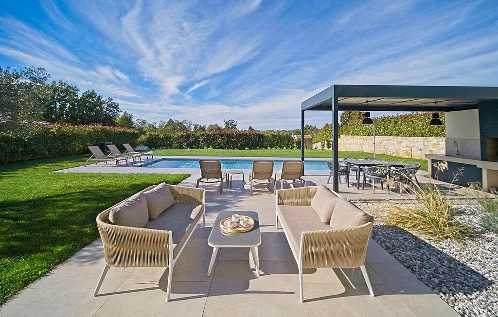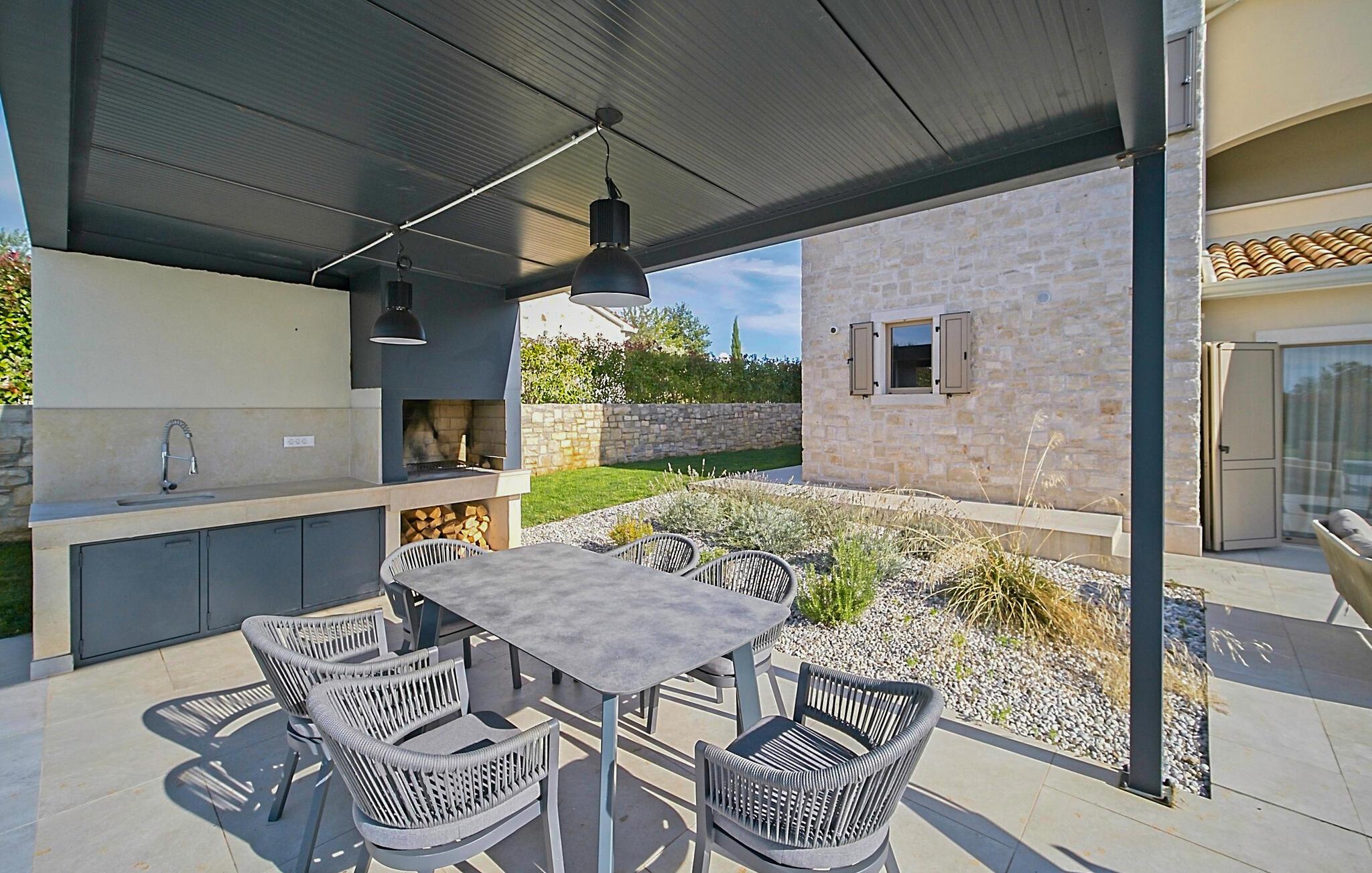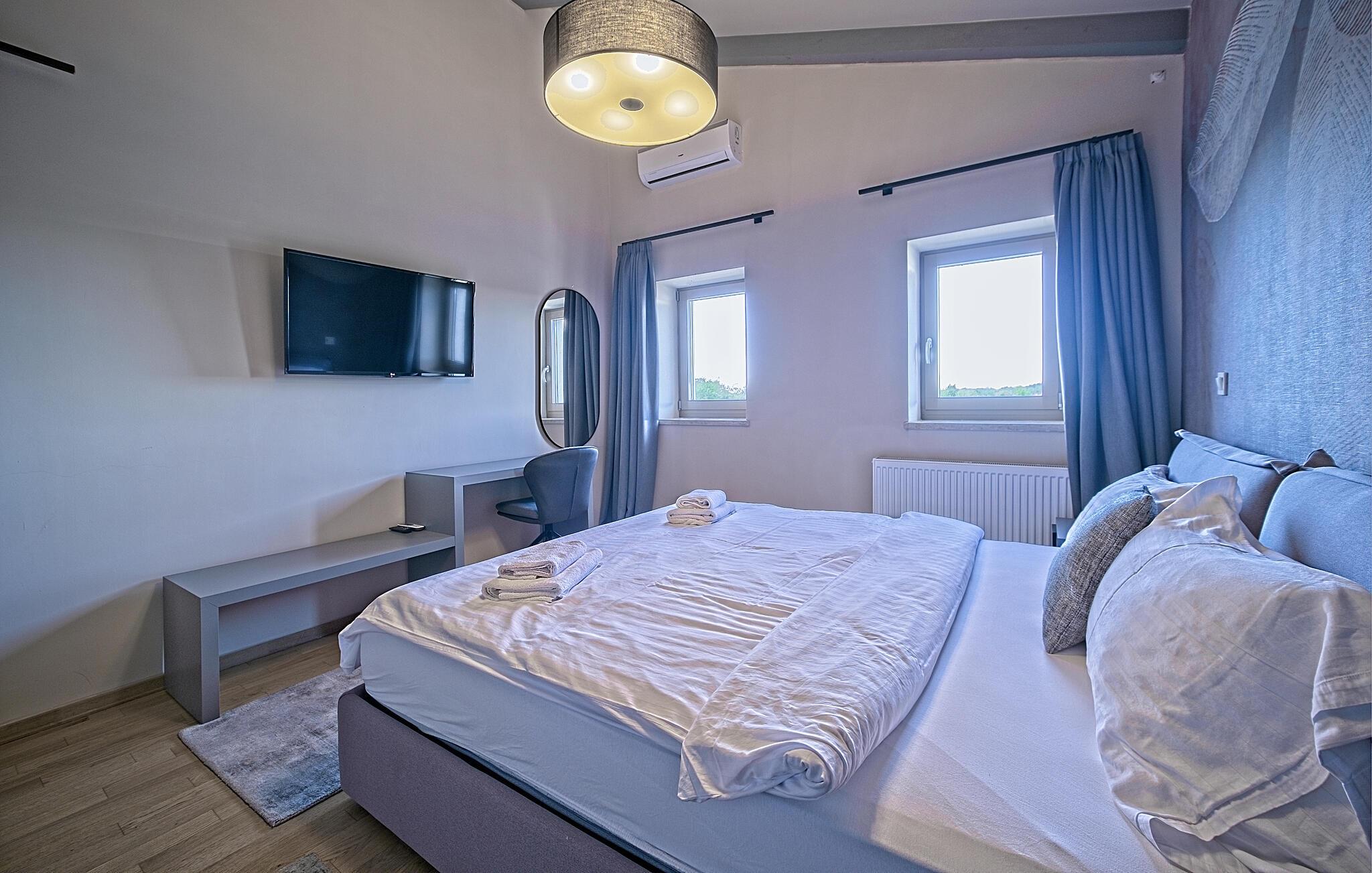 Forkæl jer selv med en dejlig ferie i dette stilfulde feriehus med pool. Dette indbydende hus imponerer med sin tidløse elegance og behagelige komfort. Gulv-til-loft-vinduer lukker masser af naturligt lys ind, mens et stort sofaområde inviterer jer til at slappe af. Lyt til jeres yndlingsmusik eller stream jeres yndlingsserie. I det moderne køkken kan I tilberede lækre måltider og servere dem med et glas kroatisk vin. Start dagen med en forfriskende dukkert i poolen og nyd den vidtstrakte udsigt over landskabet. Slap derefter af på en liggestol og nyd sødmen ved at lave ingenting. Mød hinanden om aftenen til en grillfest og afslut dagen med at slappe af på terrassen. Udforsk det idylliske bakkede landskab i Istrien på en vandretur eller cykeltur gennem området omkring Vižinada og Višnjan. Tag en tur til den historiske kystby Porec, som imponerer med sin UNESCO-beskyttede Euphrasian-basilika. Nyd regionale vine og kulinariske specialiteter på de omkringliggende vingårde og taverner. Om natten kan I se på stjernehimlen ved Višnjan-observatoriet, et af Kroatiens mest berømte observatorier.