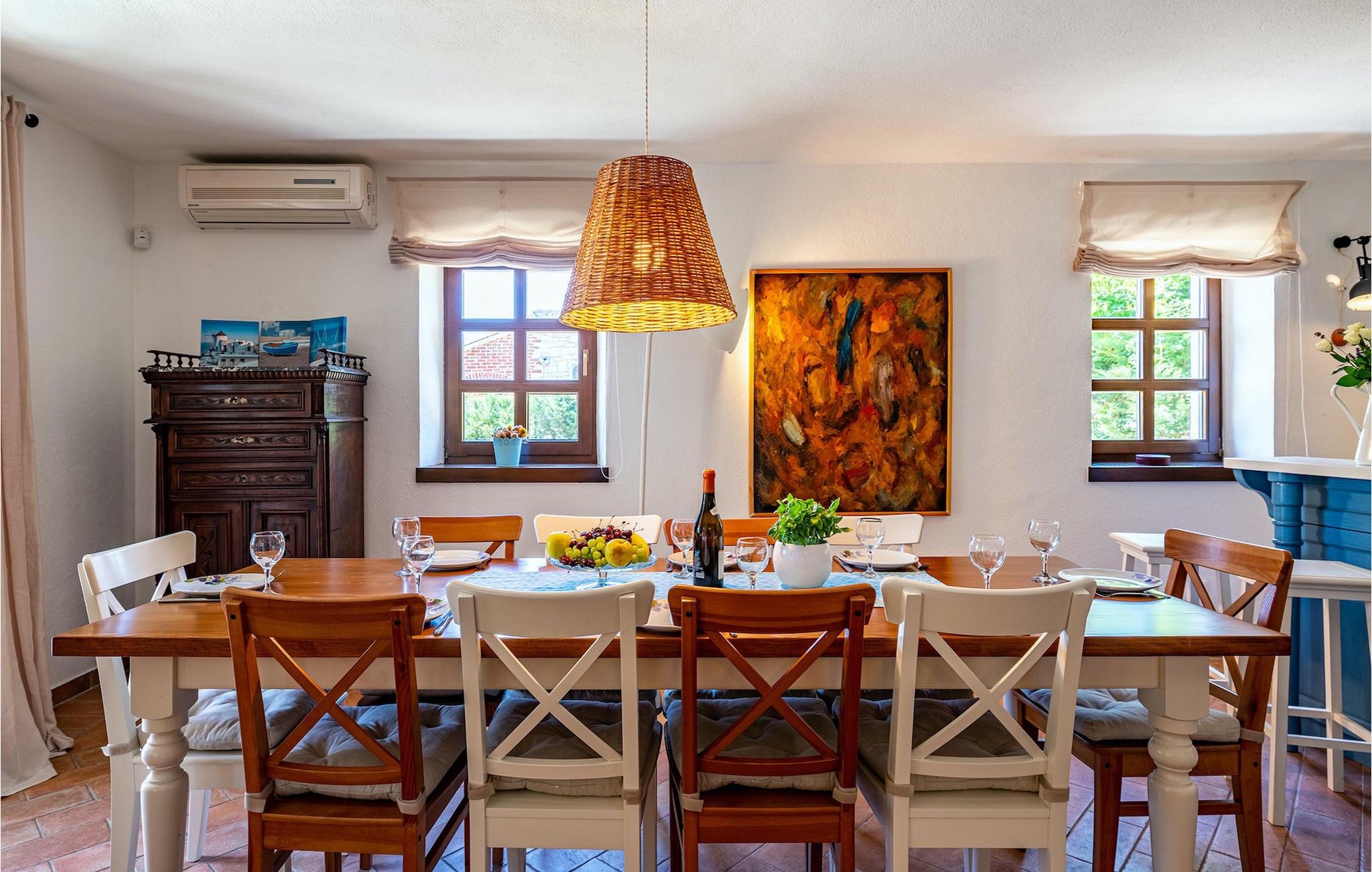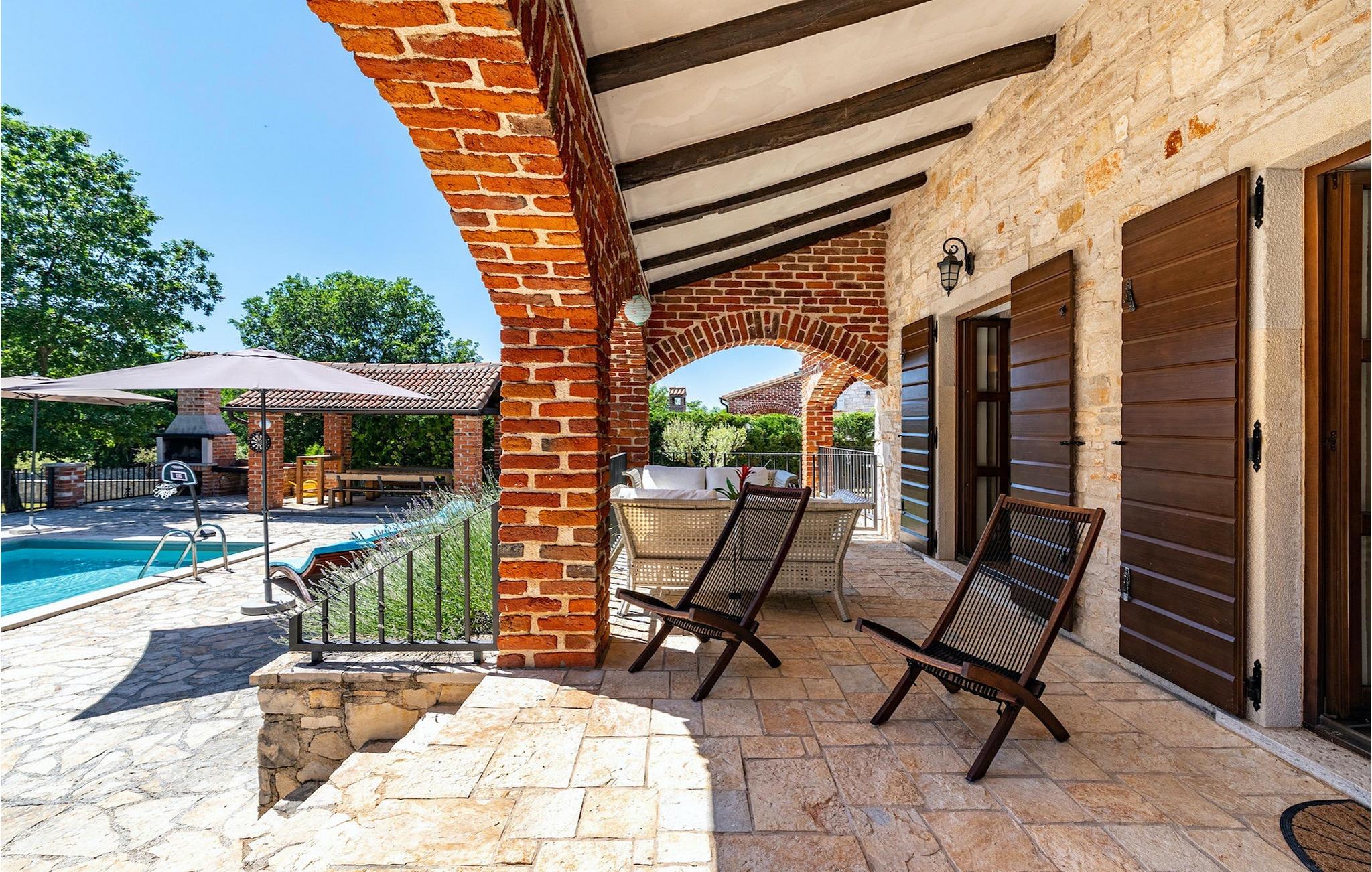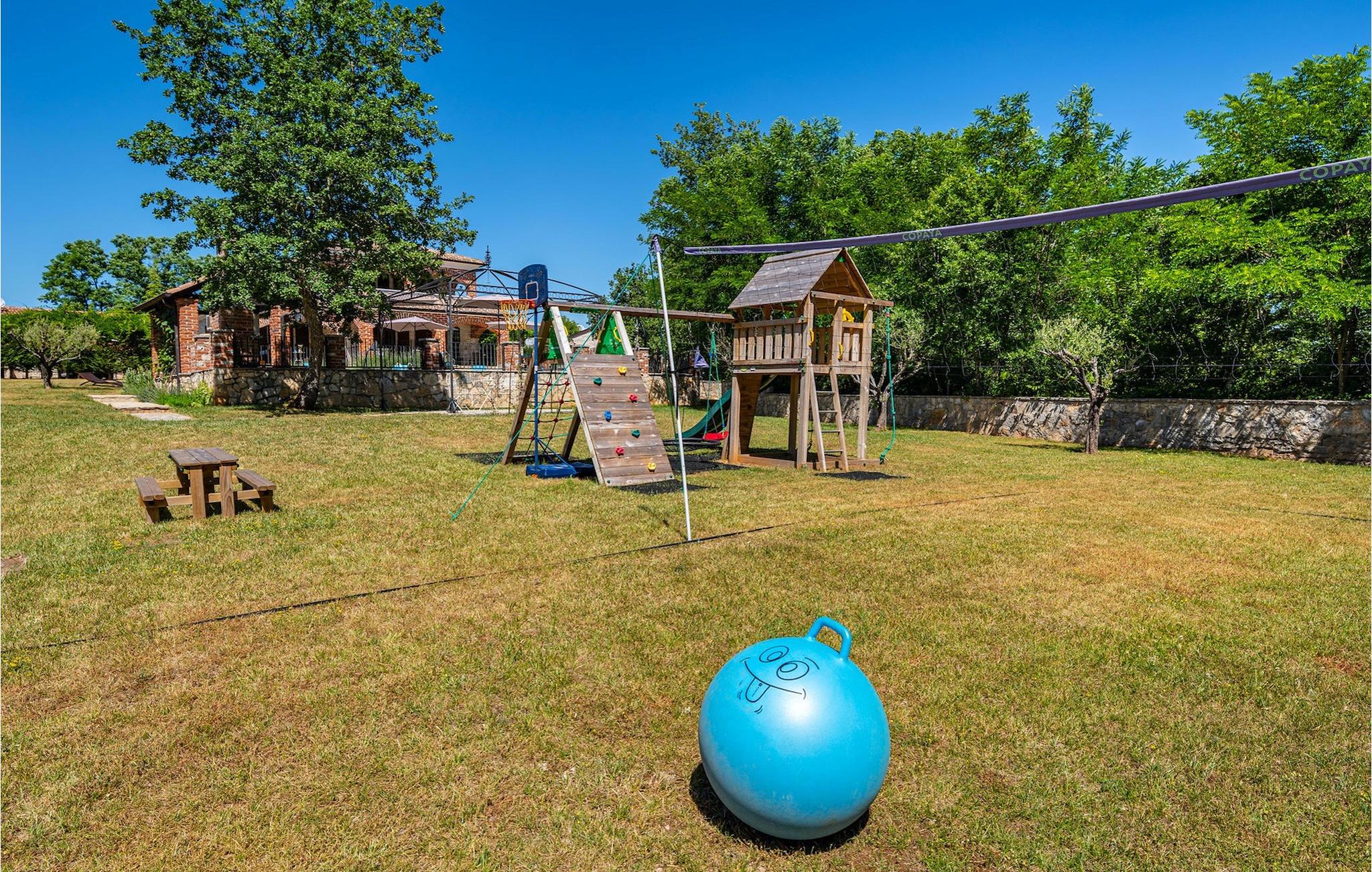 Du vil helt sikkert blive overrasket over det skønne store udendørs område med pool. På terrassen er der et par siddepladser, en overdækket spiseplads til 12 gæster samt en grillplads med kulgrill. Tag en svømmetur i poolen, læn dig tilbage i en af liggestolene og forkæl dig selv med et glas kold drik. Mens du slapper af og nyder din velfortjente ferie, kan dine børn spille en omgang bordtennis, spille volleyball eller prøve den veludstyrede legeplads. Villa Happy Holiday er et perfekt sted at tilbringe en afslappet, fornøjelig og selvfølgelig glad ferieVišnjan er en landsby i Istrien, som ligger 13 kilometer øst for Porec. Den maleriske by Višnjan er et astronomisk observatorium, hjemsted for flere langvarige internationale sommerprogrammer for unge inden for astronomi, arkæologi, havbiologi og andet. Višnjan er også kendt inden for olivendyrkning og vindyrkning og også et af de sidste feriesteder i Istrien for autokthon istrisk kvæg Boškarin.