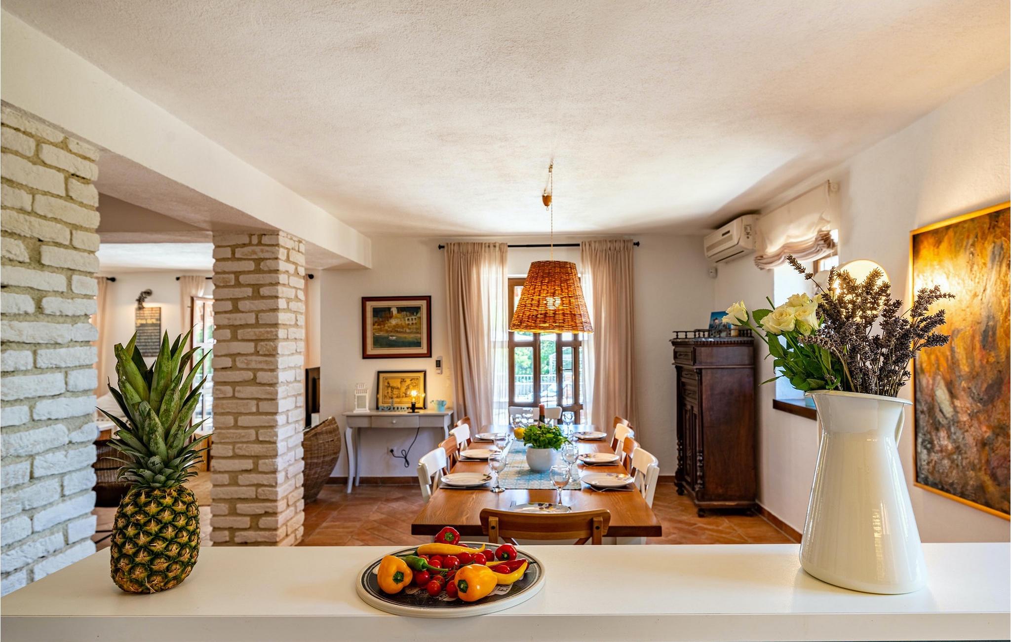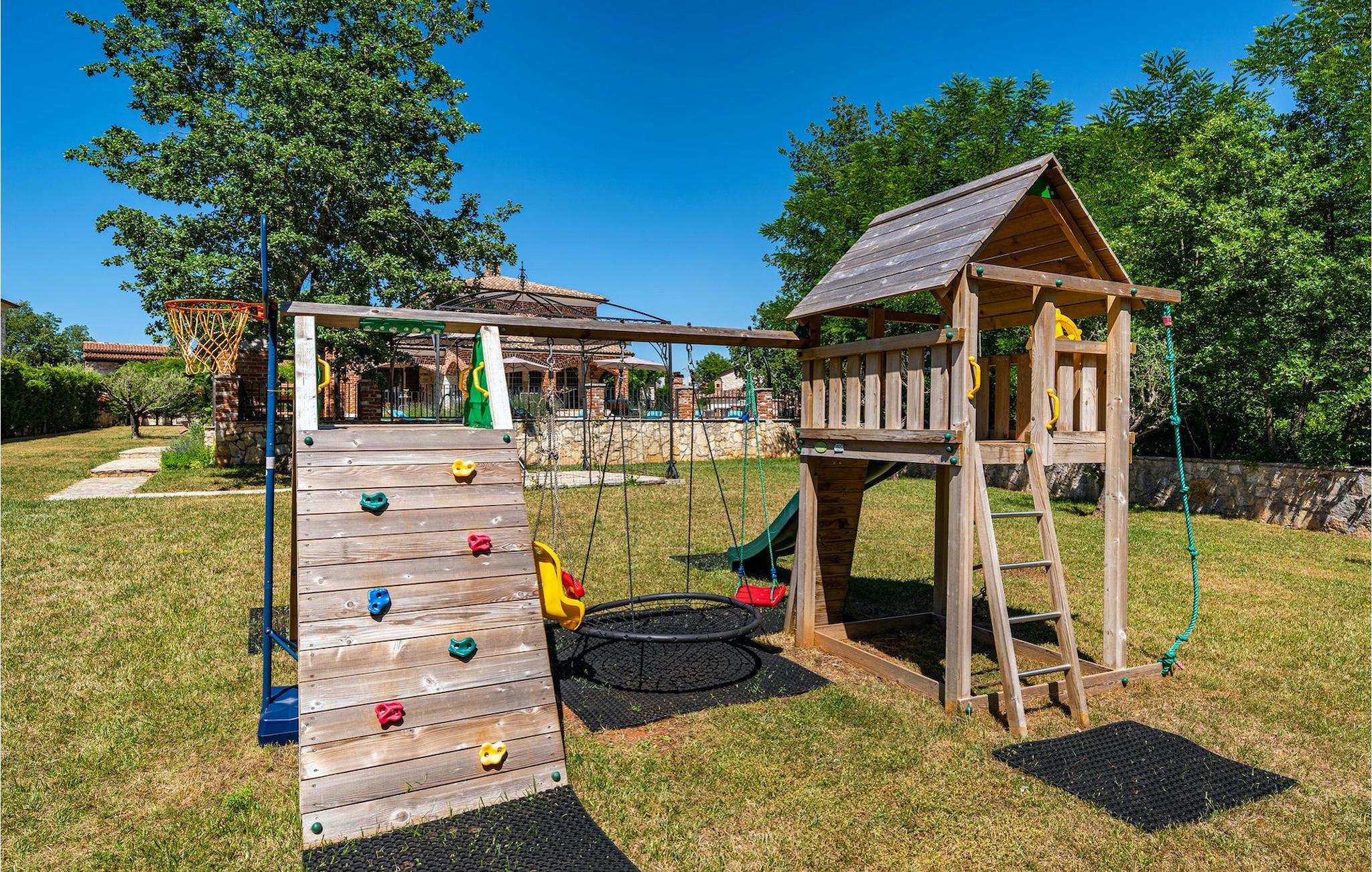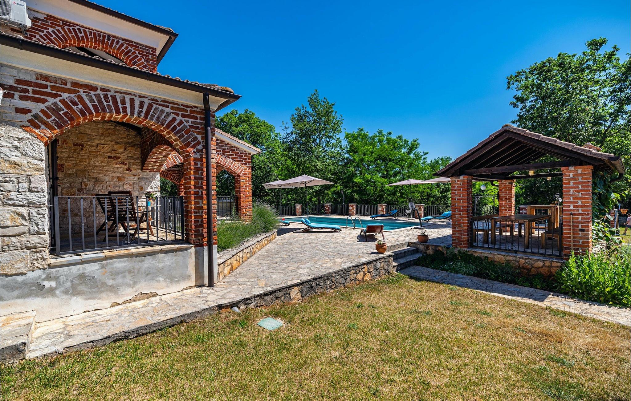 Du vil helt sikkert blive overrasket over det skønne store udendørs område med pool. På terrassen er der et par siddepladser, en overdækket spiseplads til 12 gæster samt en grillplads med kulgrill. Tag en svømmetur i poolen, læn dig tilbage i en af liggestolene og forkæl dig selv med et glas kold drik. Mens du slapper af og nyder din velfortjente ferie, kan dine børn spille en omgang bordtennis, spille volleyball eller prøve den veludstyrede legeplads. Villa Happy Holiday er et perfekt sted at tilbringe en afslappet, fornøjelig og selvfølgelig glad ferieVišnjan er en landsby i Istrien, som ligger 13 kilometer øst for Porec. Den maleriske by Višnjan er et astronomisk observatorium, hjemsted for flere langvarige internationale sommerprogrammer for unge inden for astronomi, arkæologi, havbiologi og andet. Višnjan er også kendt inden for olivendyrkning og vindyrkning og også et af de sidste feriesteder i Istrien for autokthon istrisk kvæg Boškarin.