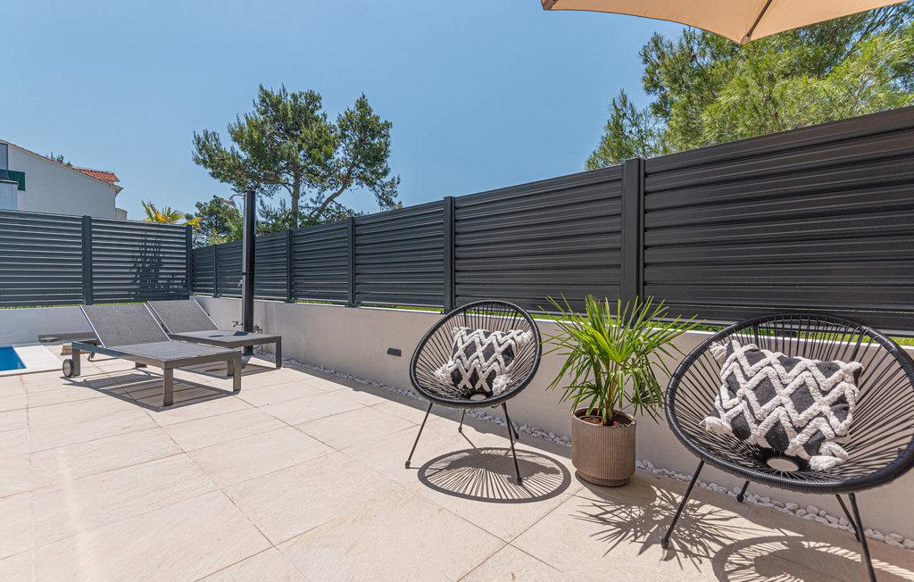 Følg solens position, når I vælger terrassen til jeres morgenkaffe. Senere inviterer komfortable liggestole til et langt solbad. Hvis I vil køle ned, er der en pool til rådighed. Men I kan også nyde den fantastiske udsigt på tagterrassen og afslutte aftenen her med familien.