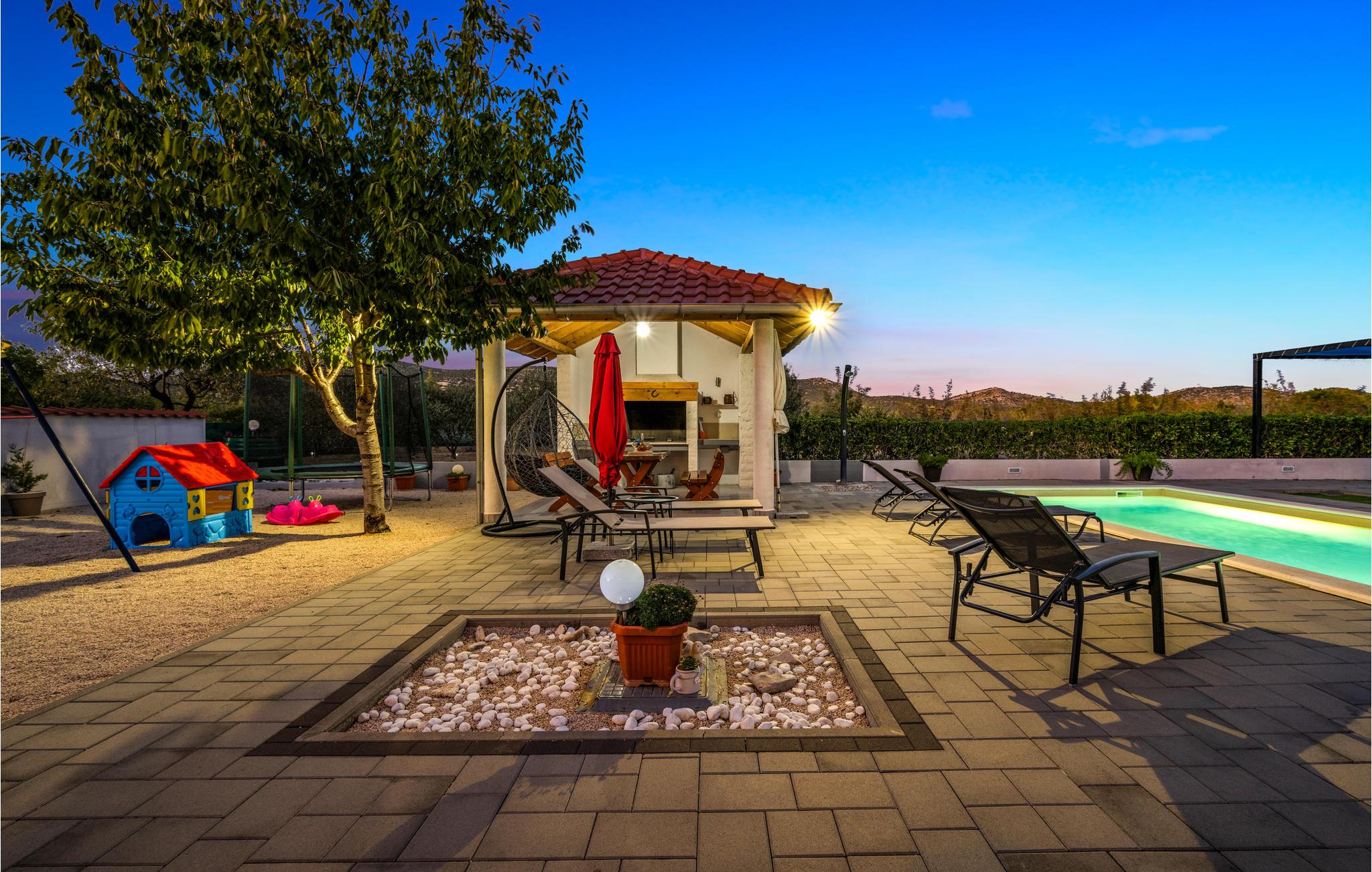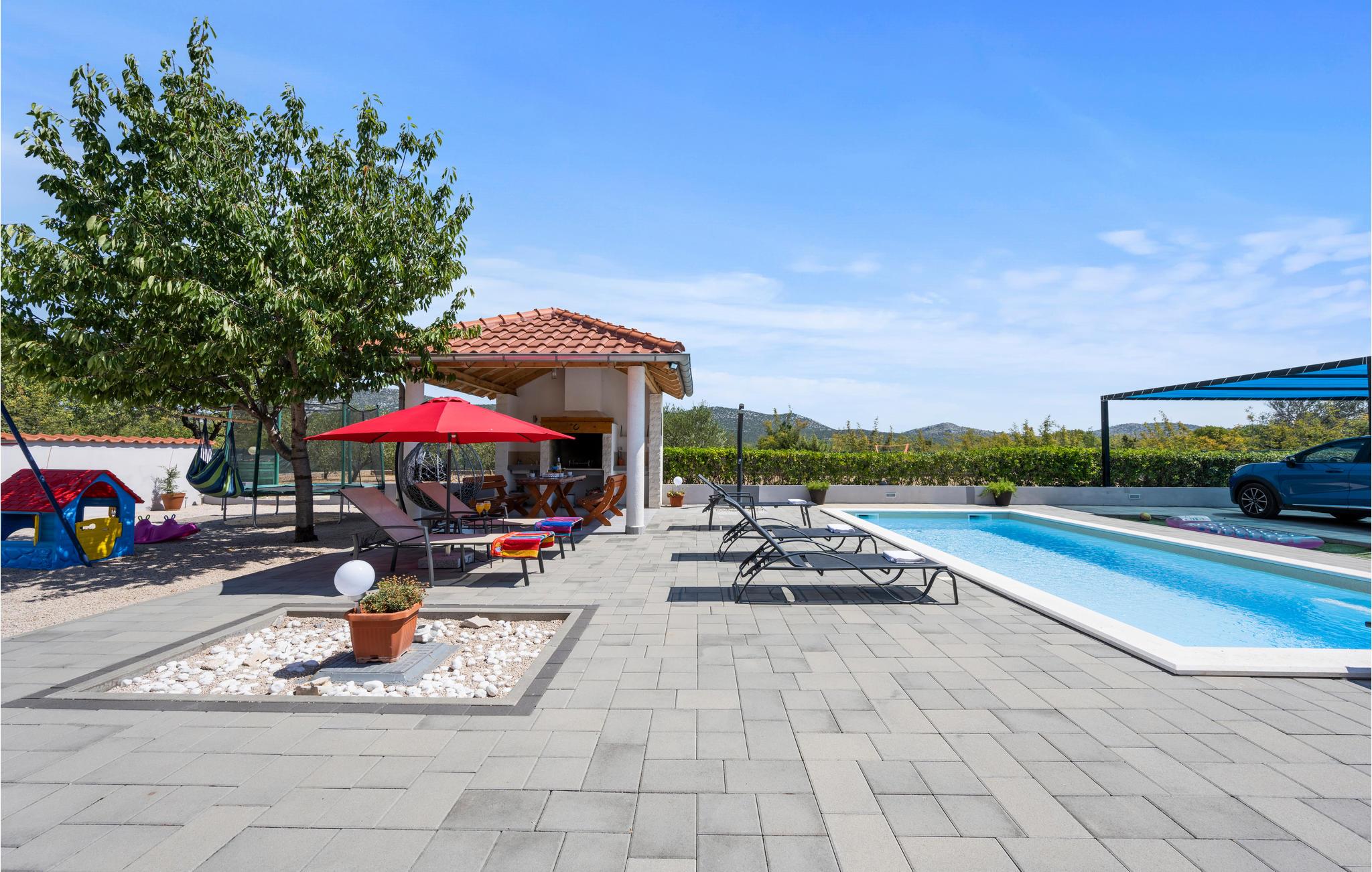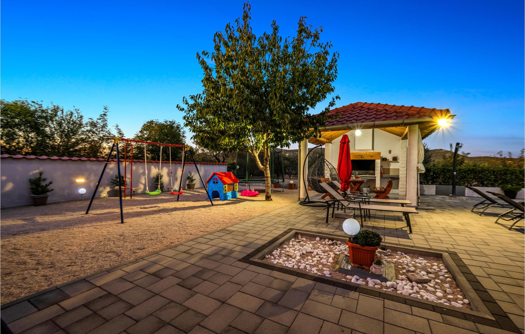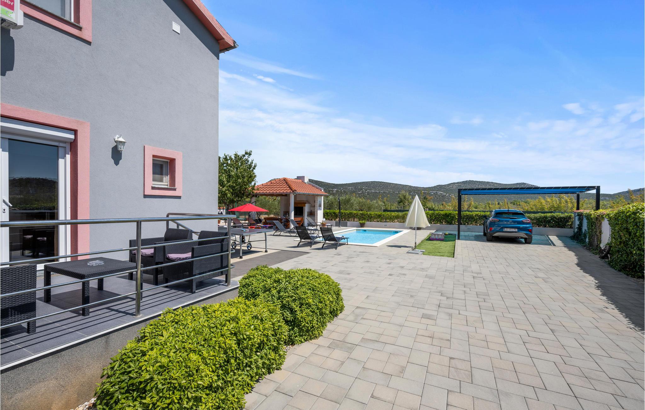 Dette indbydende feriehus Dubrava ligger tæt på byen Tisno. Huset er praktisk og funktionelt udstyret og delt op i tre lejligheder. Nyd jeres morgenmad på den store terrasse, og tag en afkølende dukkert i poolen på den indhegnede grund på varme sommerdage. Her har I også en grill. Under jeres ophold anbefaler vi jer en tur til byerne Tisno og Sibenik, de er kendt for mange seværdigheder og et rigt tilbud inden for gastronomi. For alle der holder af smuk natur, er det et must at besøge nationalparkerne Krka og Kornati. Et syn I sent vil glemme.