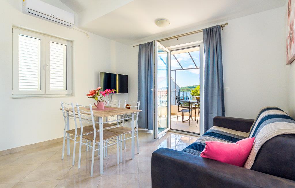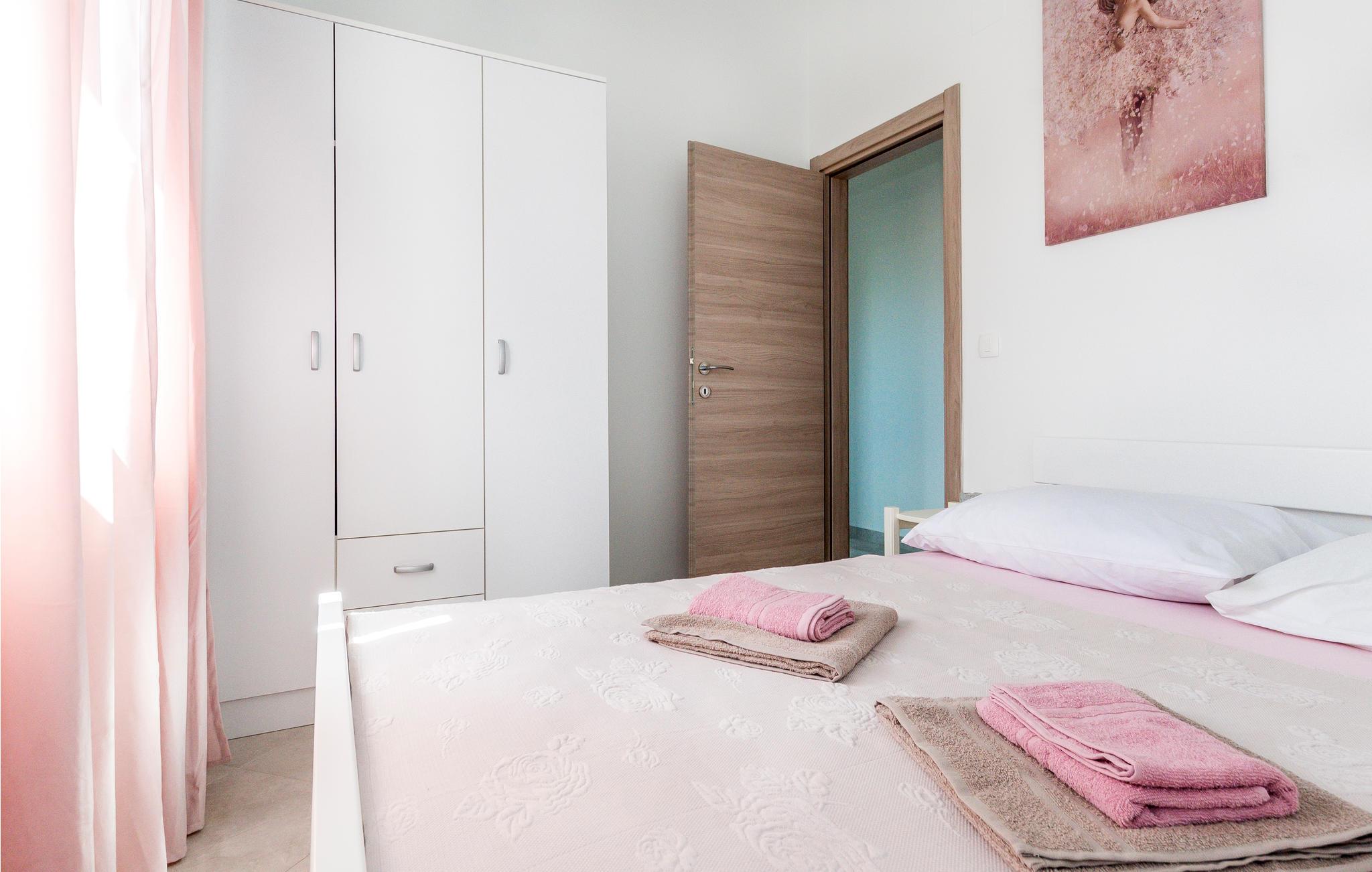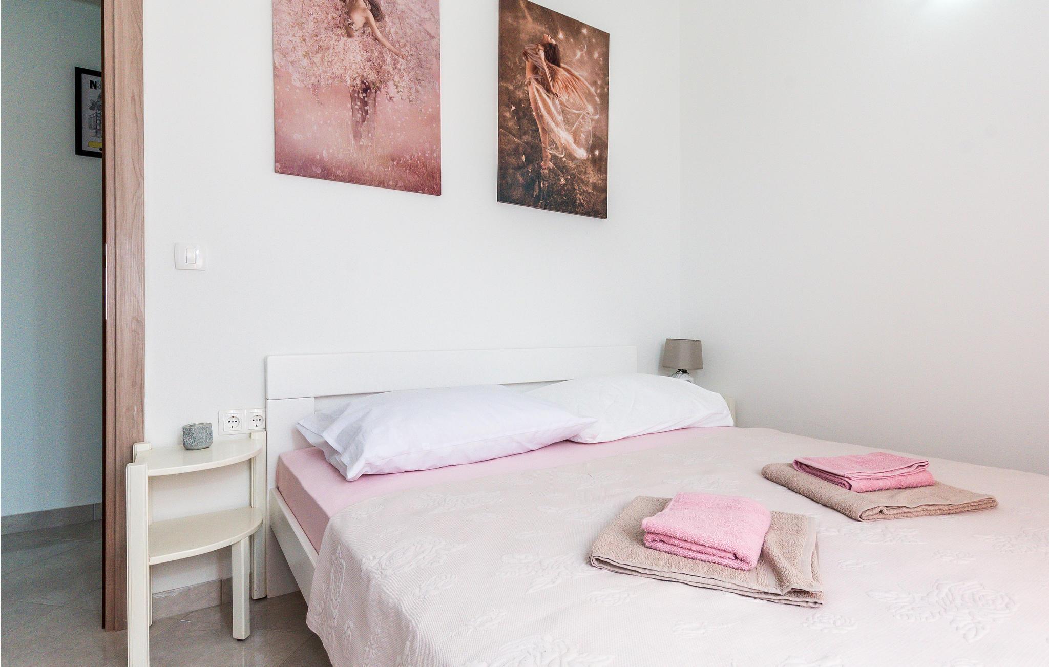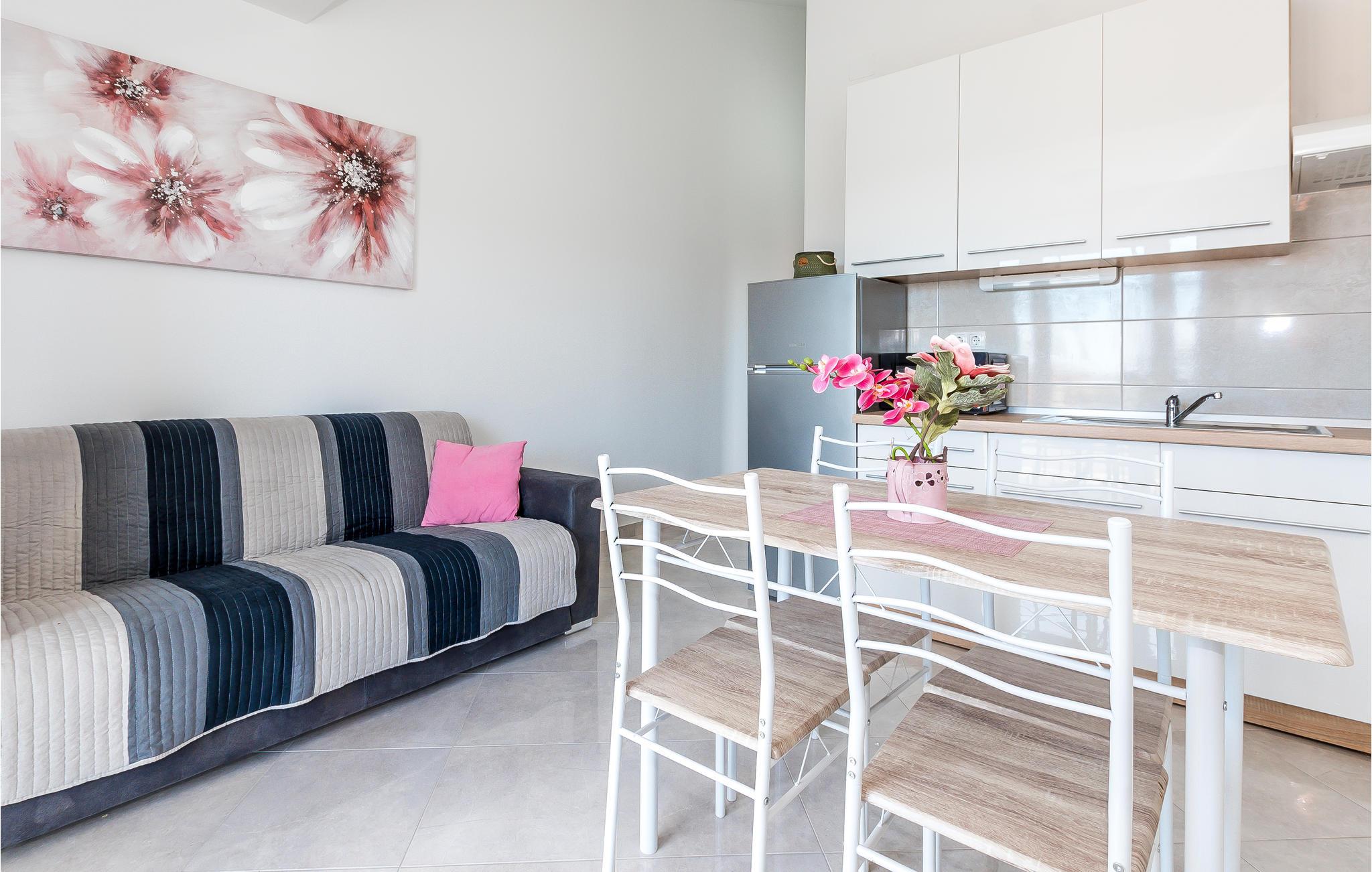 Denne smukke ferielejlighed ligger i den lille by Srima på anden sal. Den består af et køkken med stue og et soveværelse. I kan tilbringe afslappende øjeblikke på balkonen med en kop morgenkaffe og nyde den smukke udsigt.