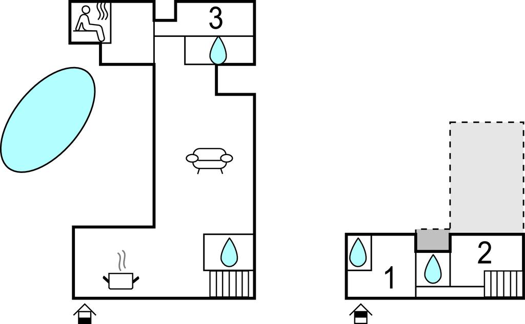 Komb. spisestue/køkken - 2 Sovepladser. (Sofa, madras eller lignende).