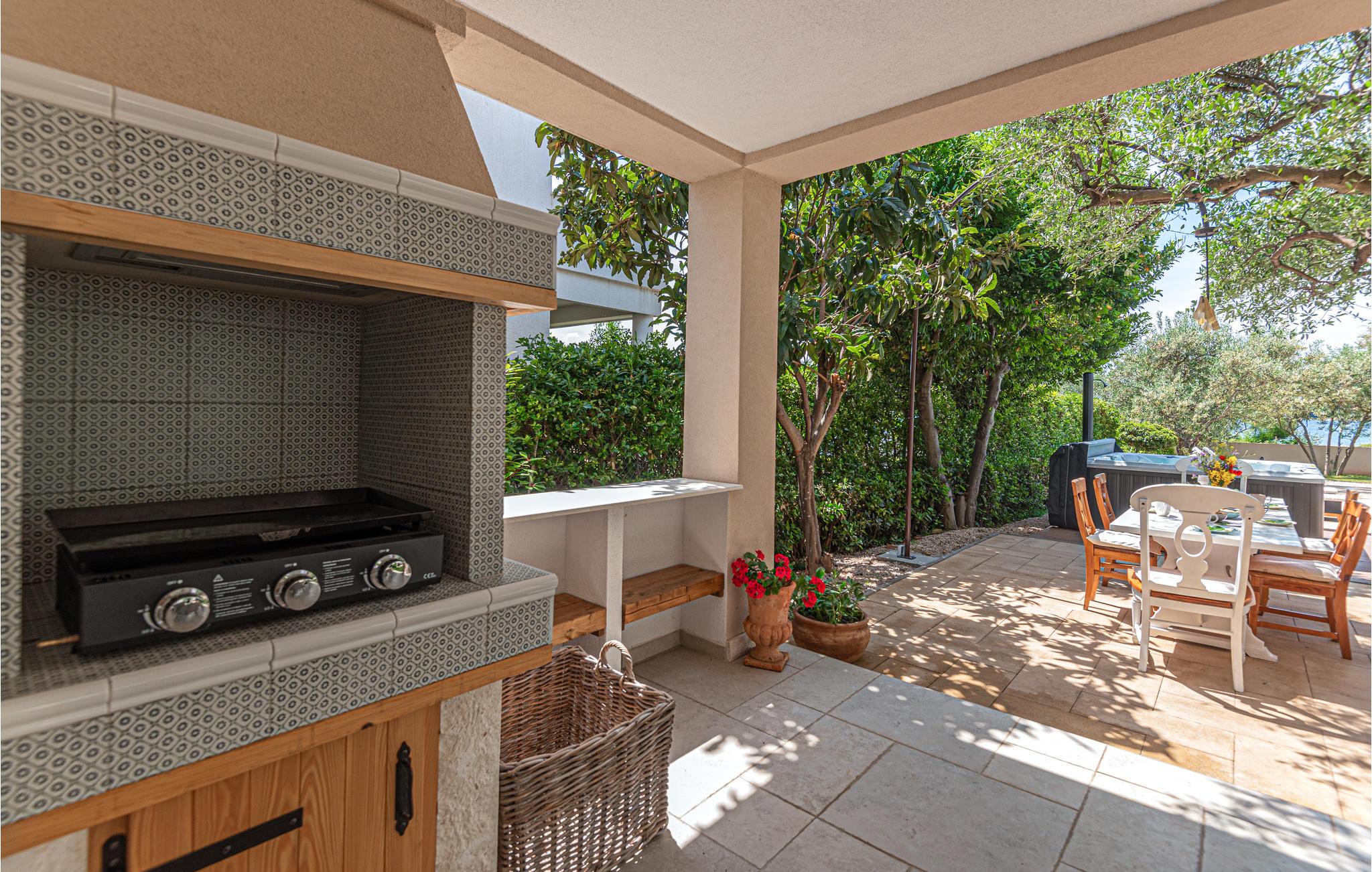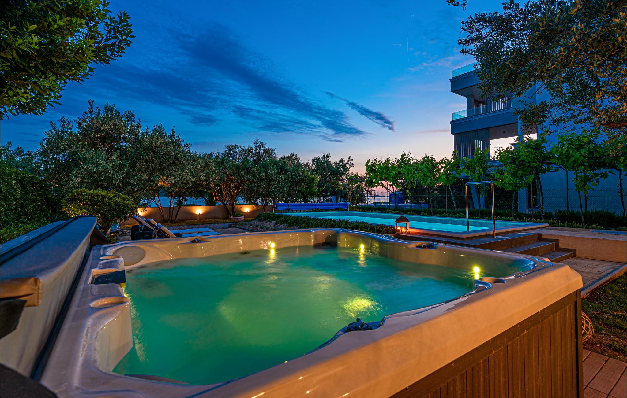 En smuk have fuld af forskellige middelhavsplanter omgiver feriehuset. Glæd jer til afslappende stunder ved poolen eller på de smukke terrasser med udsigt til havet.