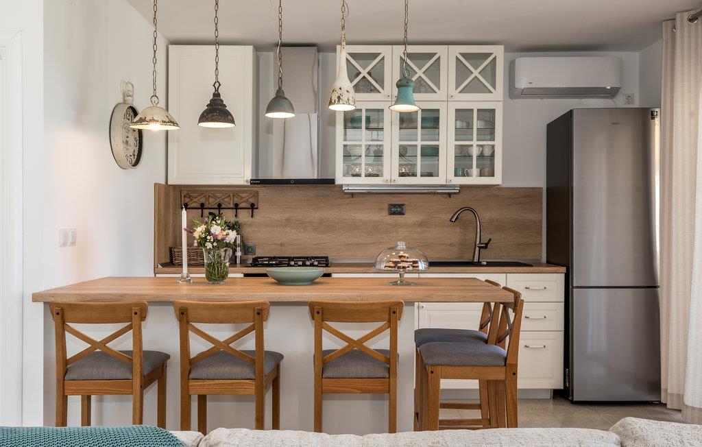 Huset fordeler sig over to etager og råder over to fuldt funktionelle boligenheder, der er forbundet via en intern trappe. Her kan I nyde en vidunderlig panoramaudsigt og et interiør med charmerende detaljer i retro og antik stil.