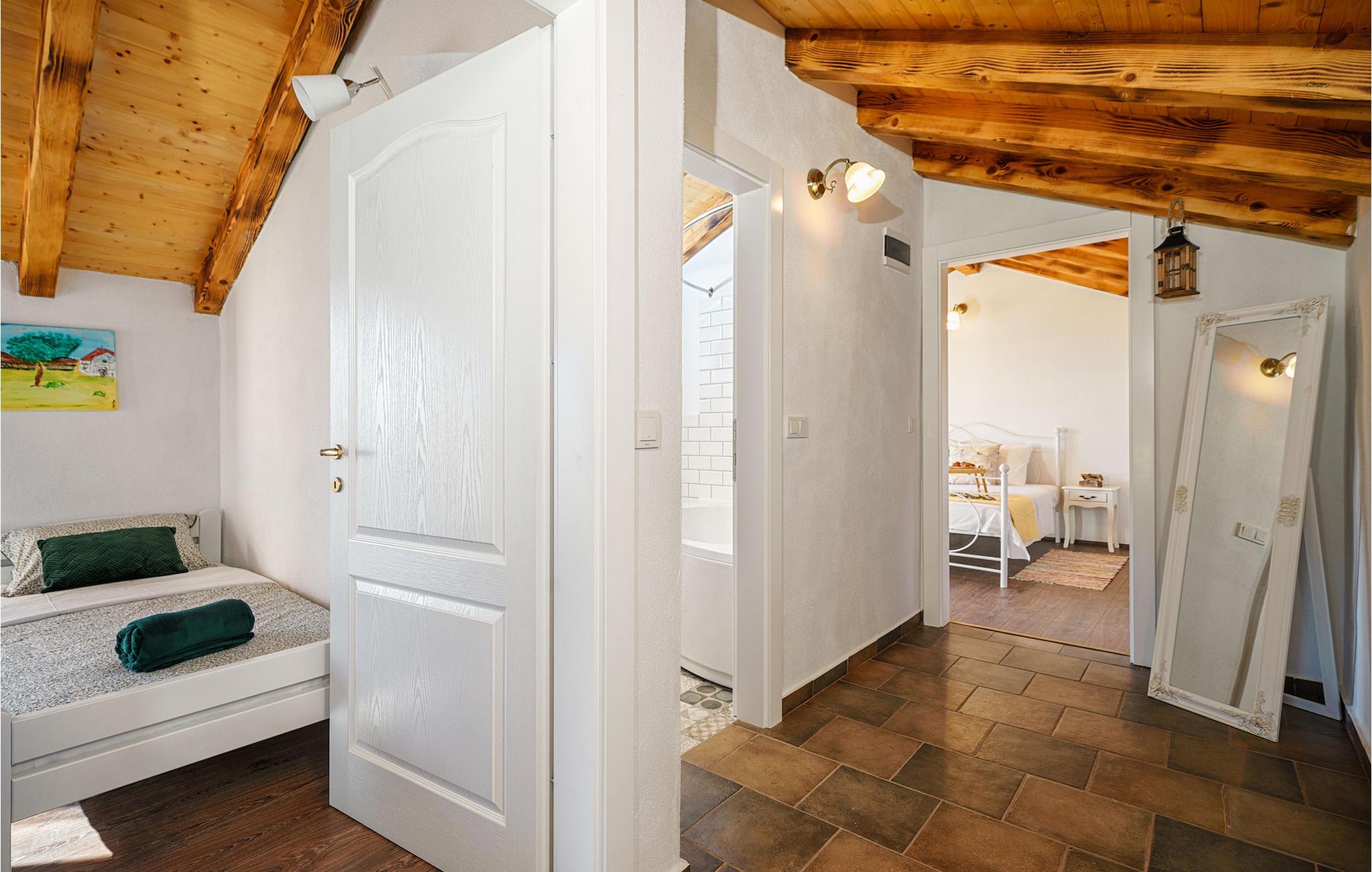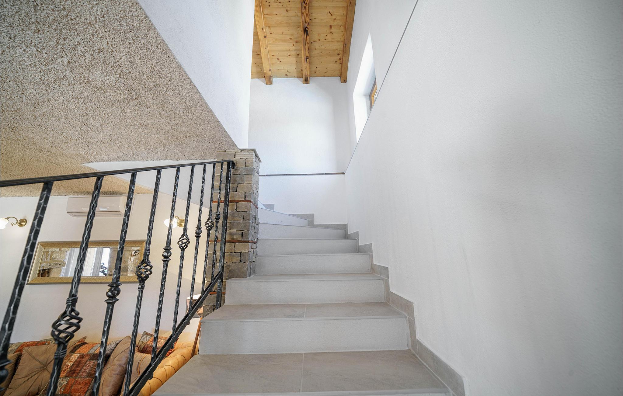 Villaens indre vil charme dig med sine vidunderlige detaljer. I stueetagen er der stue, spisestue og køkken indrettet i traditionel stil, der emmer af en dalmatisk atmosfære. Ovenpå finder du to komfortable soveværelser og et rummeligt badeværelse.