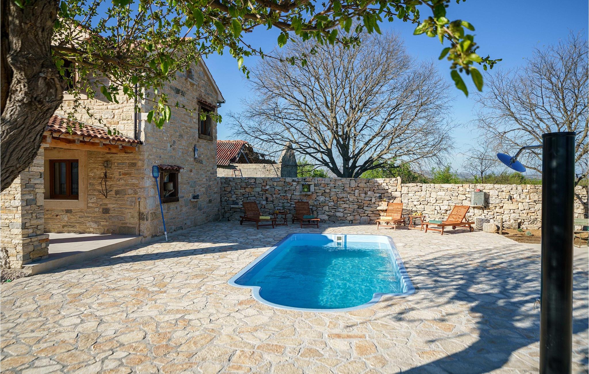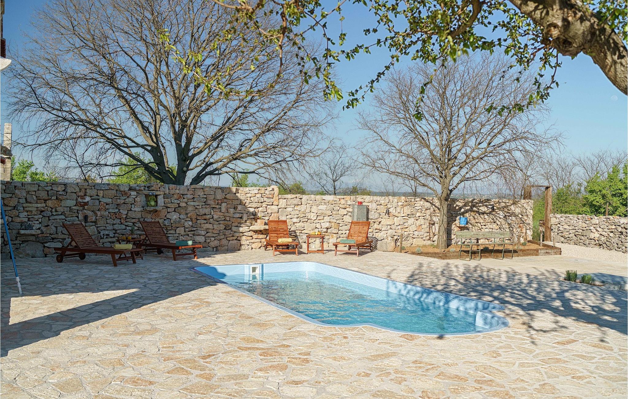Den charmerende Villa Marilu Stankovci ligger i en lille dalmatisk landsby og er et perfekt valg til en afslappende familieferie væk fra byens stress og jag. Foran villaen finder du en privat pool, hvor du helt sikkert vil tilbringe det meste af din ferie. På udendørsområdet er der desuden en overdækket terrasse med spisebord til din rådighed, hvor du kan tilbringe hyggelige sommeraftener, mens du nyder en romantisk atmosfære med familie og venner. Hvis du vil have det sjovt, er der en boccia-bane, hvor du kan prøve at spille det interessante spil boccia, som er meget populært i dette område. For de yngste familiemedlemmer er der gynger og en trampolin til rådighed.