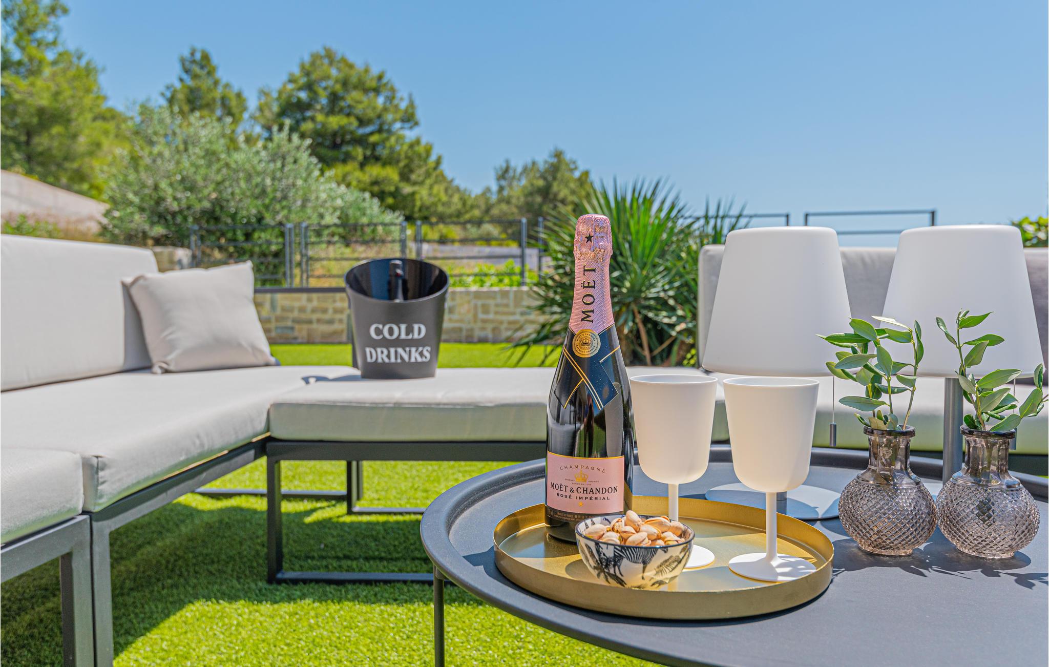 I kan også tilbringe dejlige timer udendørs. Nyd solen og et par kolde drinks på terrasserne, I kan til enhver tid snuppe en frisk dukkert i den private pool og derefter slappe af i en liggestol. Afslut en skøn feriedag med lækre retter fra grillen.