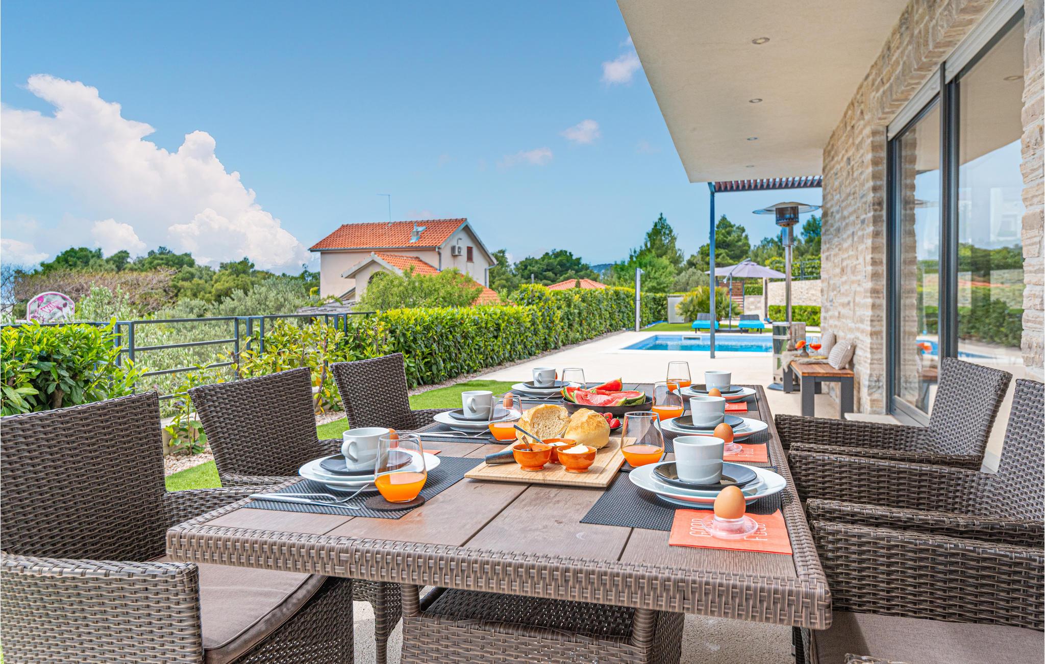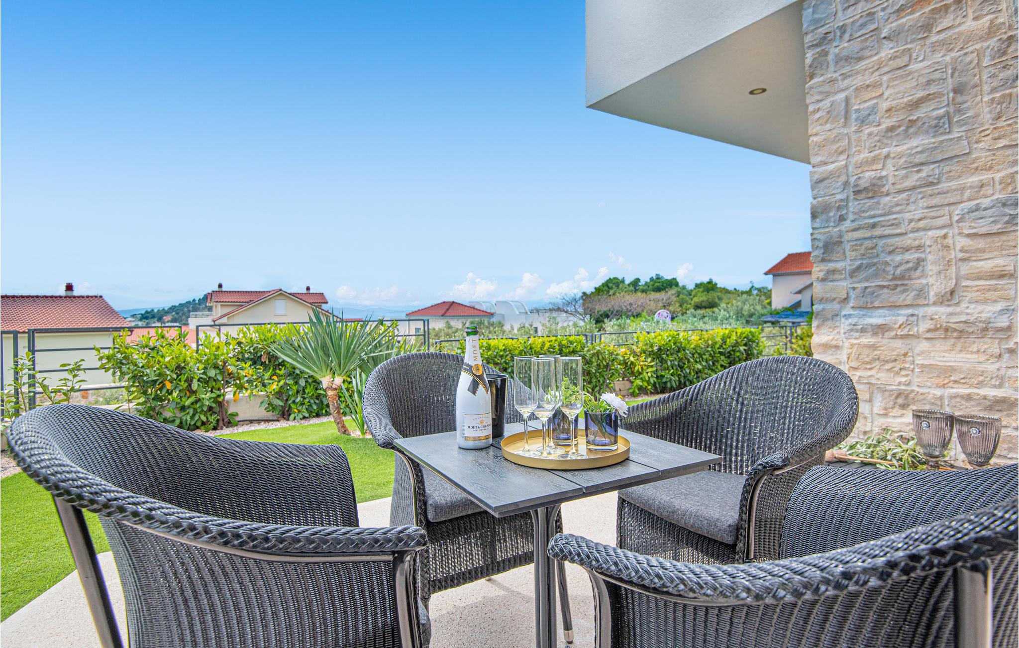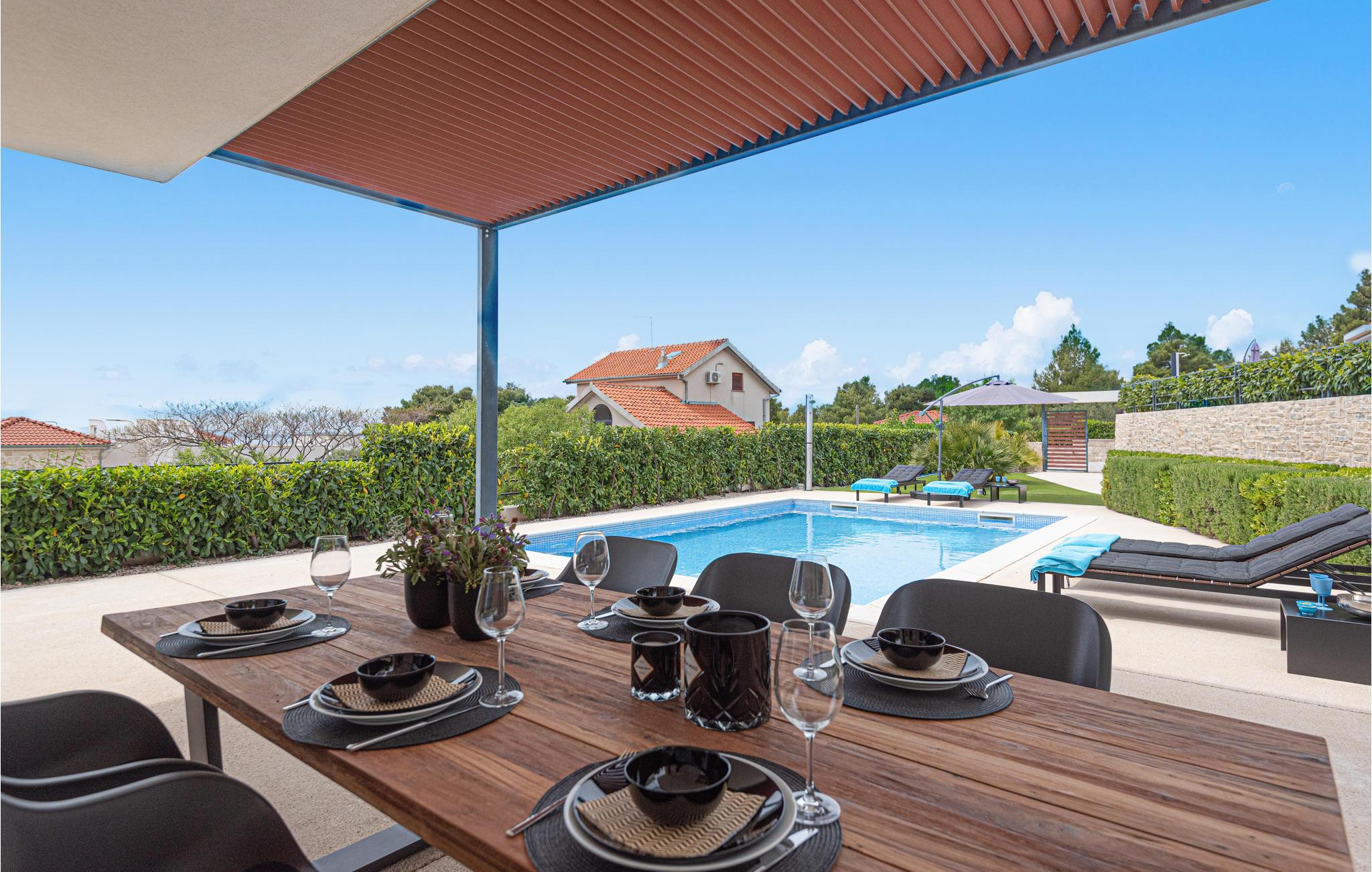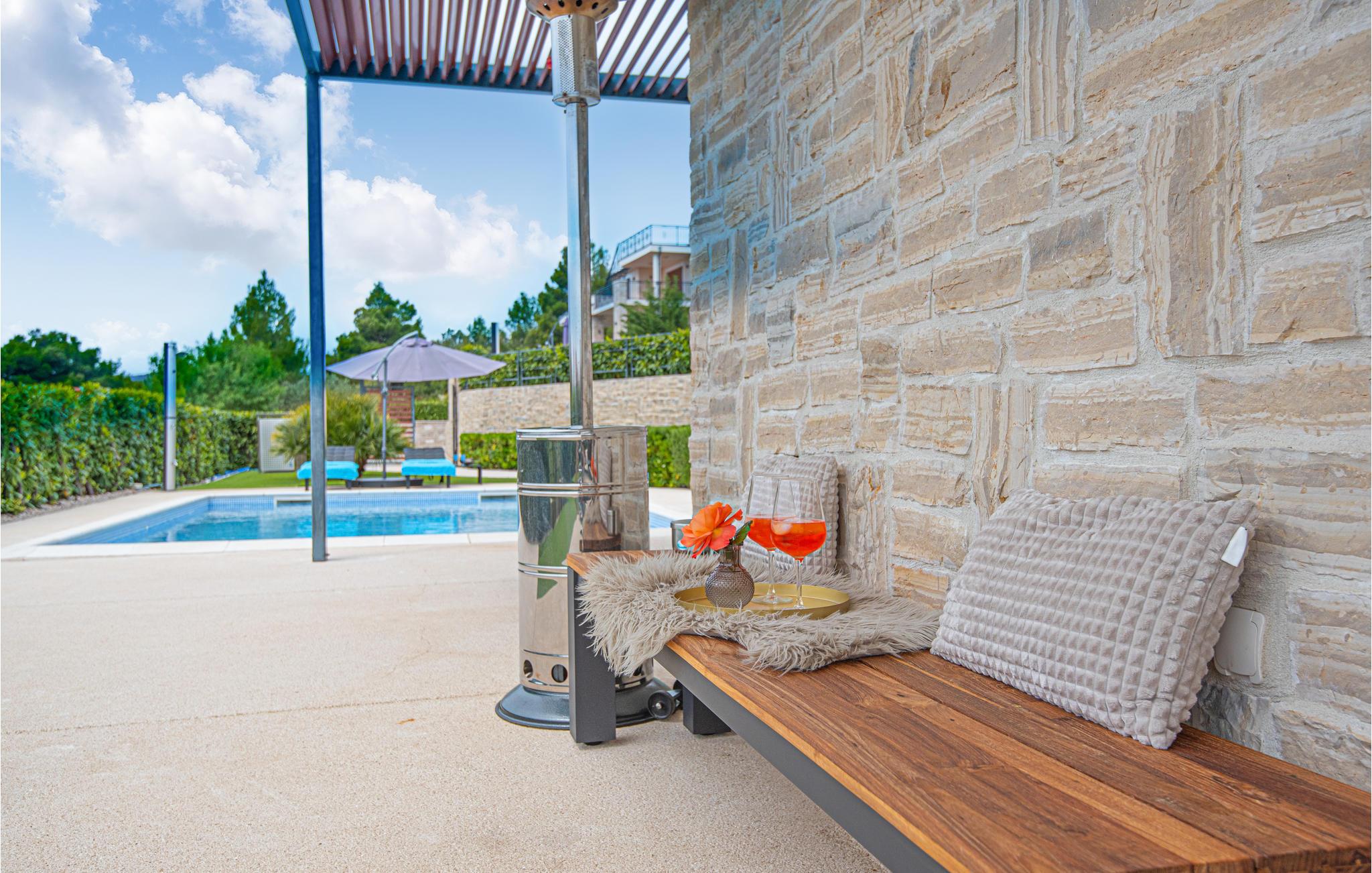 I kan også tilbringe dejlige timer udendørs. Nyd solen og et par kolde drinks på terrasserne, I kan til enhver tid snuppe en frisk dukkert i den private pool og derefter slappe af i en liggestol. Afslut en skøn feriedag med lækre retter fra grillen eller slap af i det udendørs spabad med en fantastisk udsigt.