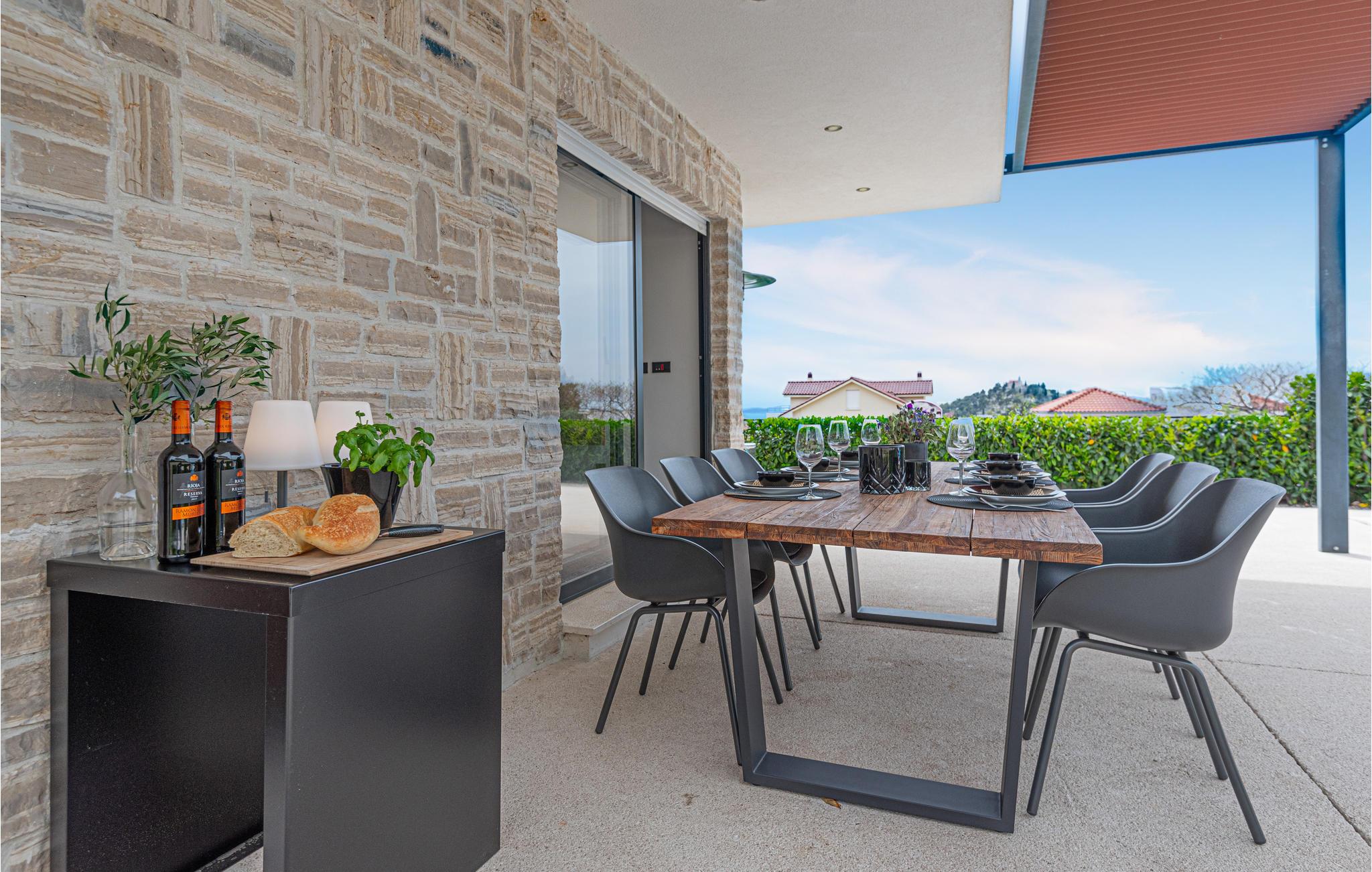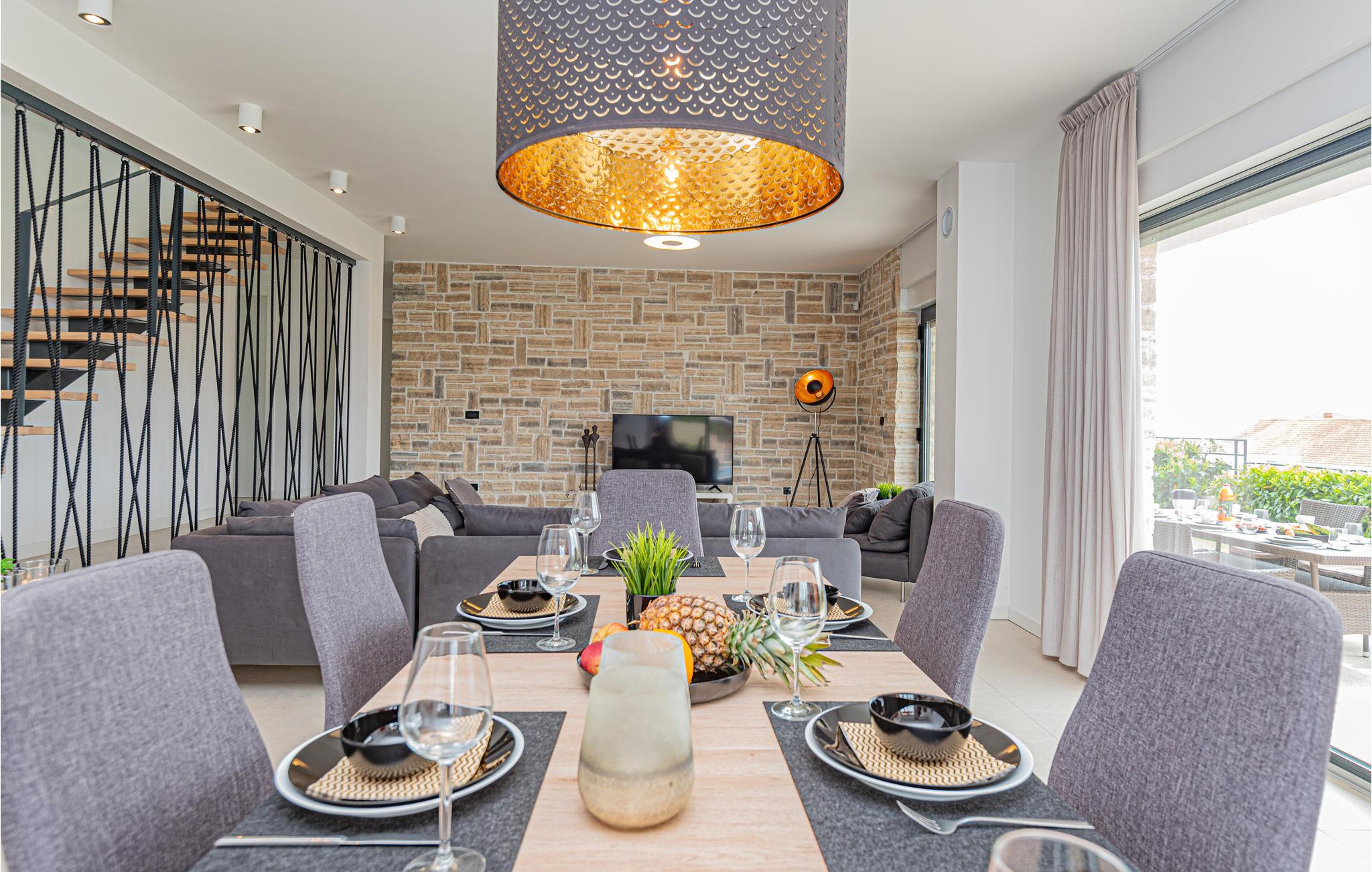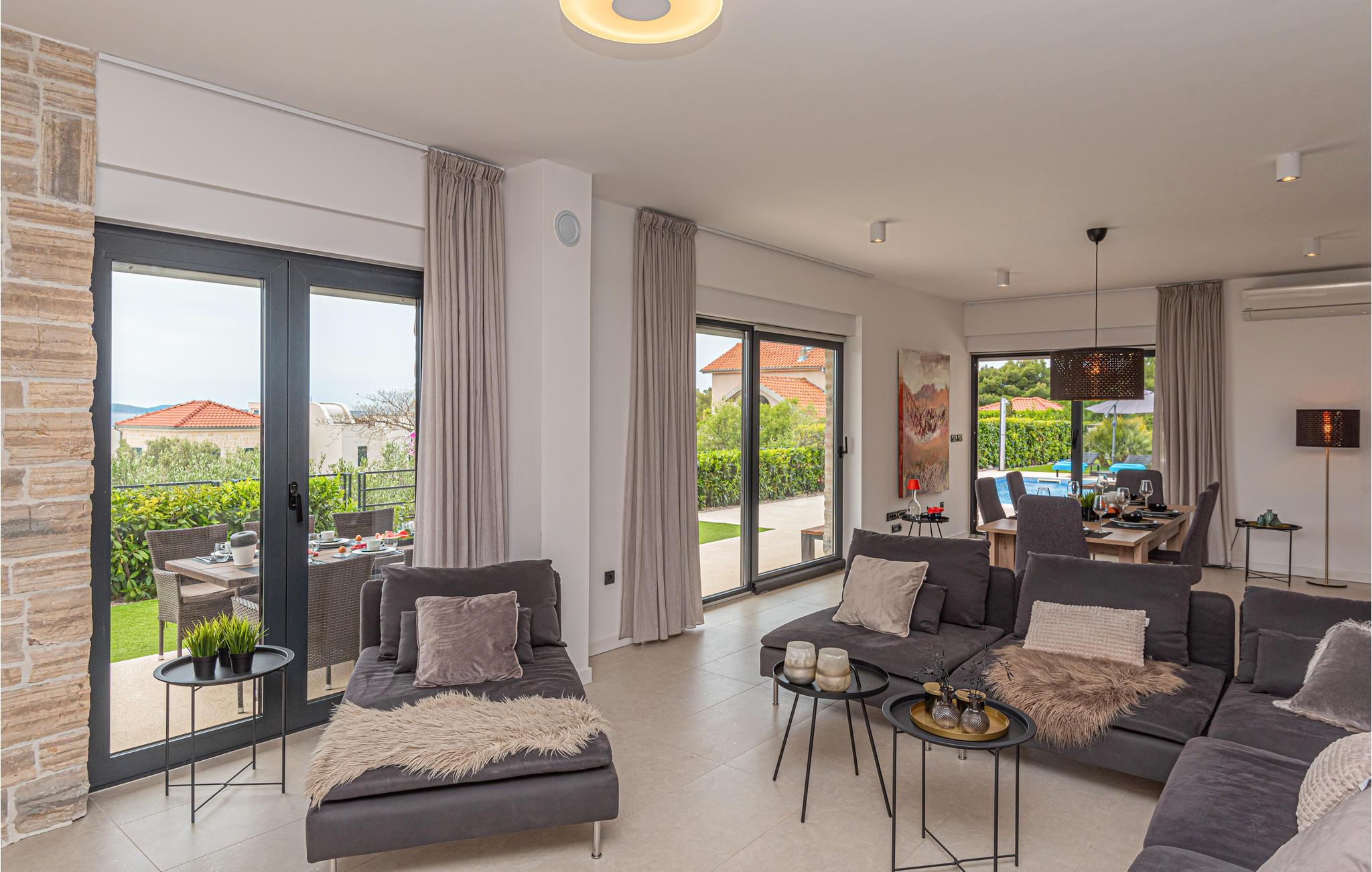 Med moderne charme inviterer dette smukke hus til et afslappende ophold ved havet. Du vil straks føle dig hjemme i de lyse, moderne og stilfuldt indrettede værelser. Gulv til loft-vinduer giver dig mulighed for at få mest muligt ud af den fantastiske udsigt. Slap af om aftenen i den rummelige sofa i stuen, spis sammen ved det lange spisebord og nyd tiden sammen.