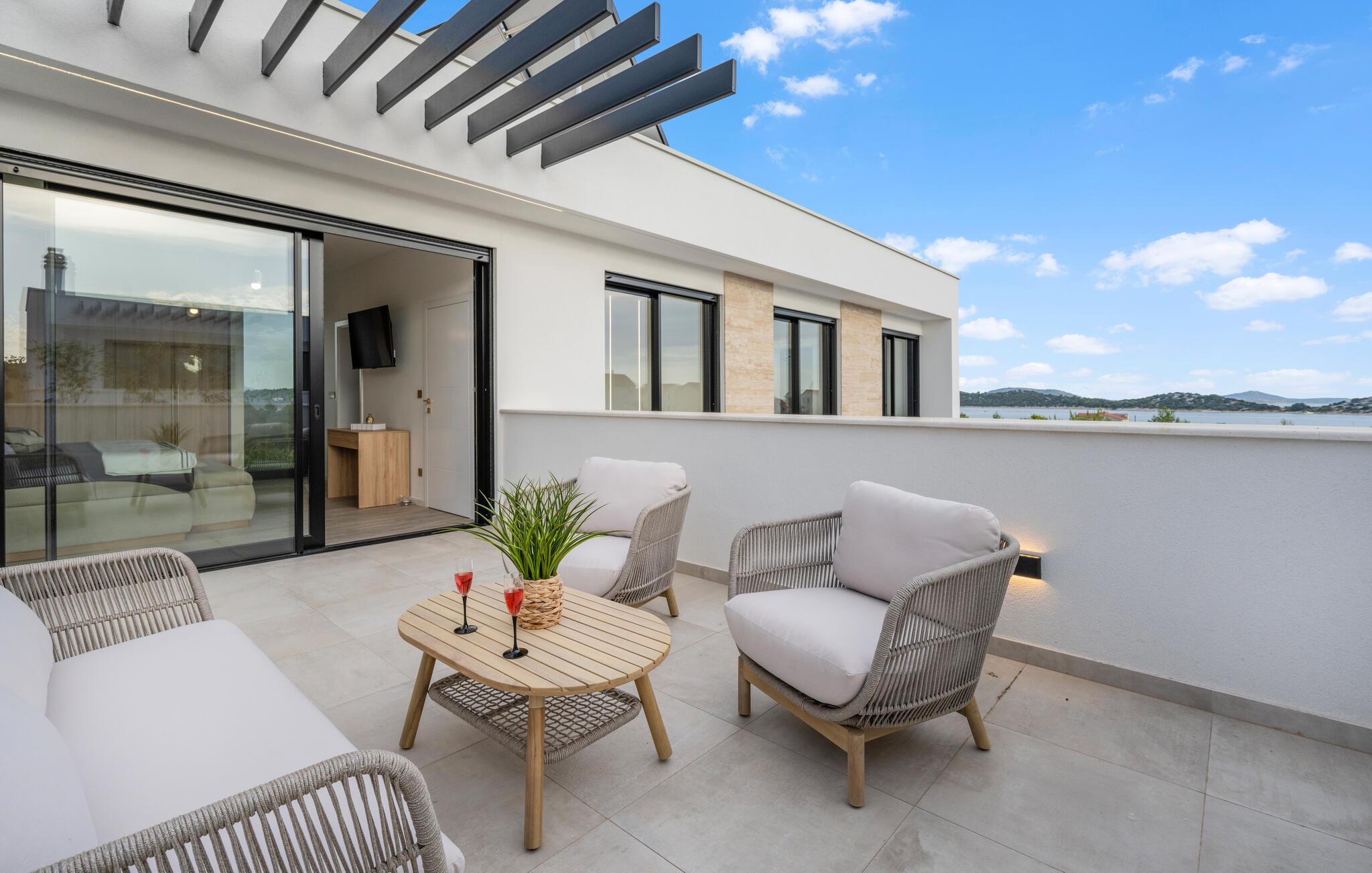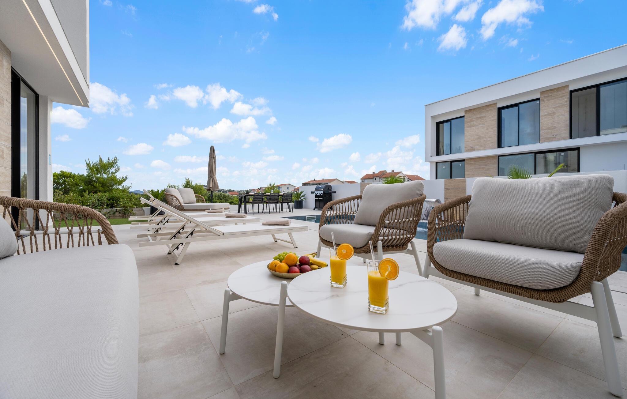 Glæd jer til en vaskeægte luksusferie i denne moderne villa, der har en vidunderlig beliggenhed i Tribunj.