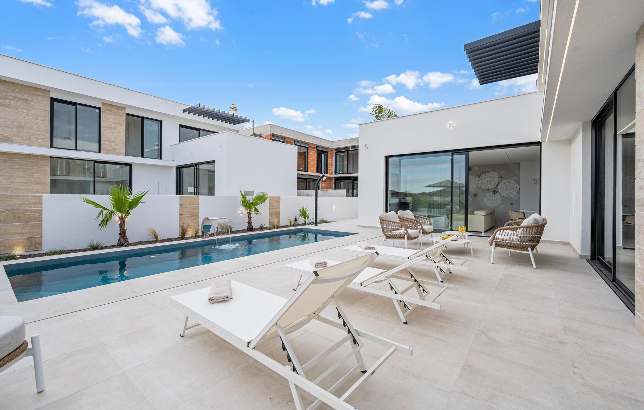 Hvis I er på udkig efter en endog yderst komfortabel base for årets familieferie, og vil I gerne have plads til den større flok uden at gå på kompromis med privatlivets fred, er I kommet til det helt rette sted. Denne lækre villa er fremragende indrettet med god stil og moderne bekvemmeligheder over hele linjen. Hvert af de komfortable soveværelser har badeværelse en suite, hvilket giver ekstra komfort til alle gæster. Interiøret fremtræder lyst og luftigt og får skuldrene til at sænke sig med det samme, I kommer. Tilbered familiens livretter i det topmoderne køkken og nyd dem ved spisebordet med udsigt til hustagene, mens I lægger planer for de kommende dage.