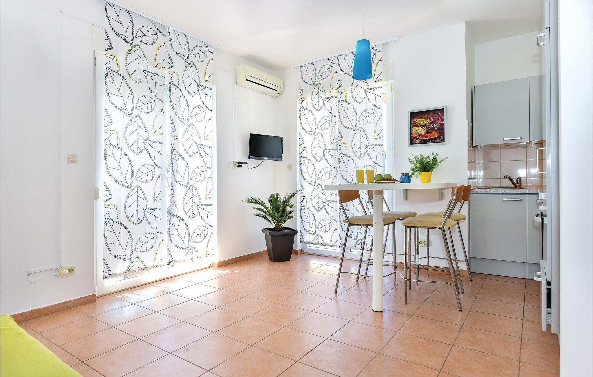 Disse smagfuldt indrettede ferielejligheder ligger i Vodice, i en skøn badeby i nærheden af Šibenik. Den nærmest beliggende og helt fantastiske strand bliver kaldt „Plava plaža“ hvor I kan nyde at holde pauser fra den hede sol under figentræernes behagelige skygge og hvor det lave vand er særligt velegnet til mindre børn. De mange forskellige aktivitetsmuligheder ved ’Den blå strand’ gør den utroligt populær hos feriegæster uanset alder. Vil I have mere rolige omgivelser, så gå en tur til den nærliggende lille fiskerby Tribunj og nyd den afslappede stemning.