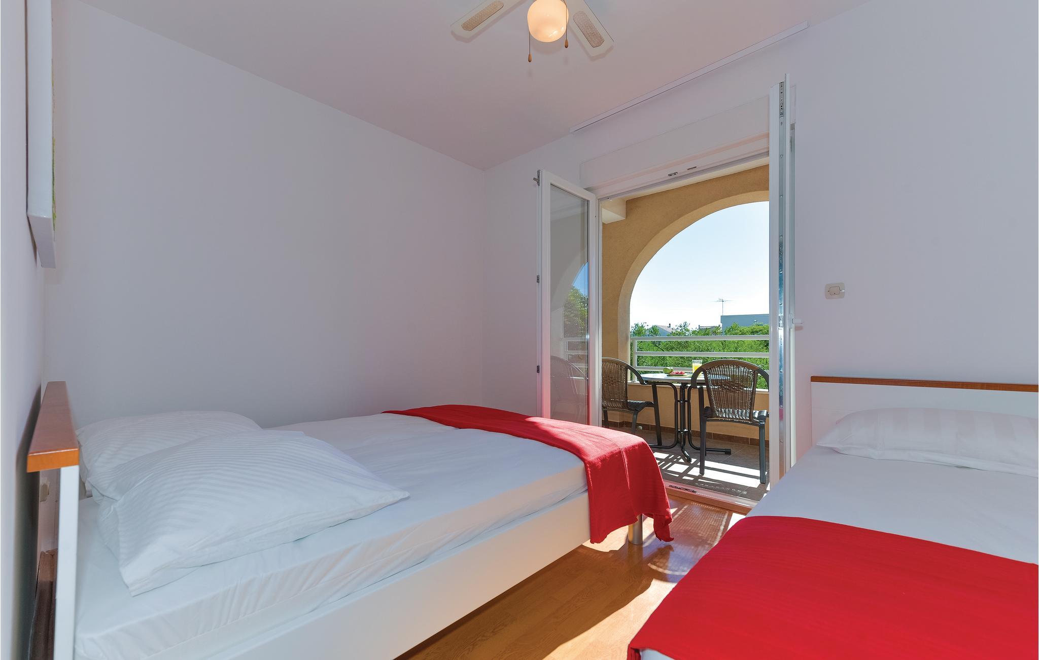 Disse smagfuldt indrettede ferielejligheder ligger i Vodice, i en skøn badeby i nærheden af Šibenik. Den nærmest beliggende og helt fantastiske strand bliver kaldt „Plava plaža“ hvor I kan nyde at holde pauser fra den hede sol under figentræernes behagelige skygge og hvor det lave vand er særligt velegnet til mindre børn. De mange forskellige aktivitetsmuligheder ved ’Den blå strand’ gør den utroligt populær hos feriegæster uanset alder. Vil I have mere rolige omgivelser, så gå en tur til den nærliggende lille fiskerby Tribunj og nyd den afslappede stemning.