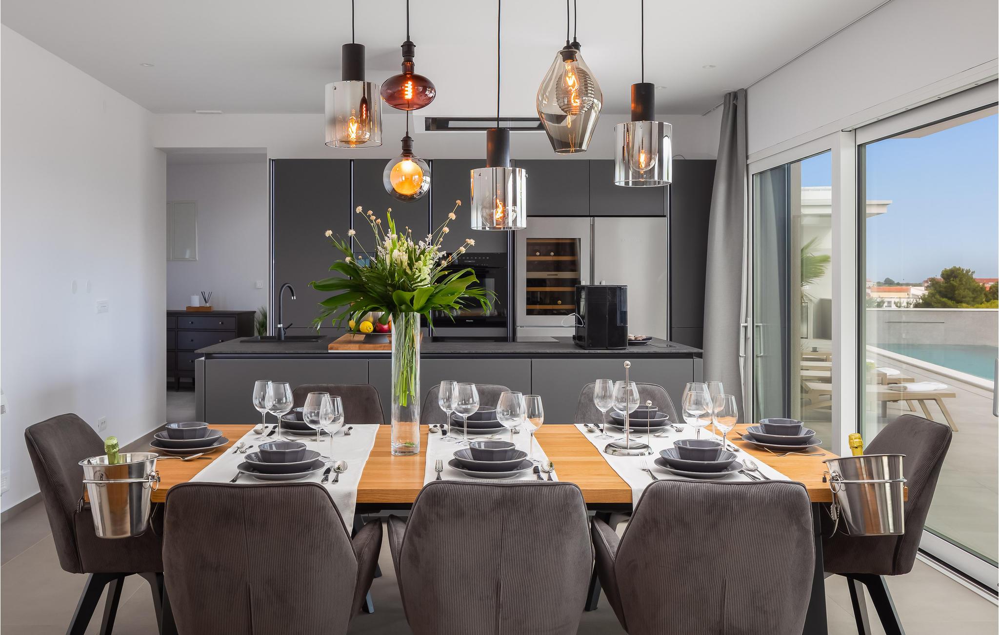 Huset har en skøn beliggenhed og byder på masser af plads til hele familien. Det er det rigtige valg til en afslappende ferie, som alle vil huske med glæde i lang tid, hvis I værdsætter komfort. De lyse værelser og den smagfulde indretning med moderne møbler gør huset til et sted for afslapning. Vinduer fra gulv til loft giver i mange rum en vidunderlig udsigt til omgivelserne. Find jer godt til rette i den rummelige sofa, om aftenen kan I se film sammen eller bare chatte komfortabelt.