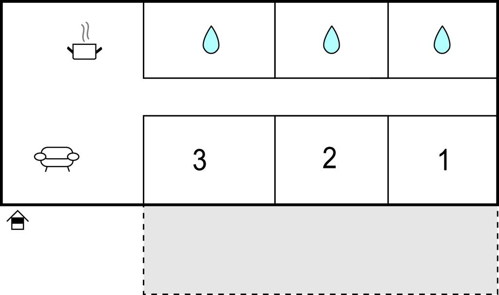 Opholdsstue/køkken - 1 Soveplads. (Sofa, madras eller lignende).