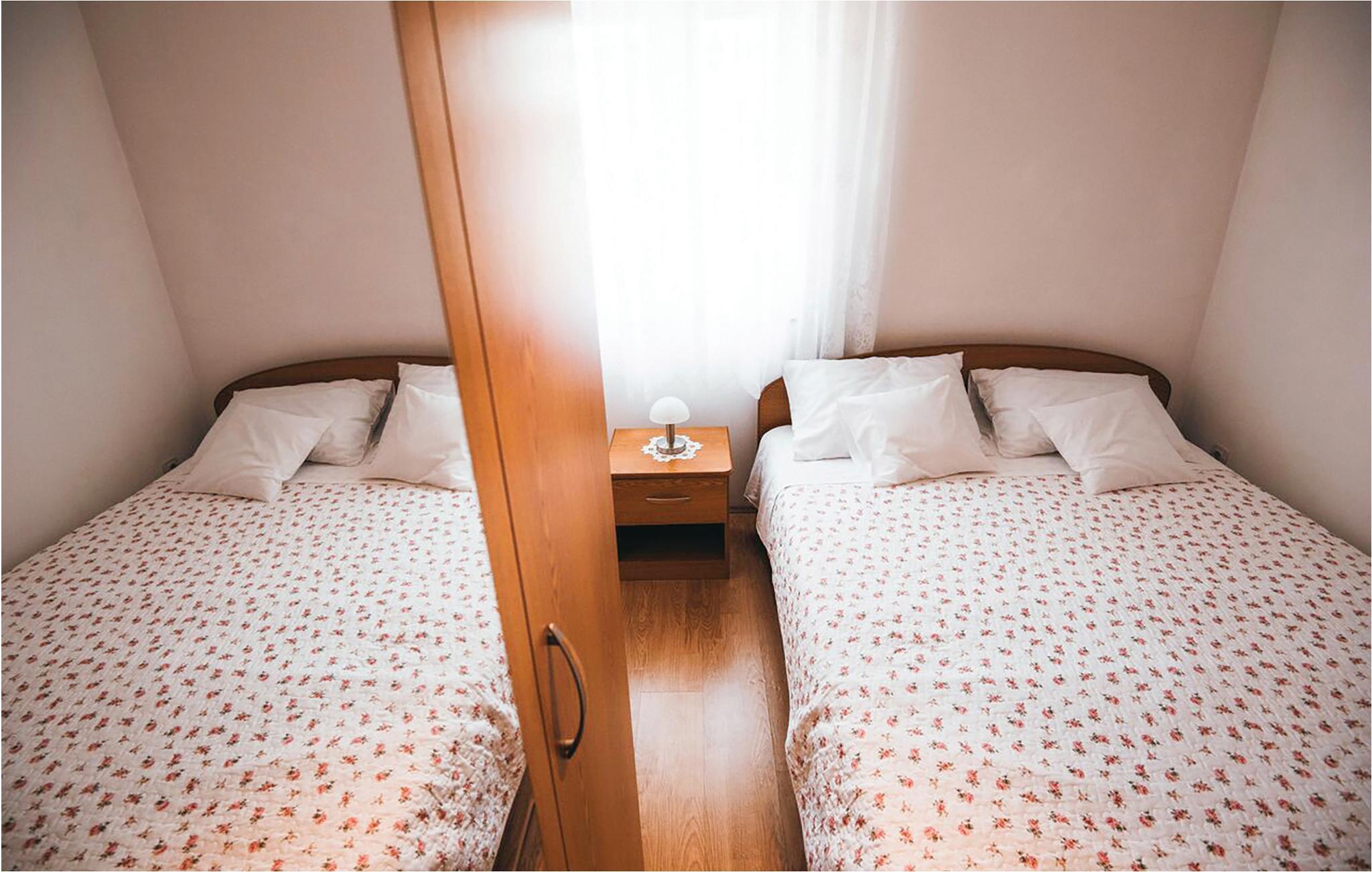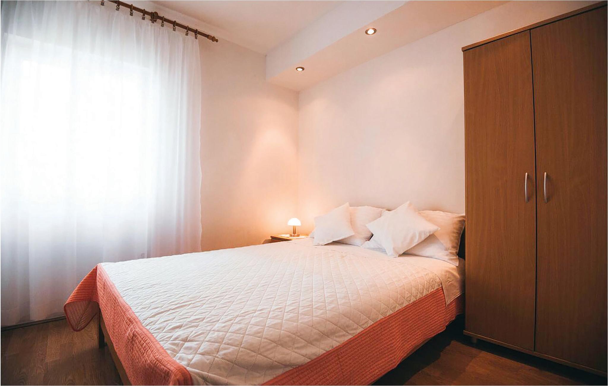 Disse to store ferielejligheder ligger i en rolig del af Vodice. Lejlighederne er begge velegnet til større familier. Hver ferielejlighed består af to boligenheder. I er i byens interessante centrum på ca. 15 minutter til fods, og her er der mange restauranter og en lille marina. Eller tag på en længere udflugt med cyklerne. Denne region har et rigt gastronomisk udbud, mange sand- og kiselstrande og gode muligheder for underholdning. Tag på udflugter til nationalparkerne i nærheden, fx øgruppen Kornaterne eller vandfaldene ved Krka.