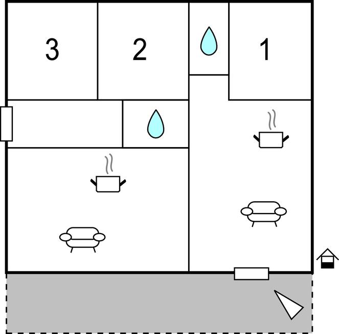 Opholdsstue/køkken - 2 Sovepladser. (Sofa, madras eller lignende).