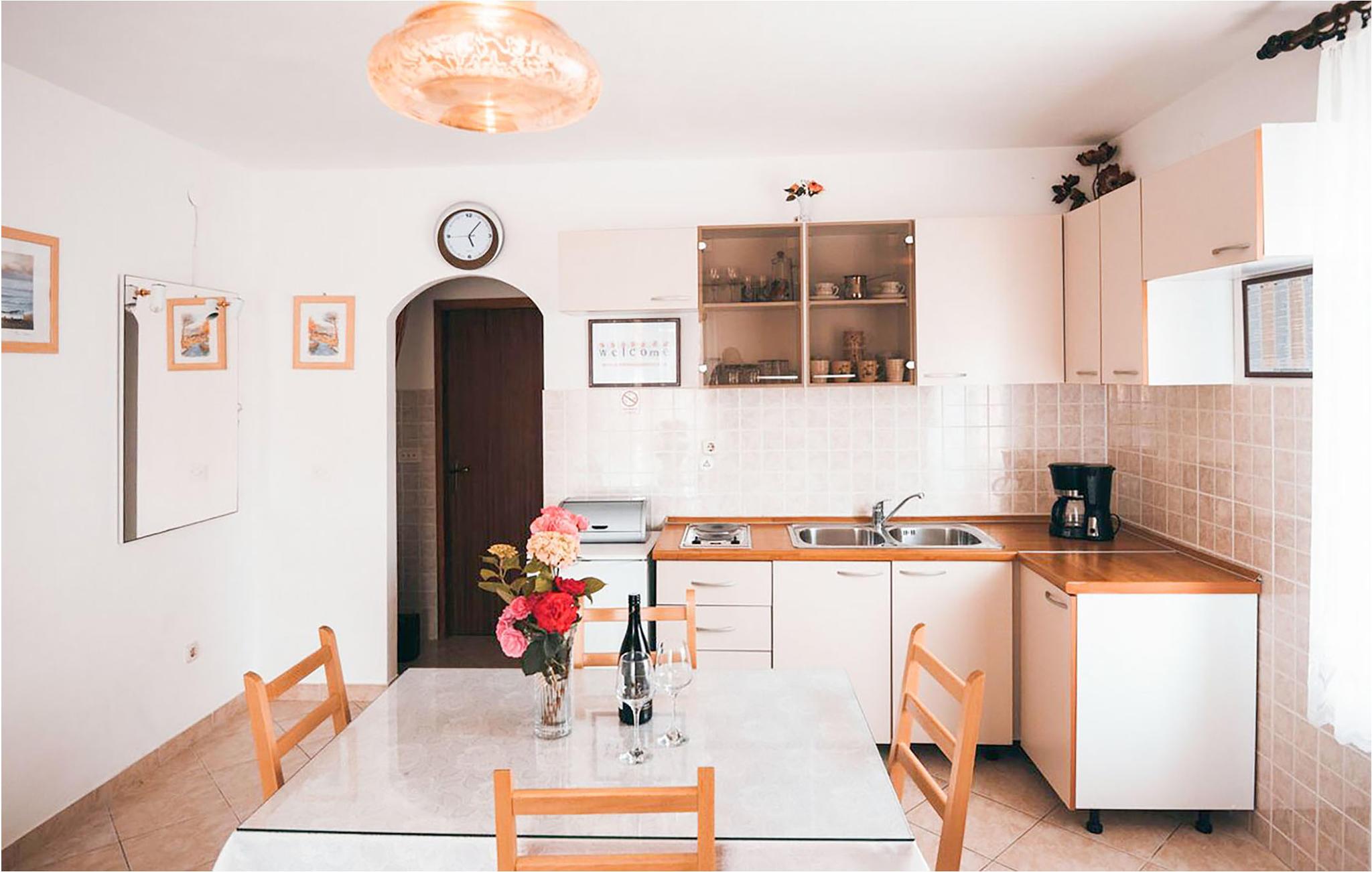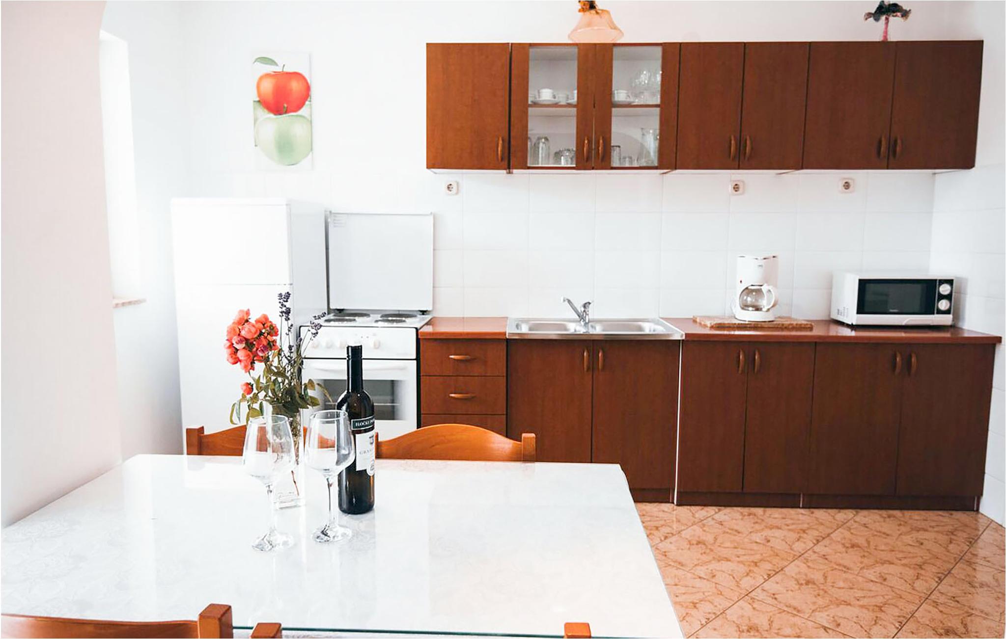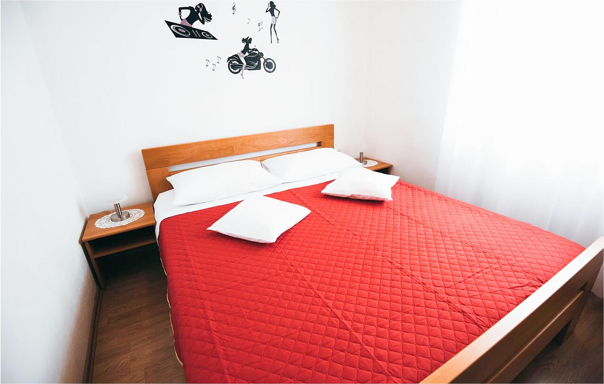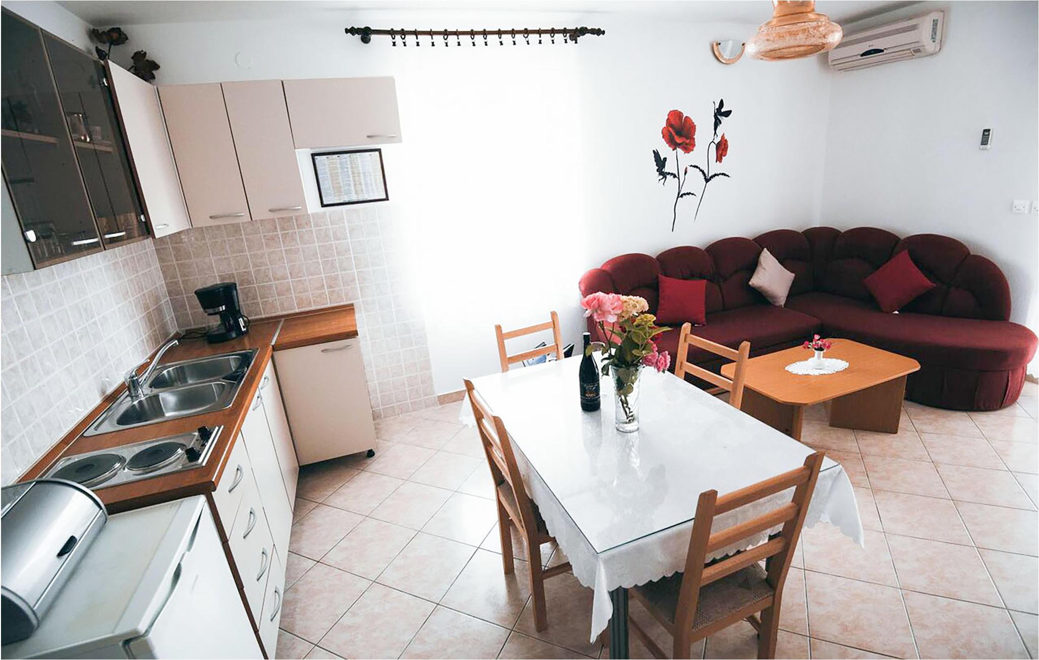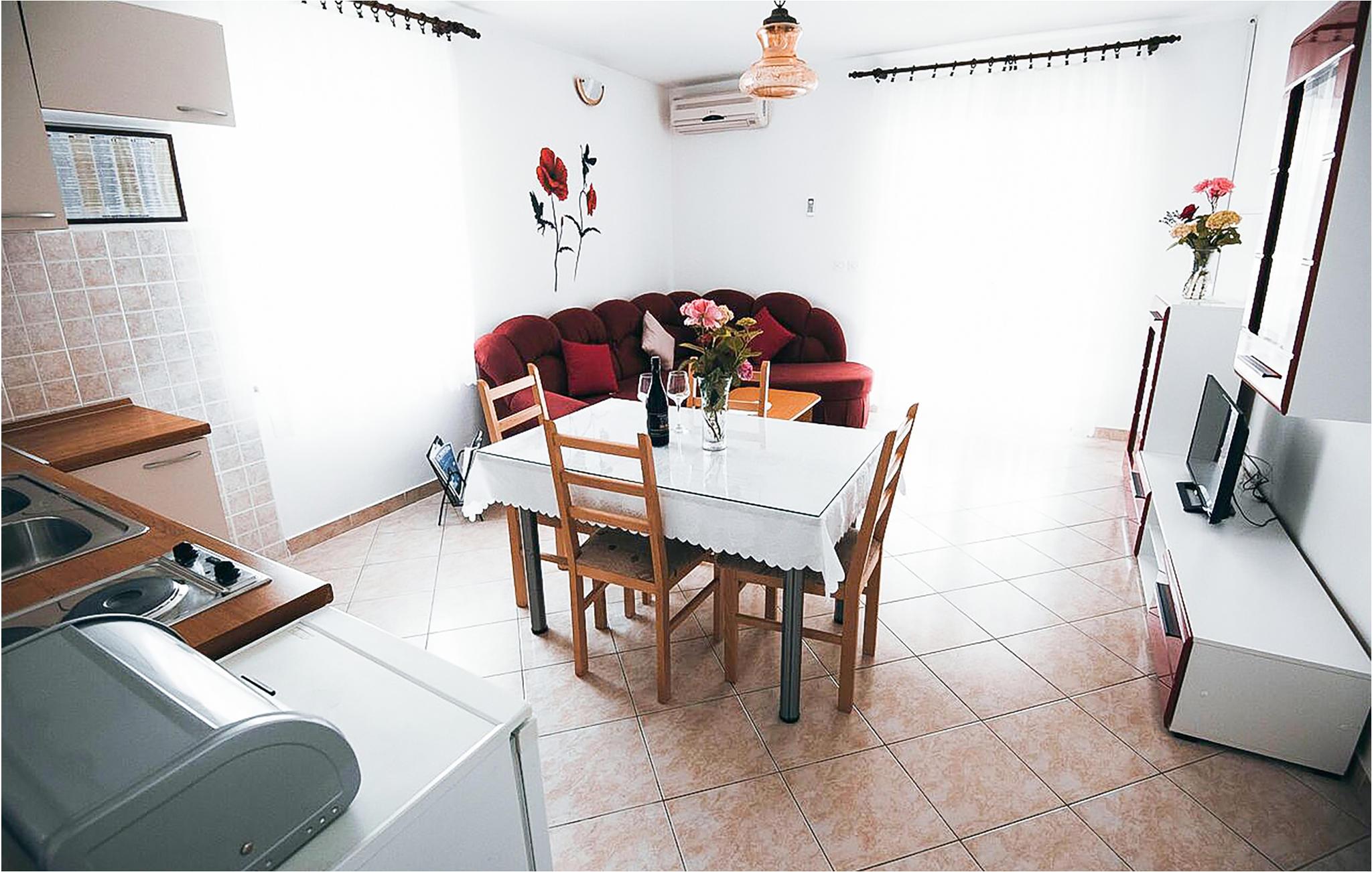 I en roligt beliggende del af Vodice ligger disse to rummelige ferielejligheder, der begge er velegnede til større familier. På ca. et kvarters gåtur kommer I til det interessante centrum med forskellige restauranter og en lille marina. Eller tag en længere tur på cyklerne, som I har til gratis rådighed (sammen med CDV271). Denne region tilbyder en vifte af gastronomiske tilbud, mange sand- og kiselstrande og masser af underholdningsmuligheder. Det kan anbefales at besøge nationalparkerne, der ligger i nærheden, f.eks. Kornati-øgruppen eller vandfaldene ved Krka.