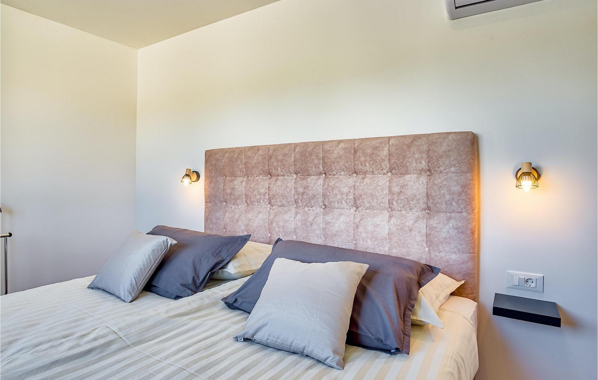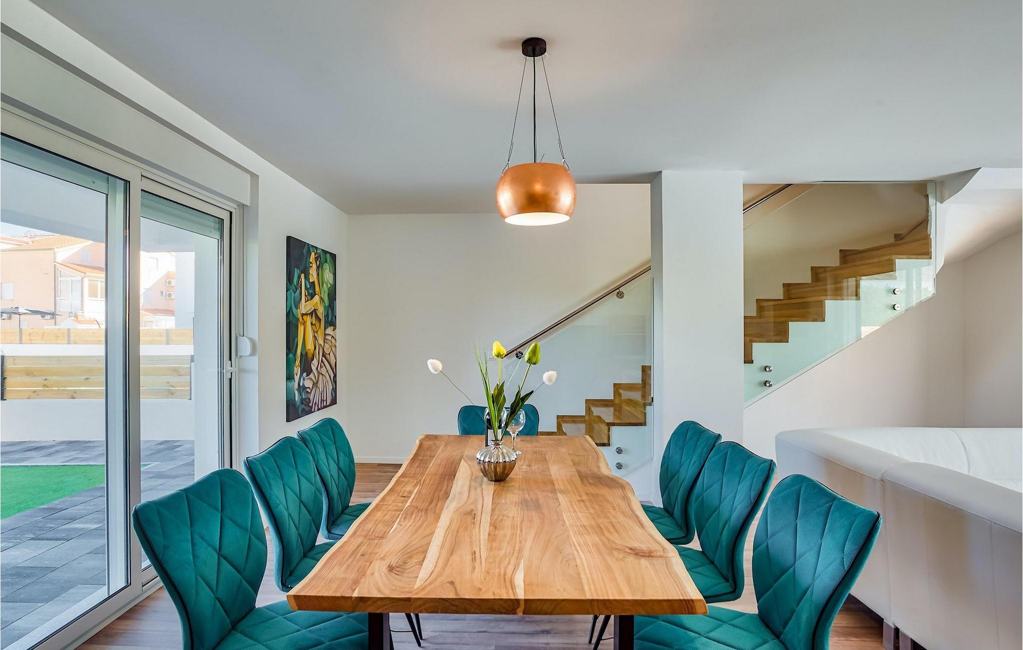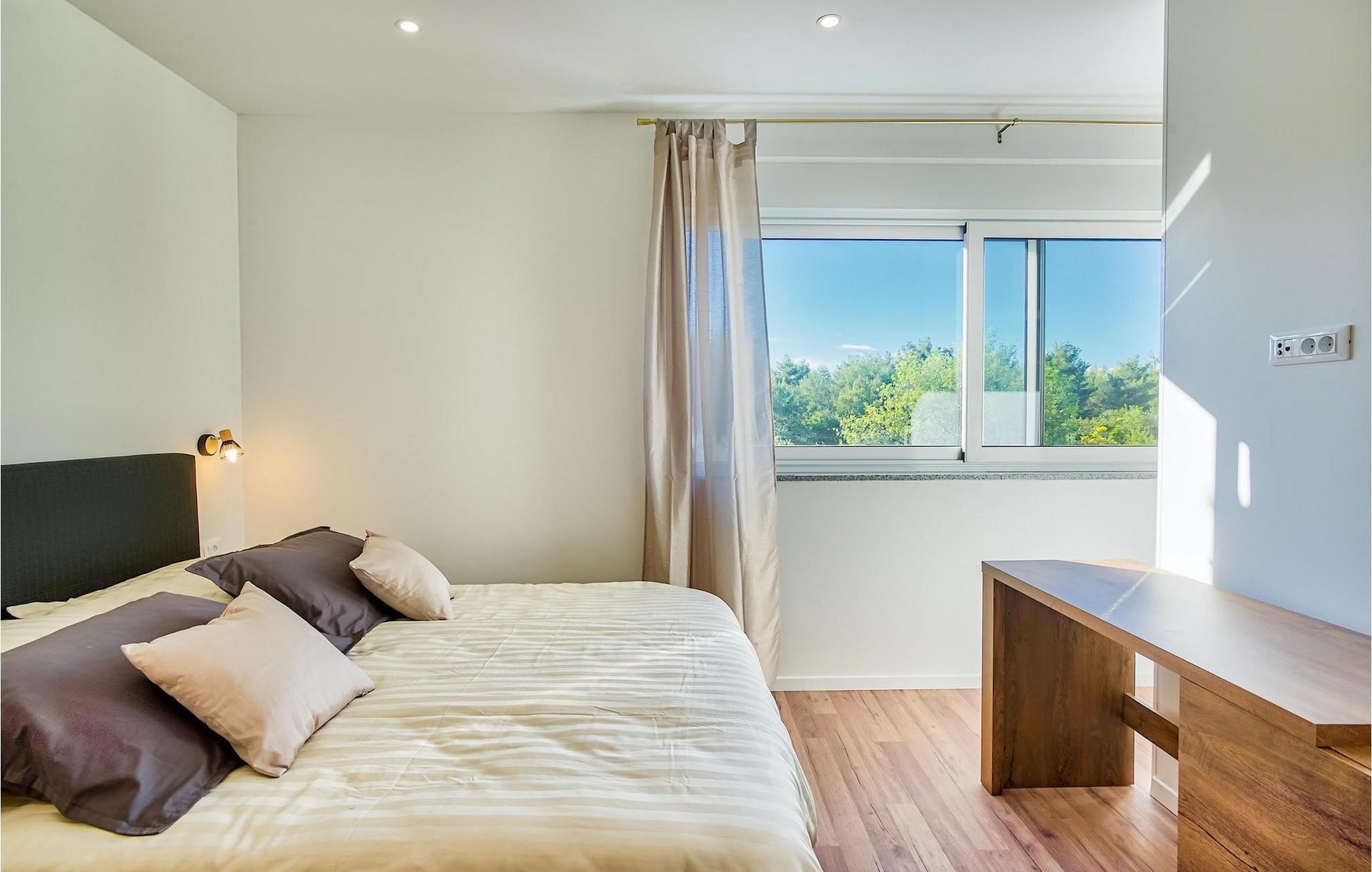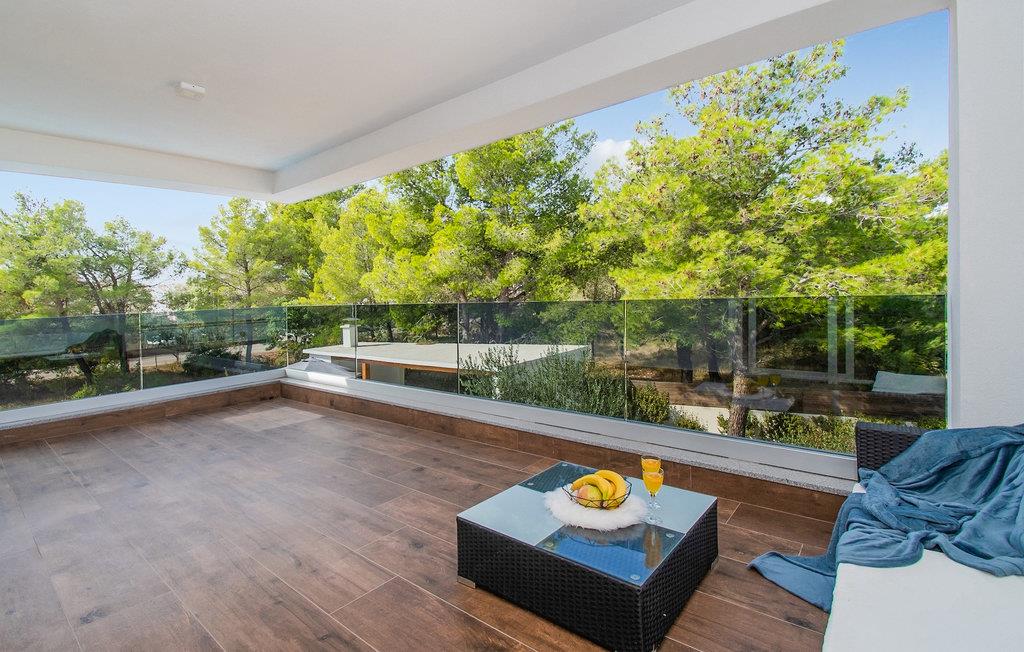 Denne elegante villa med 4 soveværelser og 4 badeværelser ligger kun 200 m fra den første strand i en mindre bygd, lige uden for byen Vodice. Det er designet og indrettet med en masse smag og vil tilbyde dig et behageligt ophold under din ferie. Villaen har en indbydende privat pool med liggestole, et behageligt opholdsområde og en rummelig balkon. Stueetagen har en åben plads, elegant opholdsstue med et fuldt udstyret køkken og spiseplads, som giver direkte adgang til den private pool og udendørsområdet. Et soveværelse i stueetagen med dobbeltseng har også direkte adgang til poolen, hvilket kan være meget praktisk for alle, der rejser med et kæledyr. Det ene badeværelse er også i stueetagen, mens de tre andre badeværelser alle er ensuite og er placeret på første sal sammen med de tre andre soveværelser med hver en dobbeltseng.