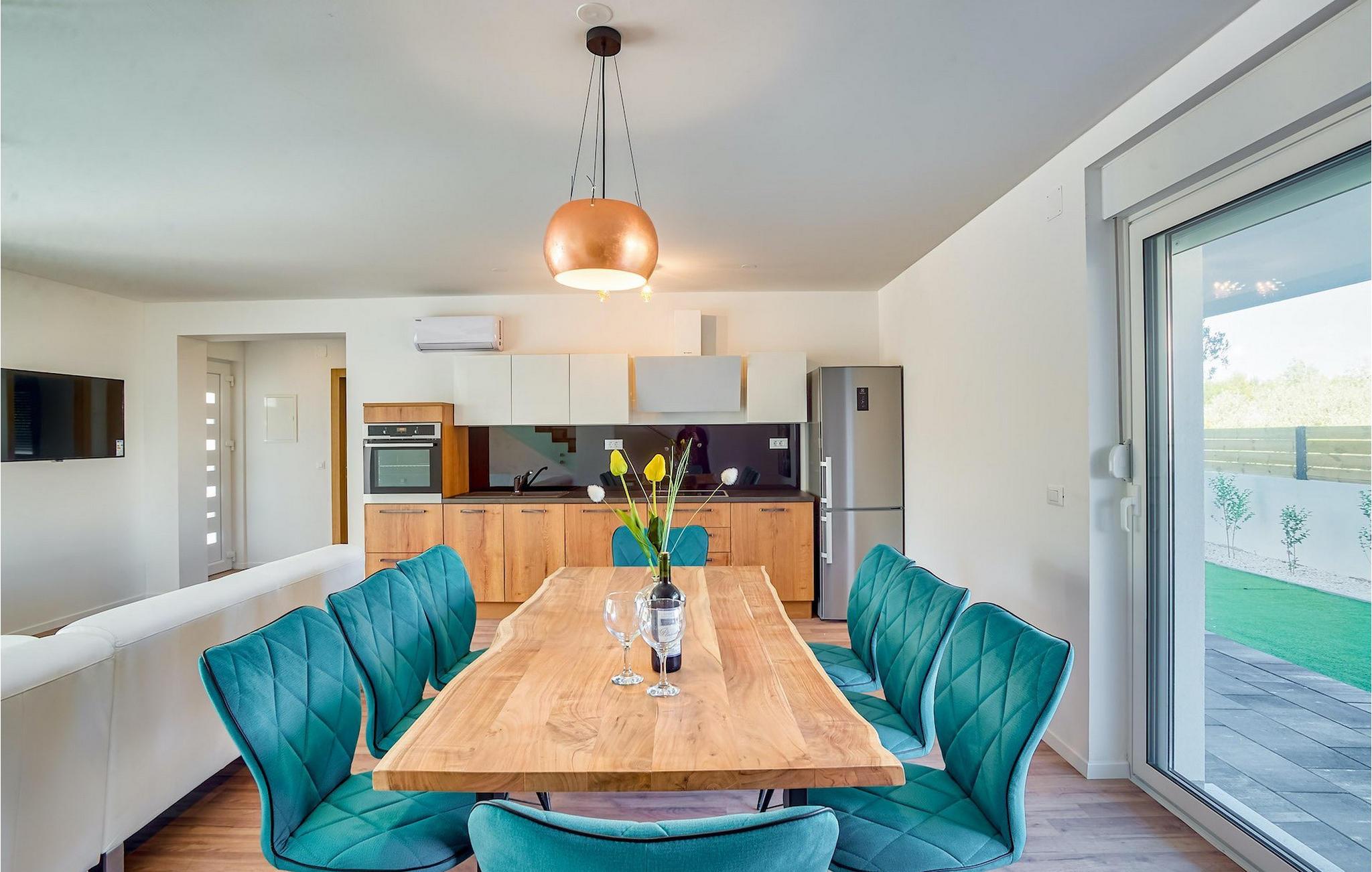 Dette er en dobbelthusejendom, hvor den anden halvdel er den mindre 3-værelses Villa Vlahov IV.Villa Vlahov III ligger i Srima, et lille sted tæt på Vodice. Byen Vodice ligger i Sibenik-Knin County, i "centrum" af den kroatiske kyst. Det er et populært turistområde, berømt som en pulserende kystby med mange smukke strande og masser af begivenheder, der foregår i sommermånederne, såsom koncerter, festivaler og folketraditionsbegivenheder. Der er også kulturelle seværdigheder at udforske - kirker fra det 16. og 18. århundrede, det befæstede tårn "Coric Tower" eller mindecentret dedikeret til Faust Vrancic, den berømte opfinder af faldskærmen og vigtig kroatisk historisk personlighed. For dem, der søger efter en aktiv ferie, byder dette område på muligheder for at prøve forskellige vandsportsgrene, dykning, kajaksejlads og windsurfing samt mange cykelruter og vandre- og vandrestier. Placeringen af Vodice er også ideel til at opdage omgivelserne. Den historiske by Sibenik ligger kun en kort køretur derfra. Kun omkring 60 kilometer deler Vodice fra Zadar mod nord og Trogir mod syd. En fordel ved Vodice er også nærheden til nationalparken Krka, nationalparken Kornati og naturparken Vrana-søen (Vransko Jezero). Sørg også for at besøge mindst en af de nærliggende øer - Murter, Prvic eller Zlarin.