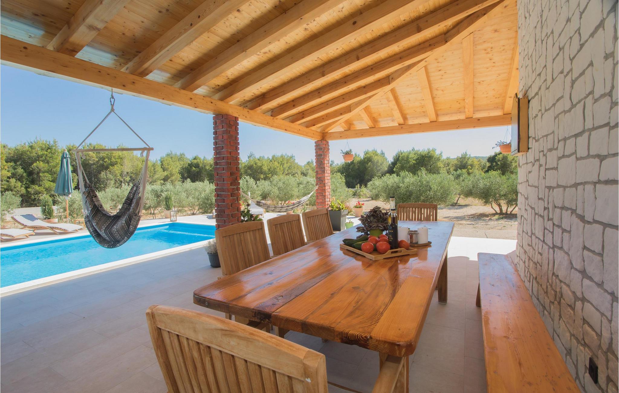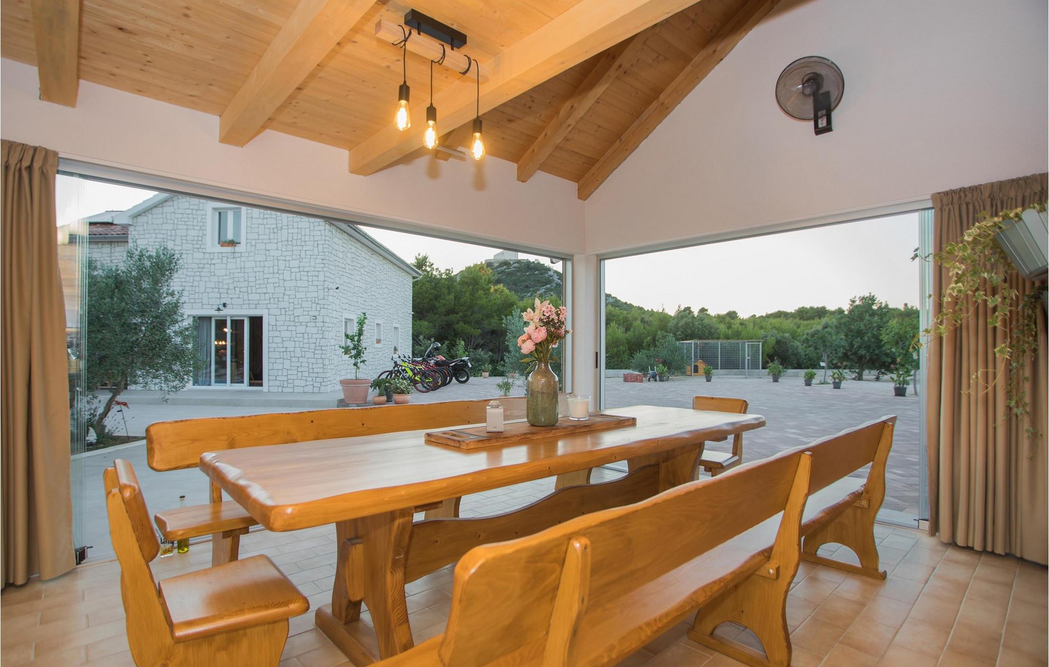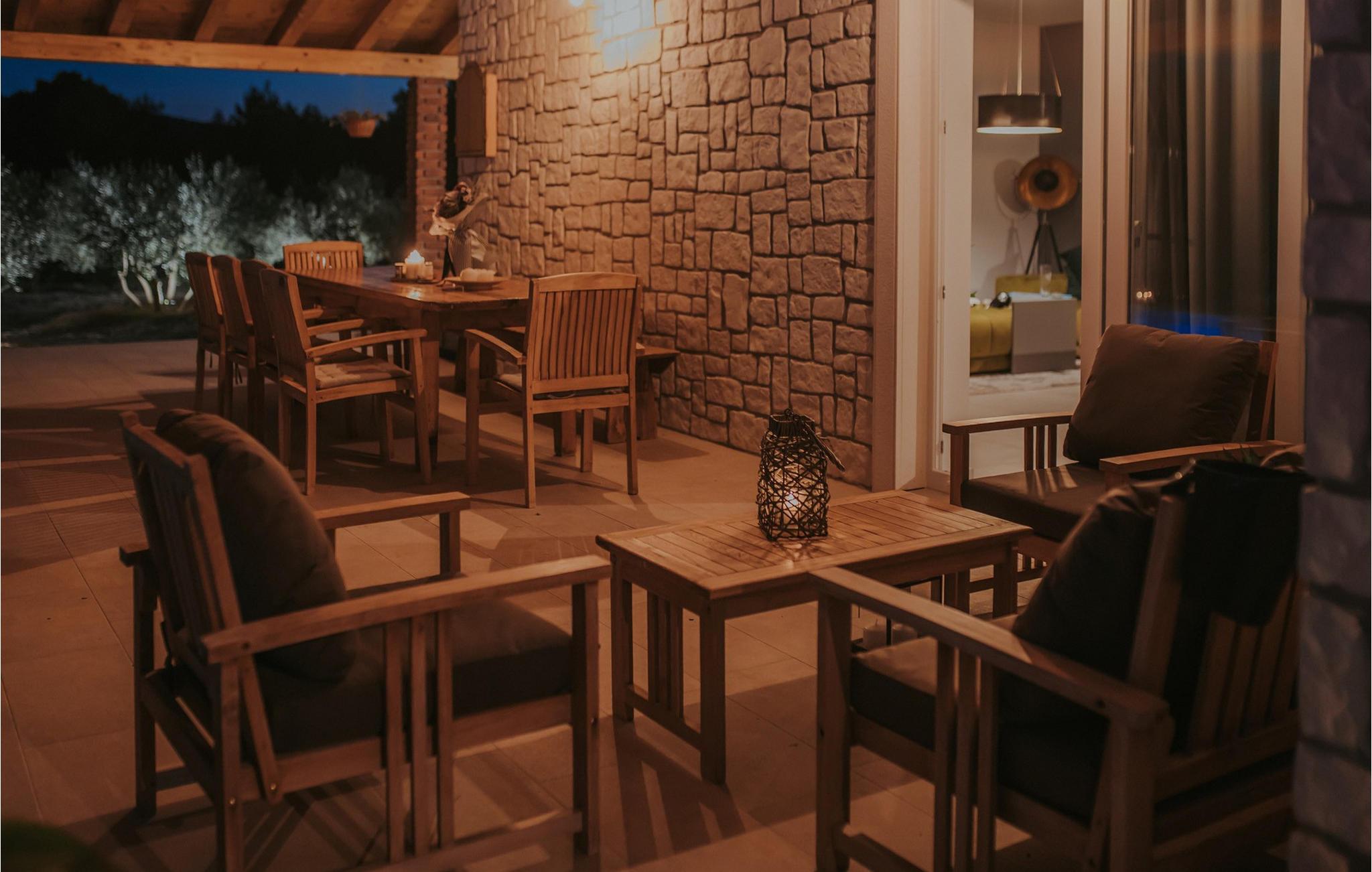 Omgivet af frodig skov byder dette hus jer velkommen med en stilfuld og moderne atmosfære. Lyse værelser, et smukt samspil af træ- og stenelementer og et veludstyret køkken sikrer, at I hurtigt falder i ferietilstand. Læn jer tilbage i den komfortable sofa, mens en ild knitrer i brændeovnen. Spil en runde dart eller se en spændende film, før I tilbringer hyggelige aftener med en flaske vin.