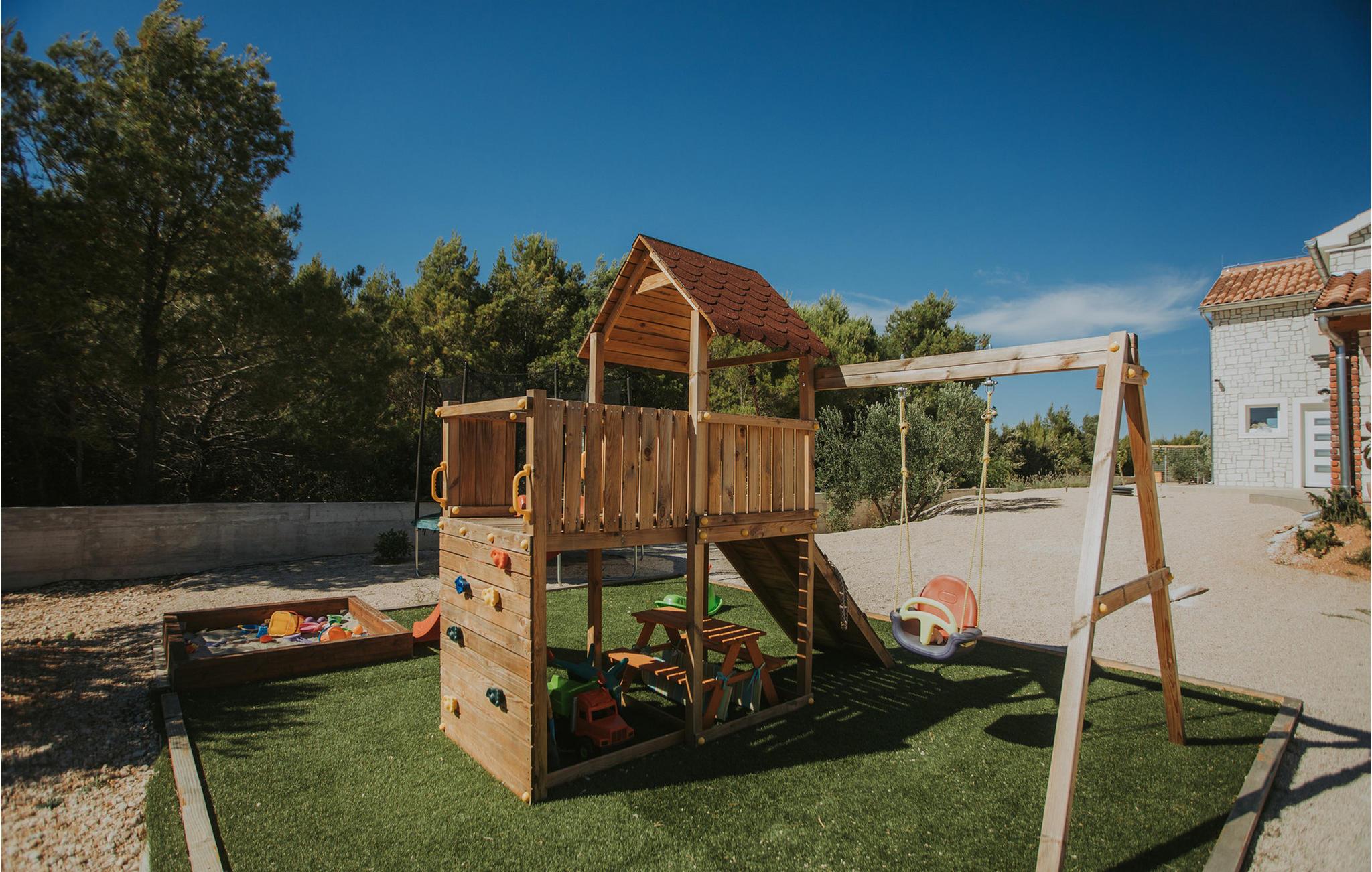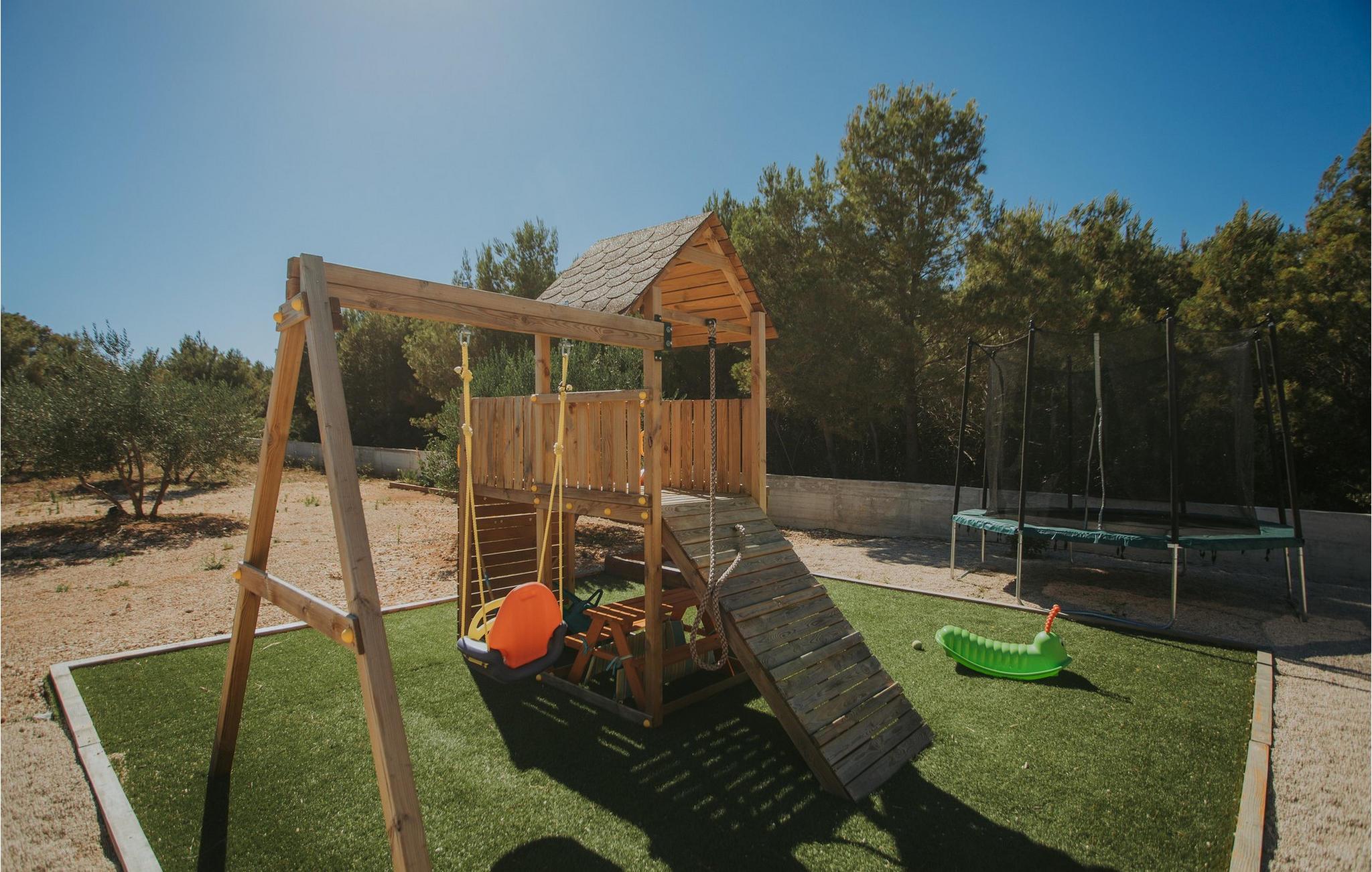 Begynd dagene udendørs med en afslappet svømmetur i poolen. Nyd den smukke og afslappede atmosfære. Slap af med en kølig drink på en liggestol, mens børnene morer sig i legehuset eller på trampolinen. Hvis I føler jer aktiv, kan I snuppe et spil tennis.