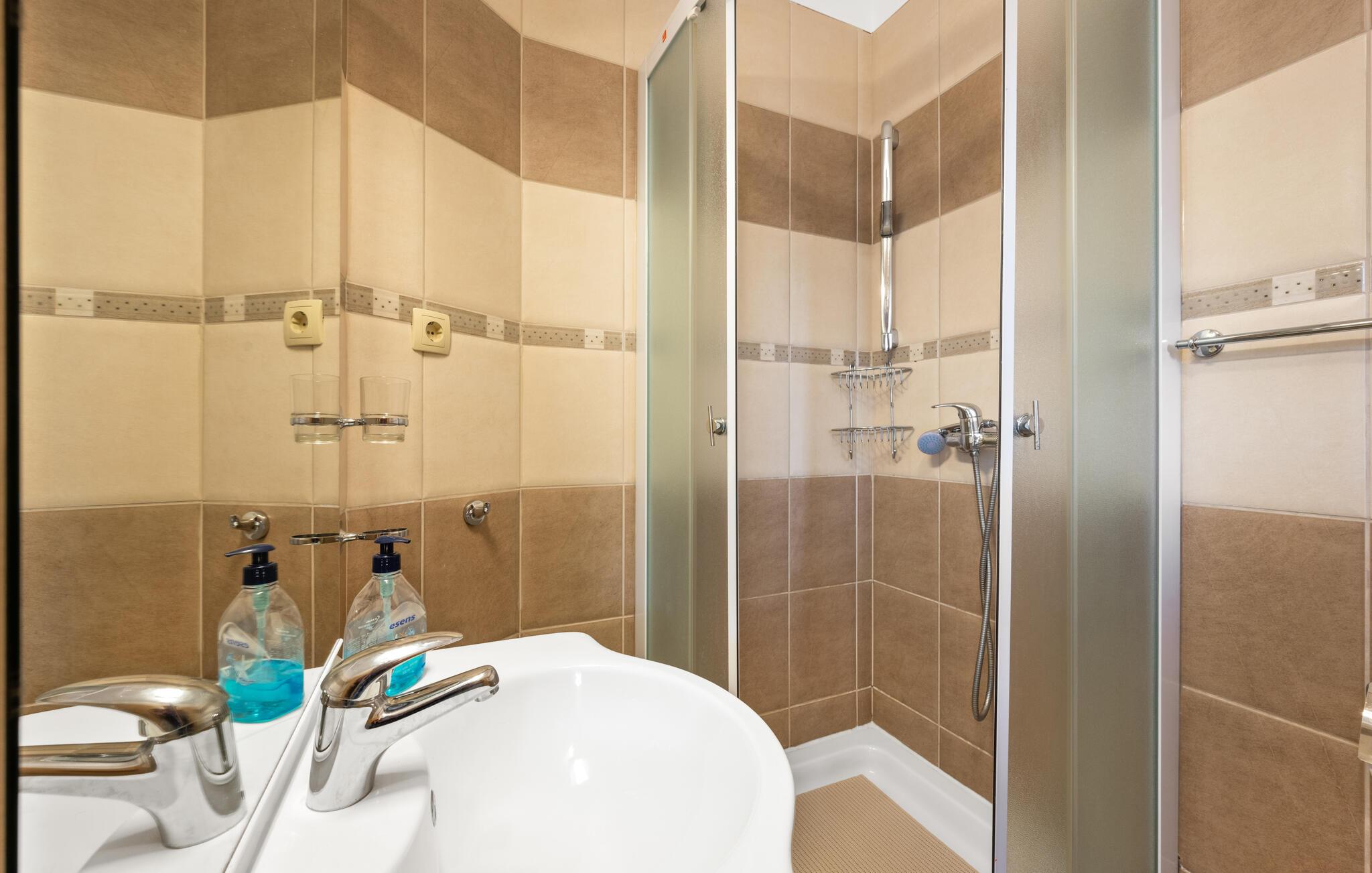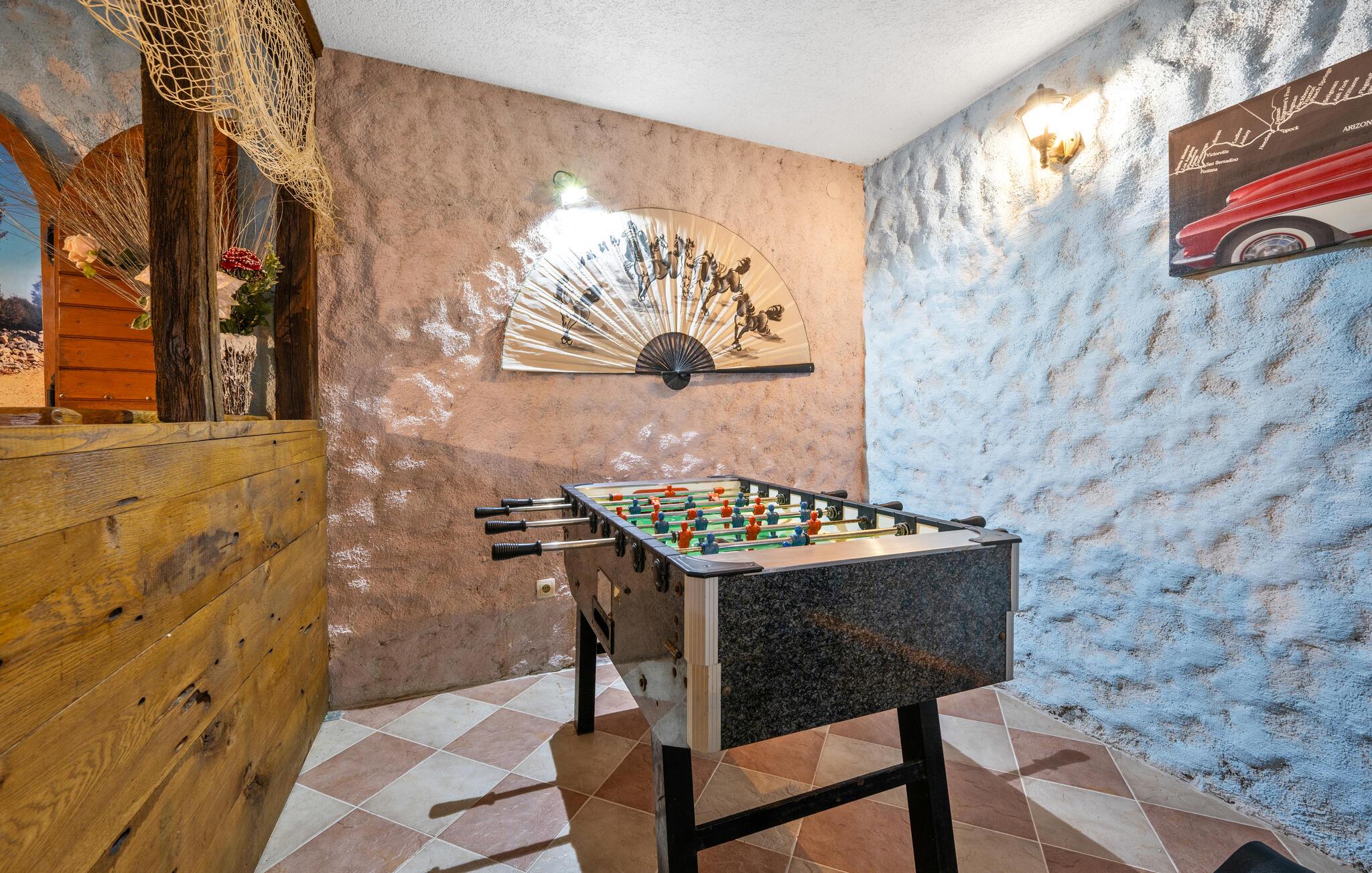 Velkommen til denne rummelige og komfortable lejlighed, der ligger virkelig dejligt og kun få minutters gang fra havet. Udgangspunktet gør det til den ideelle base for en ferie med det helt rette mix af udflugter og strandture, og komforten er simpelthen helt i top. Hvis I gerne vil holde vaskebrættet ved lige, kan I holde formen ved lige med fitness-udstyret, og måske I skal have gang i en dart- eller bordtennisturnering i aktivitetsrummet?