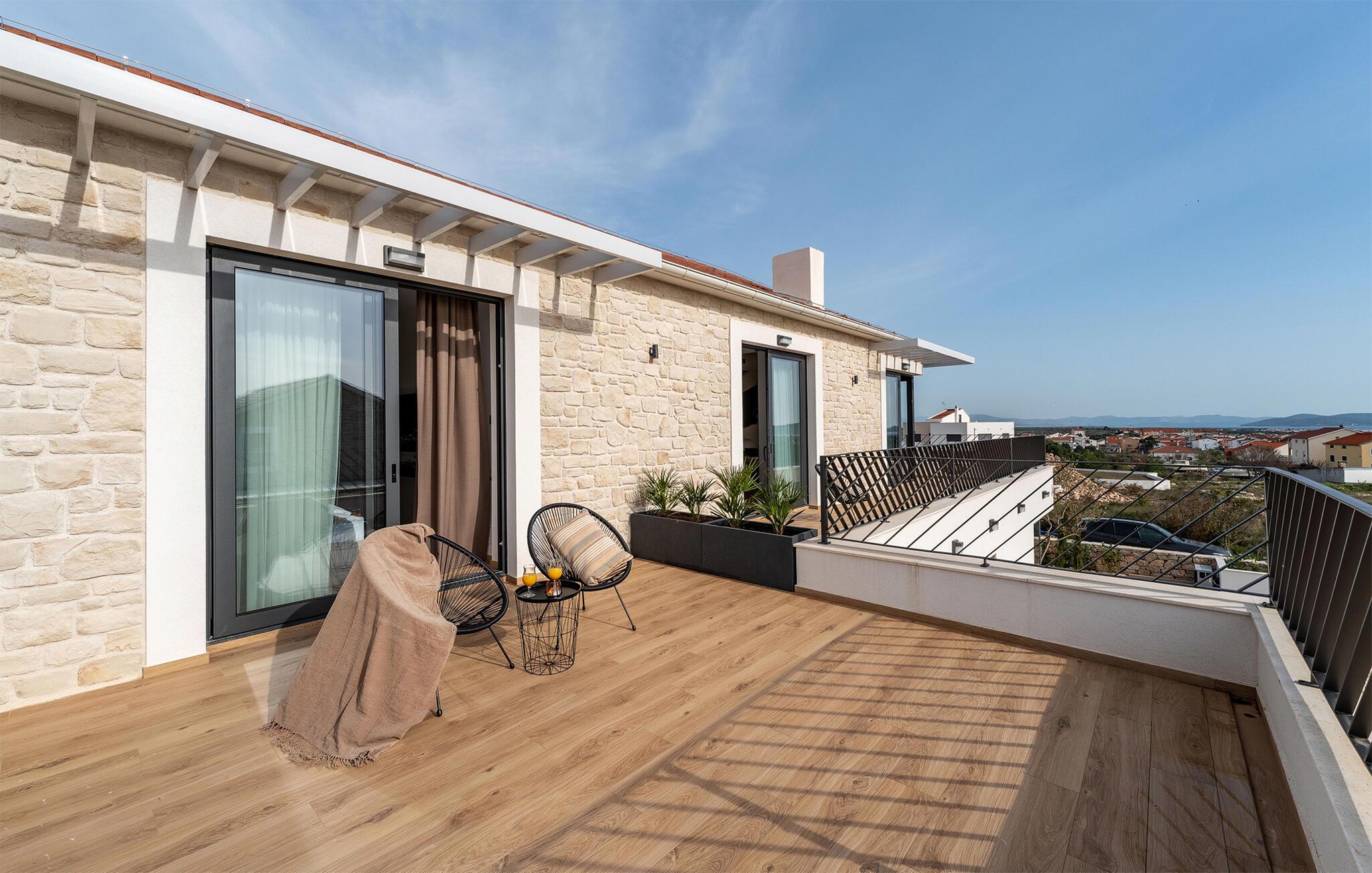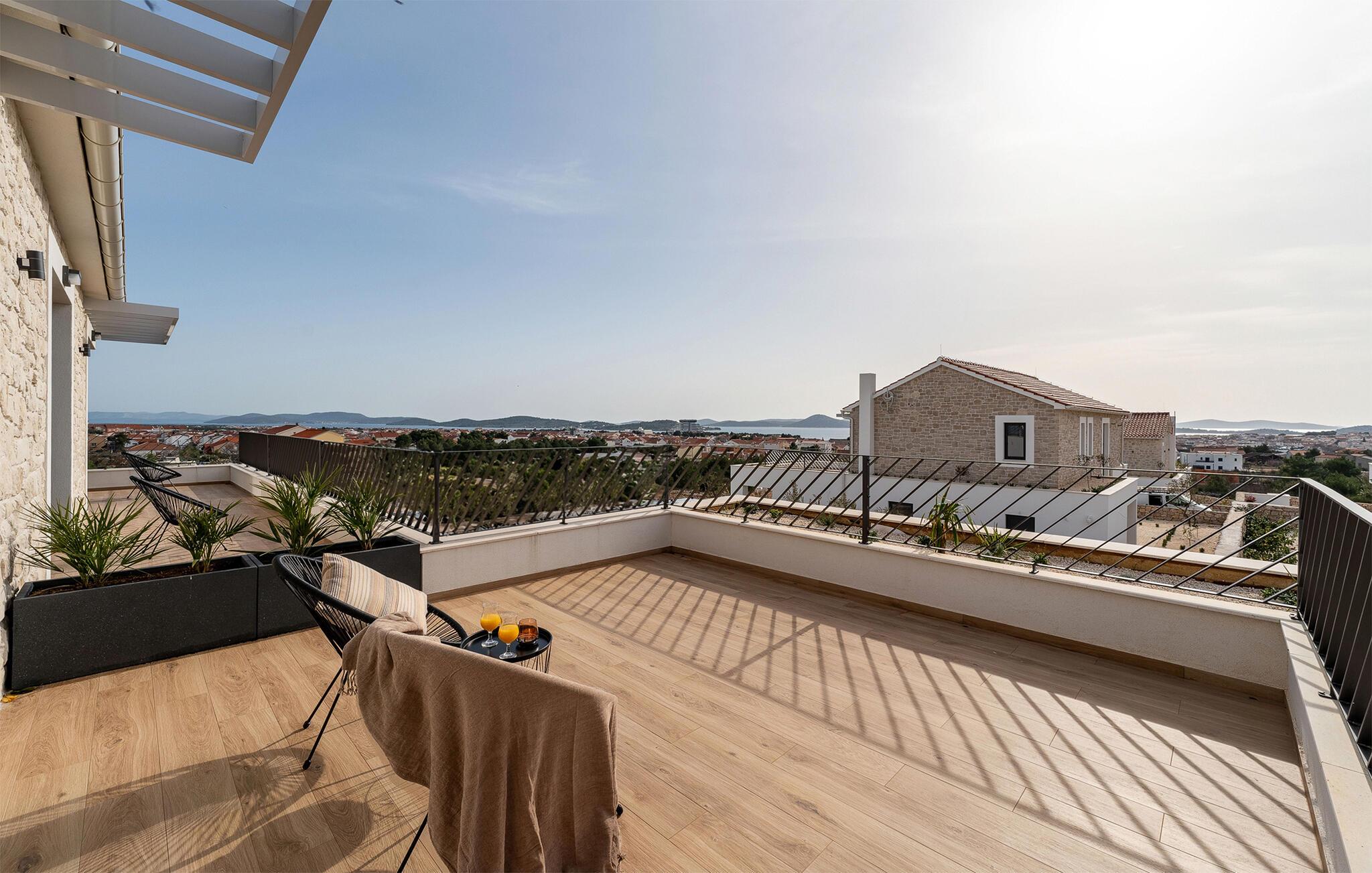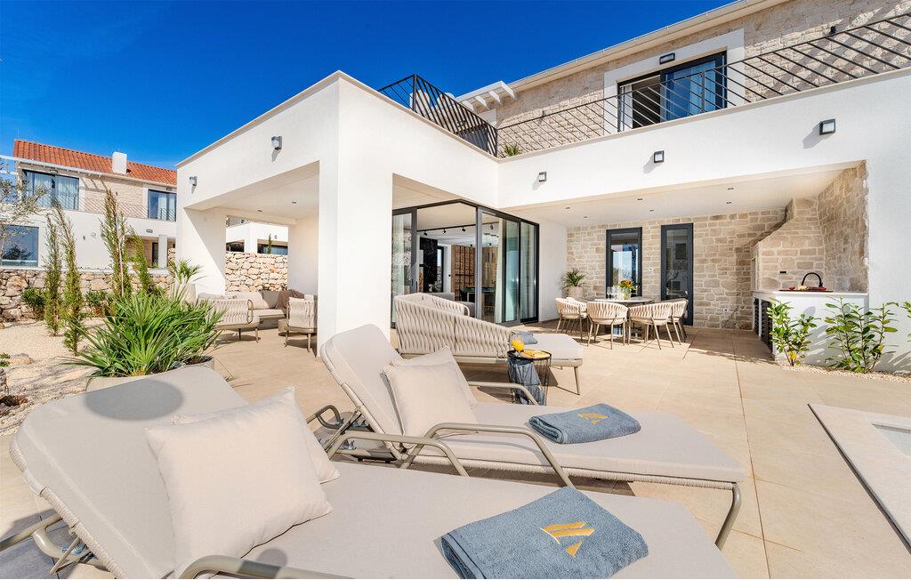 Der er lagt op til en ferie med alt, hvad hjerterne måtte begære, i denne rummelige luksusvilla ved Vodice. Med sine endog rigtig mange kvadratmeter og yderst komfortable er der lagt op til en ferie, hvor ingen kommer til at mangle noget; en ferie, hvor privatlivet kan nydes i soveværelserne med badeværelse en-suite, og hvor I kan nyde mange sociale stunder i de flot indrettede opholdsrum. Interiøret fremtræder virkelig lækkert med sans for detaljen, rene linjer og møbler af højeste kvalitet, så jeres ferie bliver til en både sjov og afslappende leg på tværs af generationerne. Sved igennem i saunaen, sæt jer godt til rette i spabadet eller udfordr hinanden ved bordtennisbordet, inden I sætter jer godt til rette med et glas vin i sofaen.
