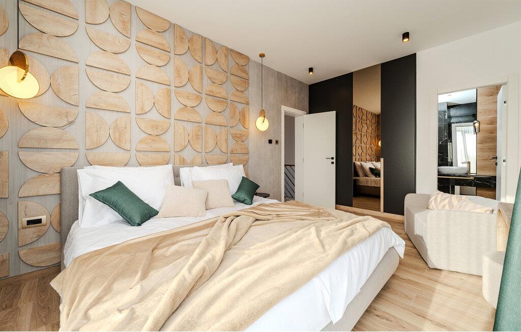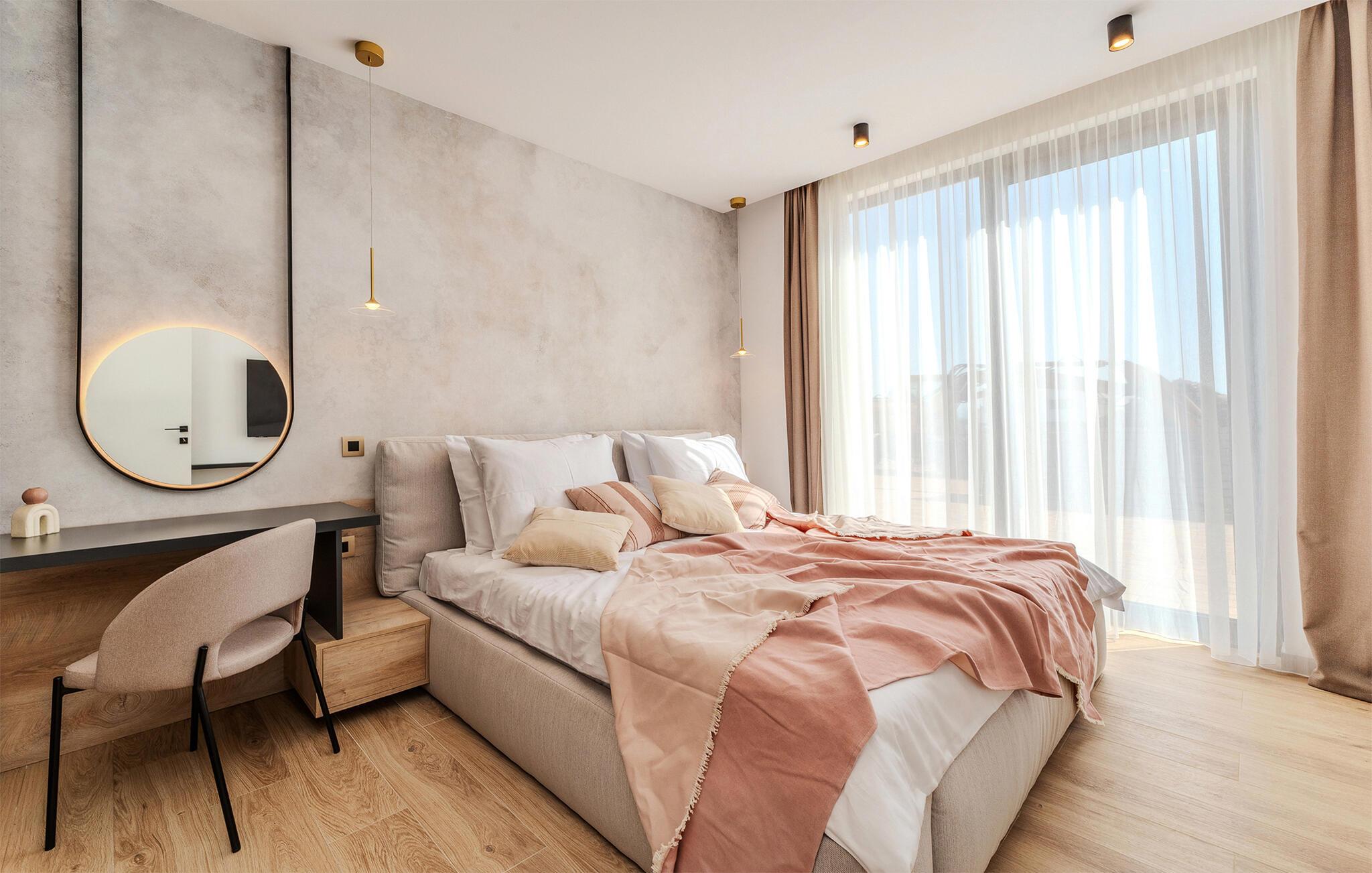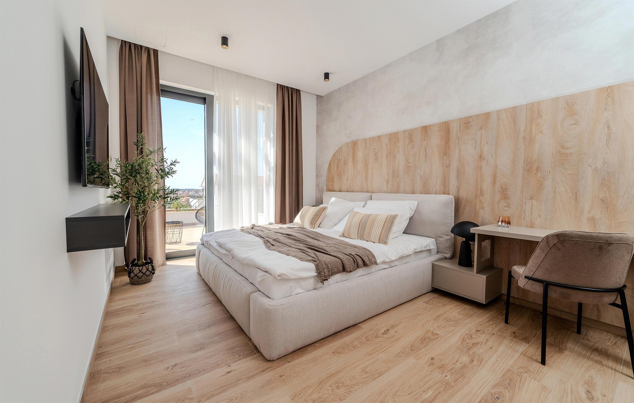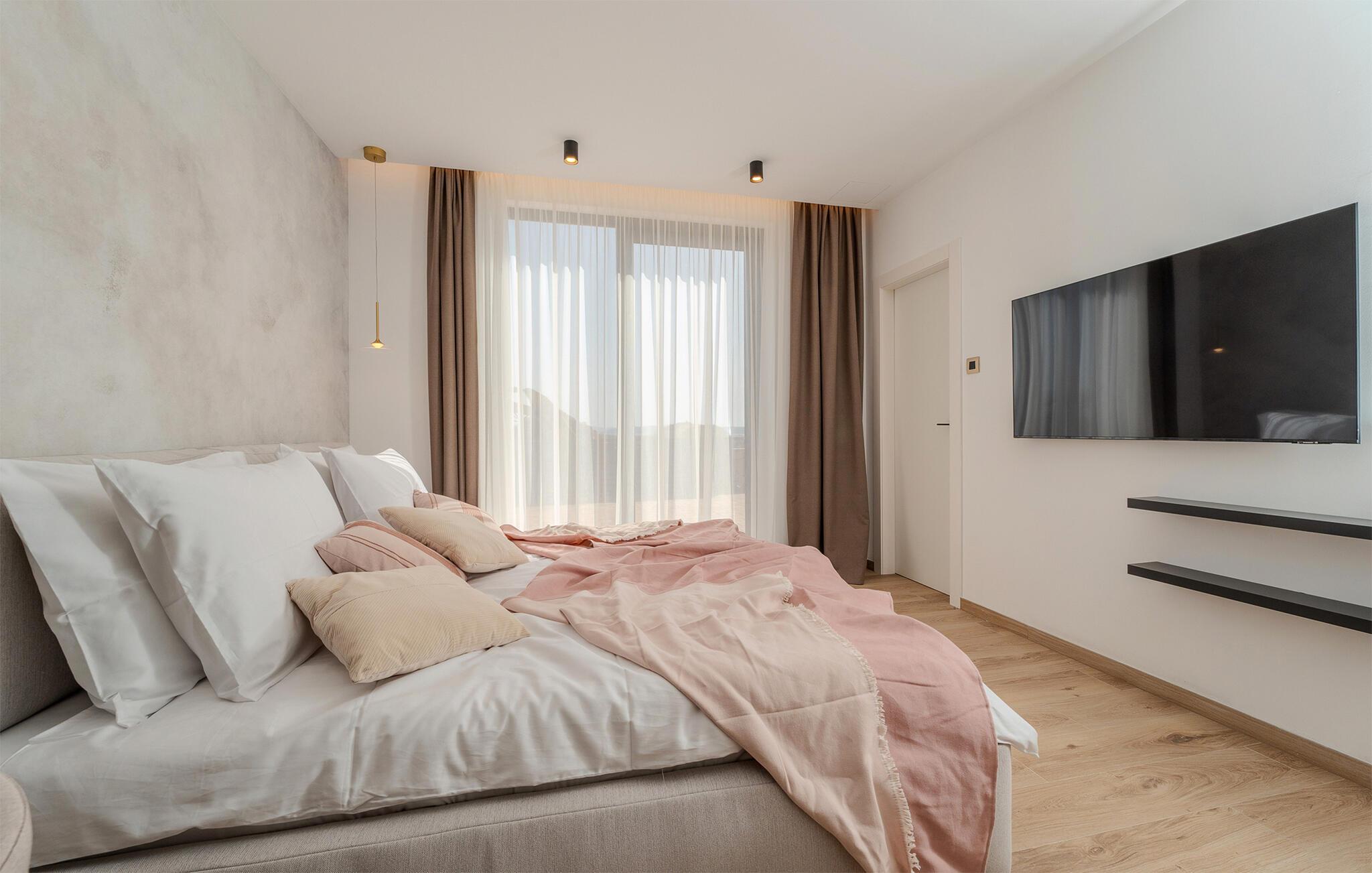 Der er lagt op til en ferie med alt, hvad hjerterne måtte begære, i denne rummelige luksusvilla ved Vodice. Med sine endog rigtig mange kvadratmeter og yderst komfortable er der lagt op til en ferie, hvor ingen kommer til at mangle noget; en ferie, hvor privatlivet kan nydes i soveværelserne med badeværelse en-suite, og hvor I kan nyde mange sociale stunder i de flot indrettede opholdsrum. Interiøret fremtræder virkelig lækkert med sans for detaljen, rene linjer og møbler af højeste kvalitet, så jeres ferie bliver til en både sjov og afslappende leg på tværs af generationerne. Sved igennem i saunaen, sæt jer godt til rette i spabadet eller udfordr hinanden ved bordtennisbordet, inden I sætter jer godt til rette med et glas vin i sofaen.